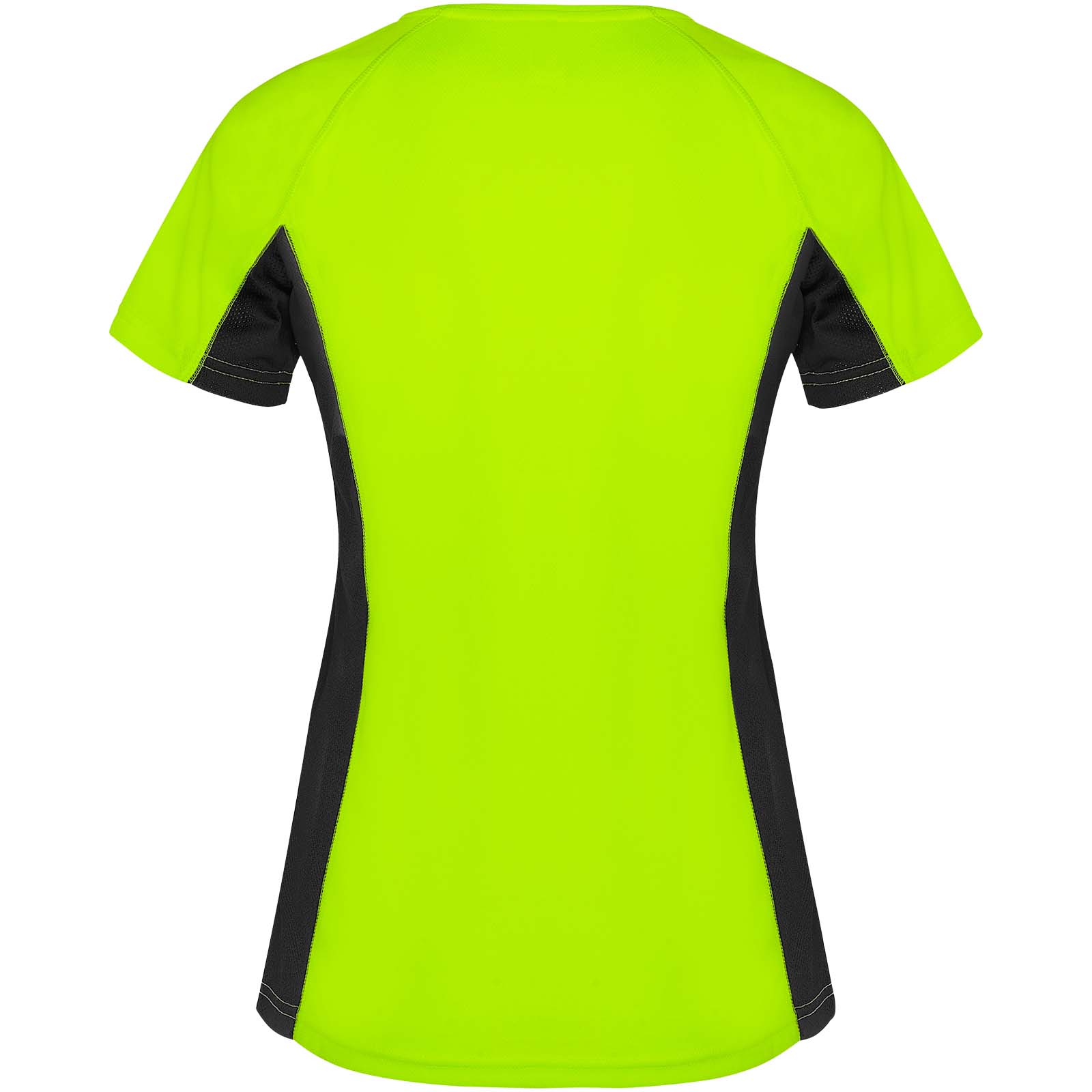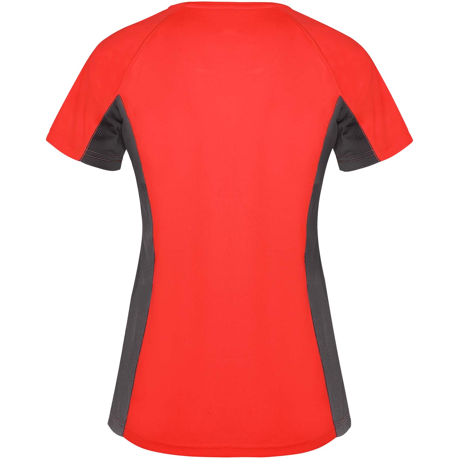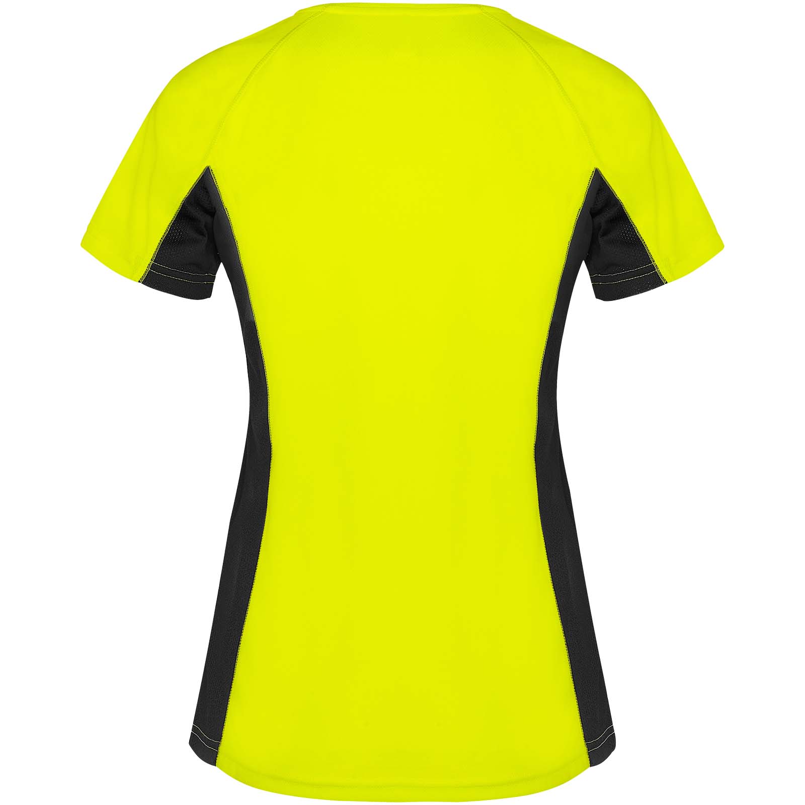 Techniczny i oddychający materiał. Połączenie dwóch materiałów poliestrowych: Główny materiał o splocie Birdseye, panele boczne i wewnętrzny rękaw z mikroperforowanego materiału. Okrągły dekolt z wewnętrznymi wzmocnionymi krytymi szwami. Usuwalna etykieta.