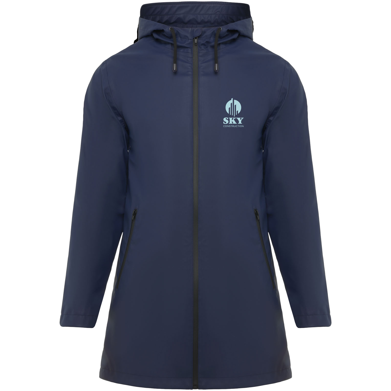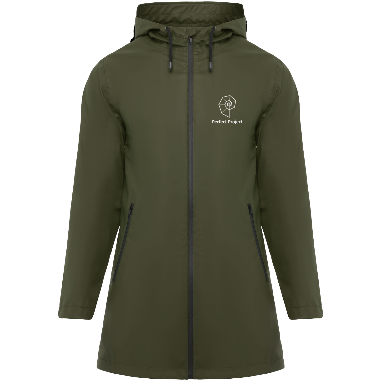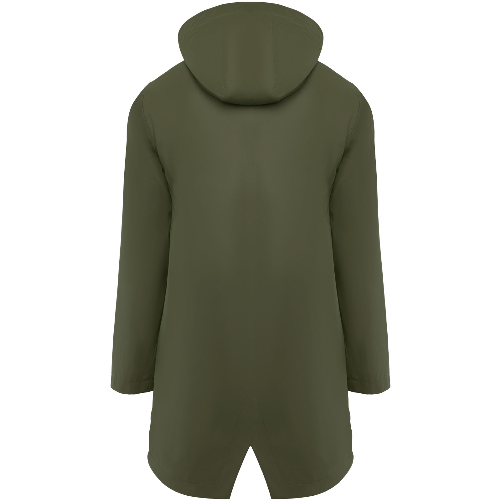 Wodoodporna kurtka przeciwdeszczowa dla kobiet. Kaptur z daszkiem. Zgrzewane zamki i szwy. Kontrastowe detale w kolorze czarnym. Dwie boczne kieszenie zapinane na zamek. Rozcięcie z tyłu. Usuwalna metka. Wodoodporna.