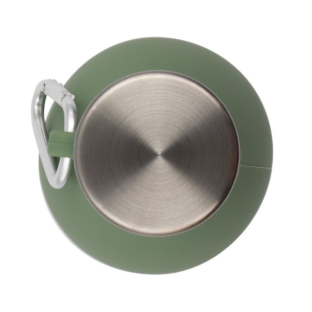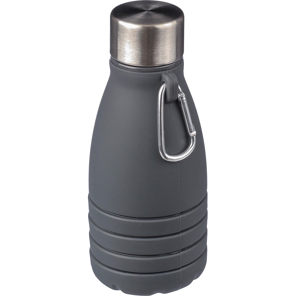 Składana butelka sportowa 550 ml z karabińczykiem umożliwiającym przypinanie, produkt wykonany z silikonu, stali nierdzewnej, PP i aluminium