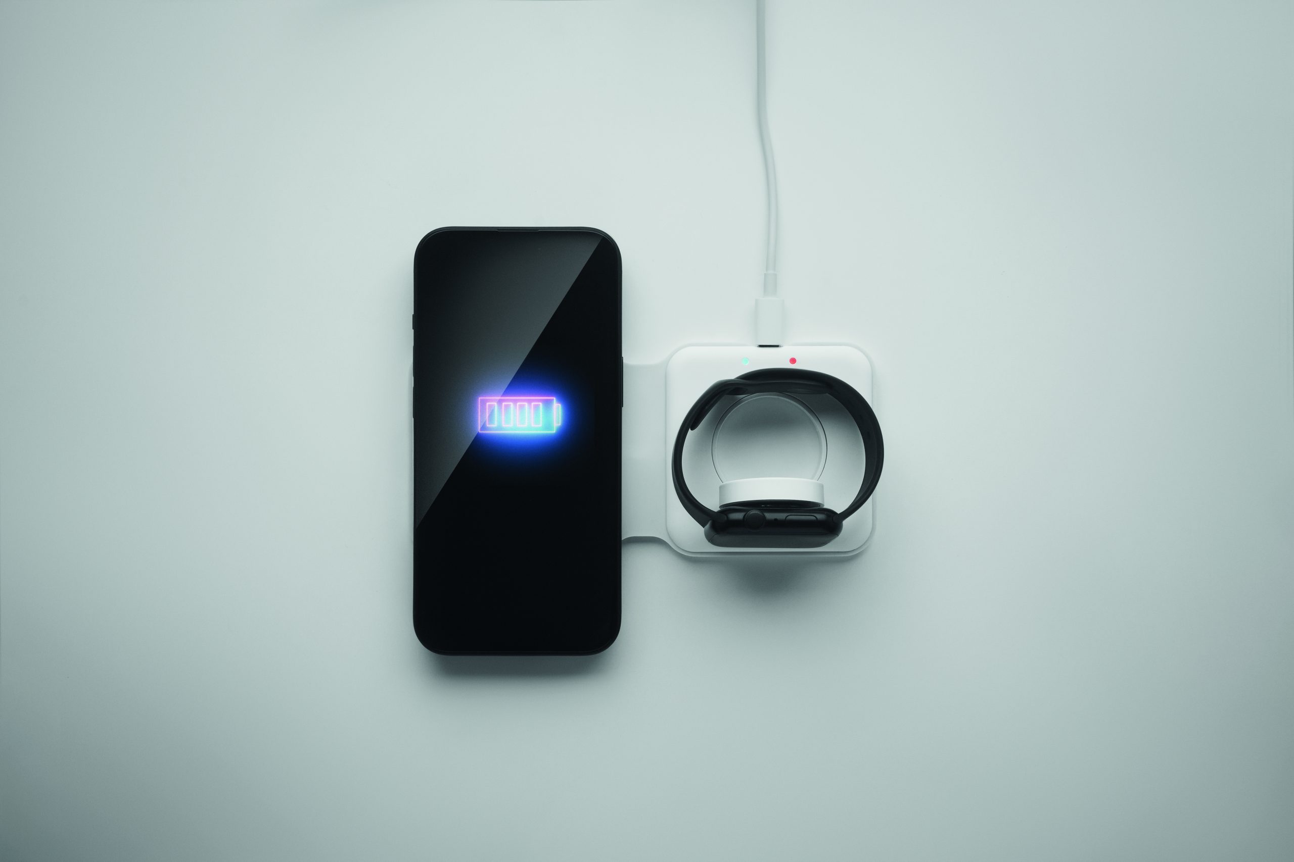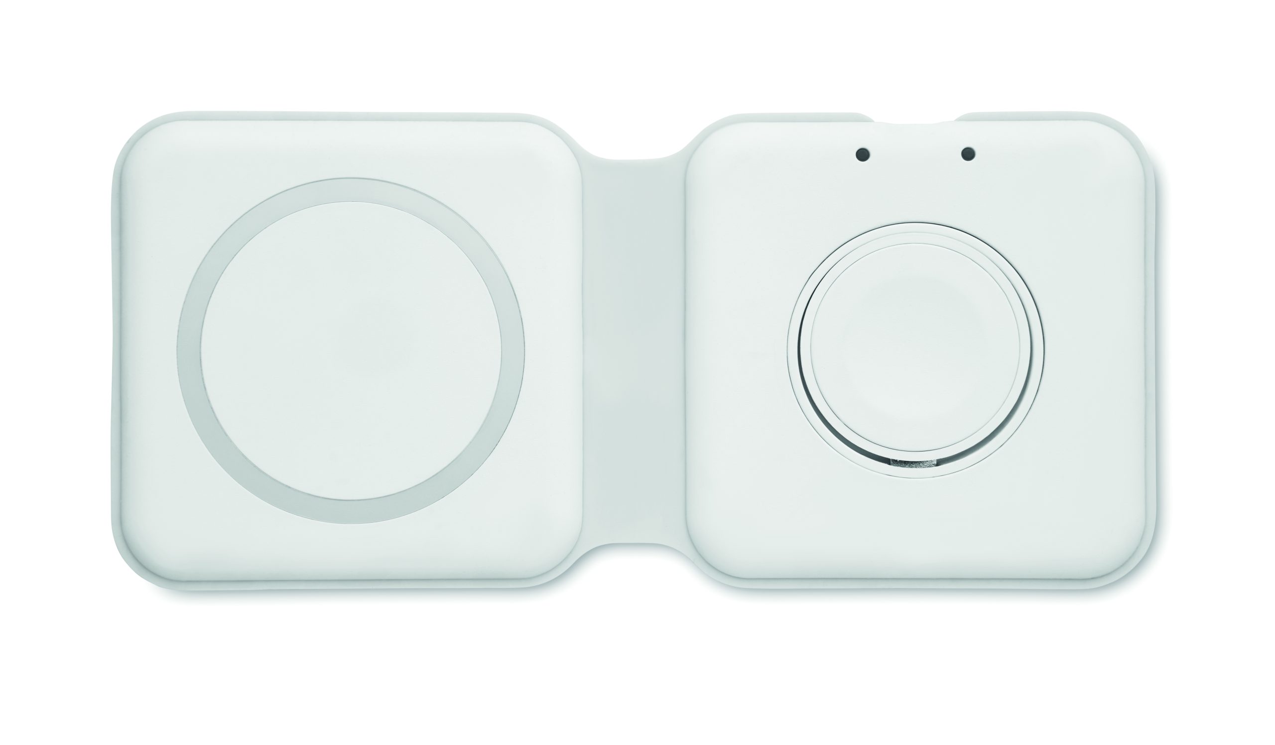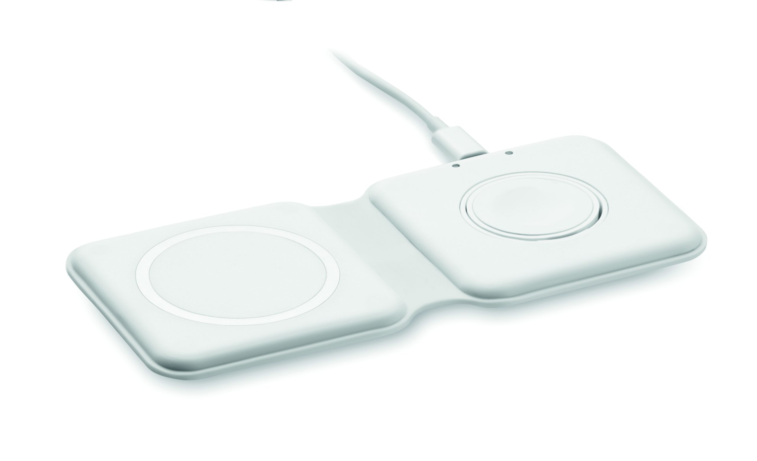 Składana stacja ładująca 2 w 1 z ABS. Zawiera bezprzewodową ładowarkę 15W i ładowarkę do smartwatcha (tylko Apple®).