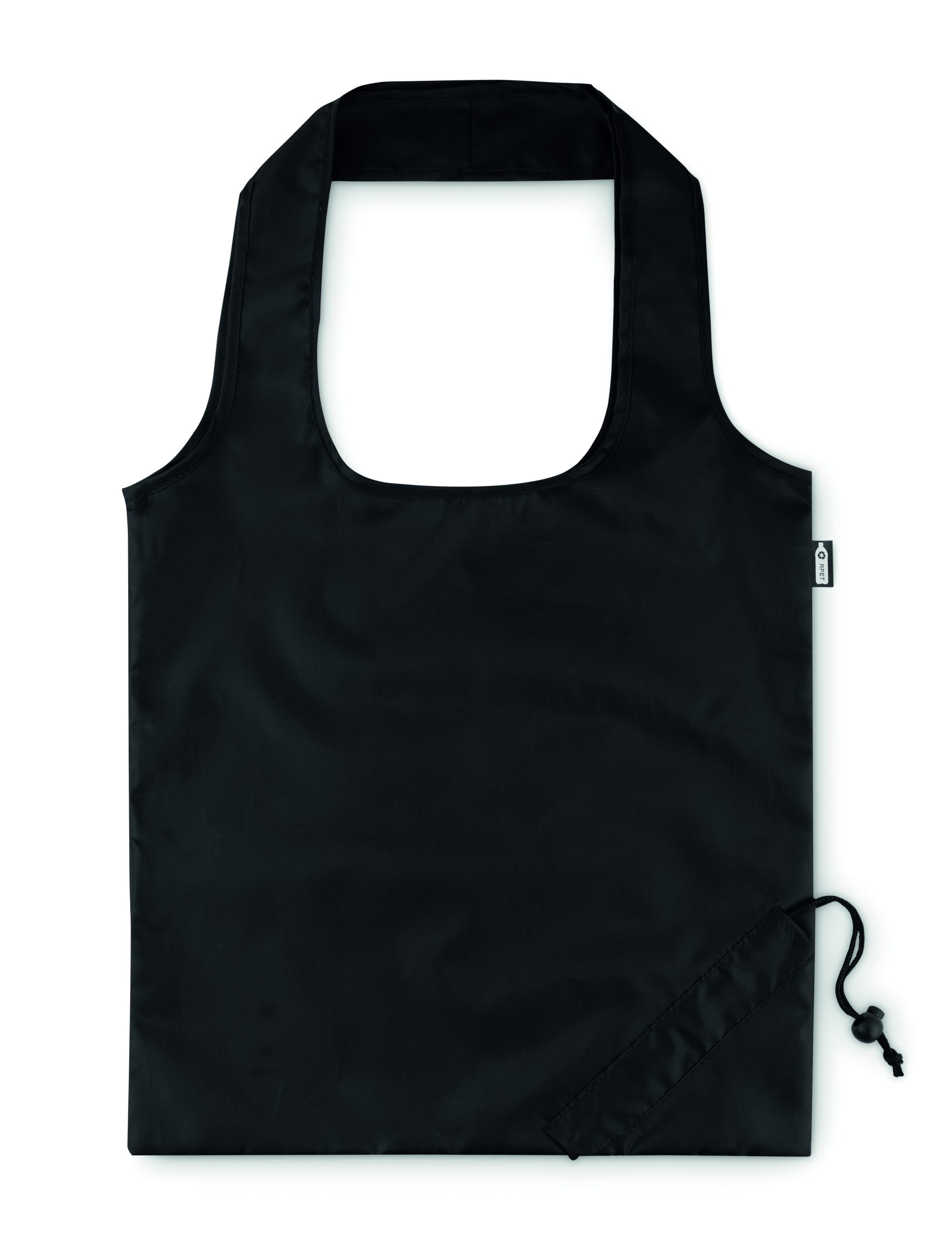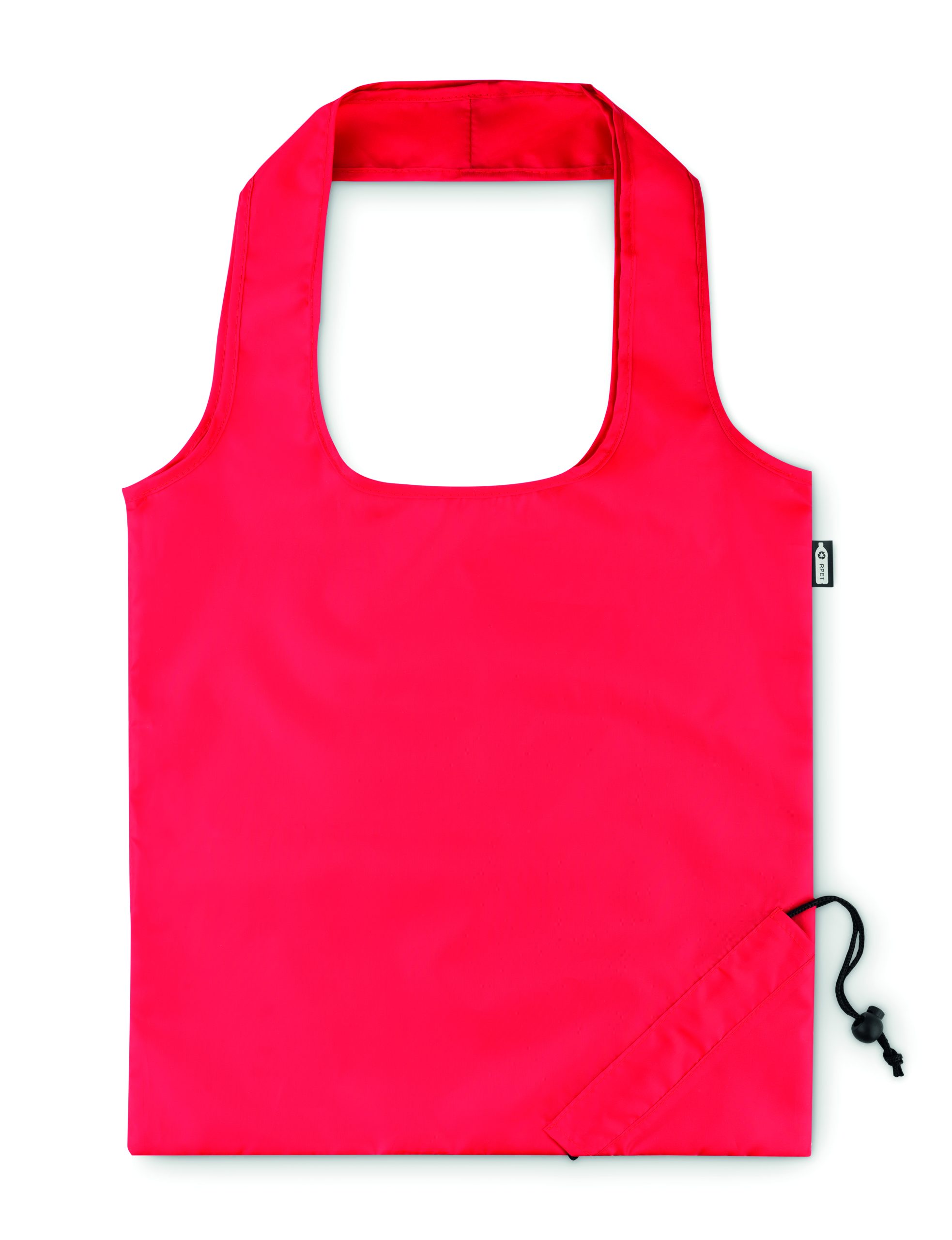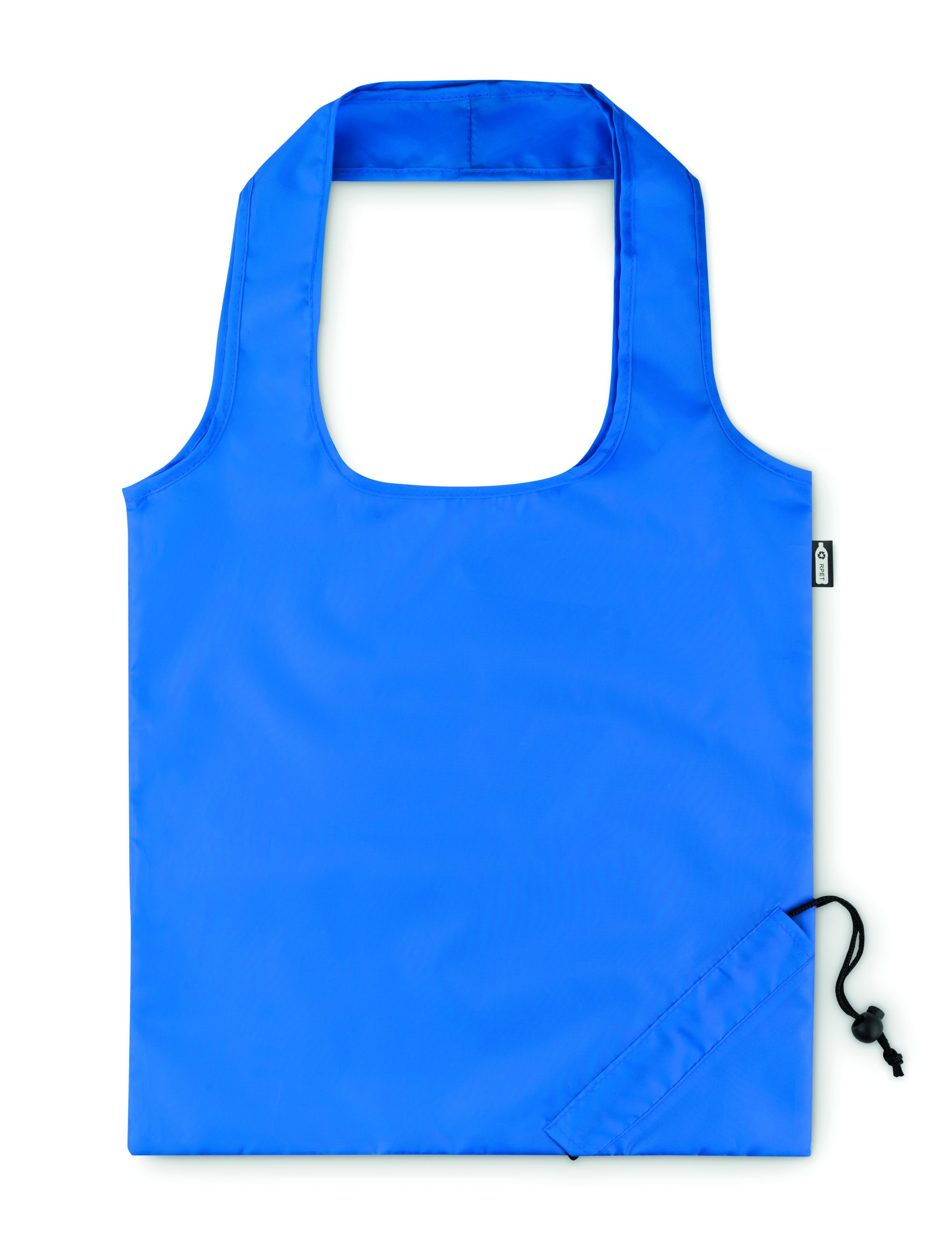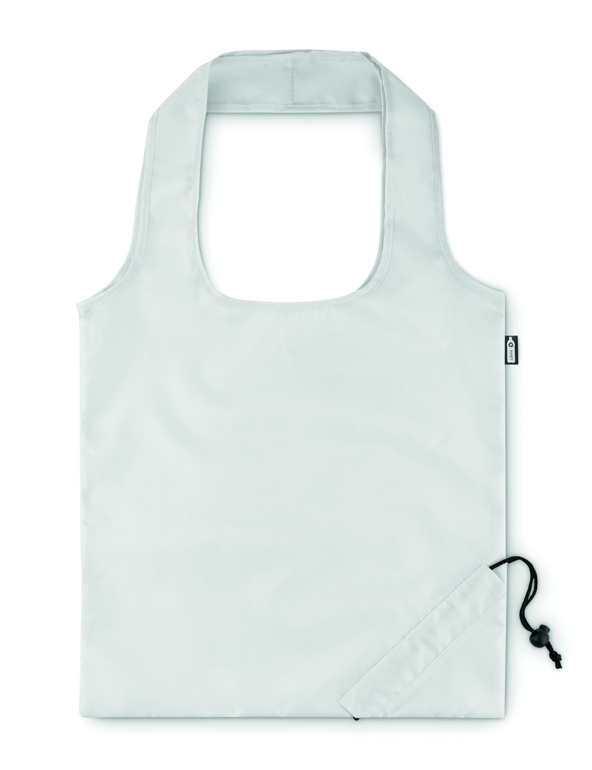 Składana torba na zakupy w RPET 190T, możliwość złożenia i schowania do etui z zamknięciem na sznurek. Znakowanie sublimacją jest możliwe tylko na białych produktach.