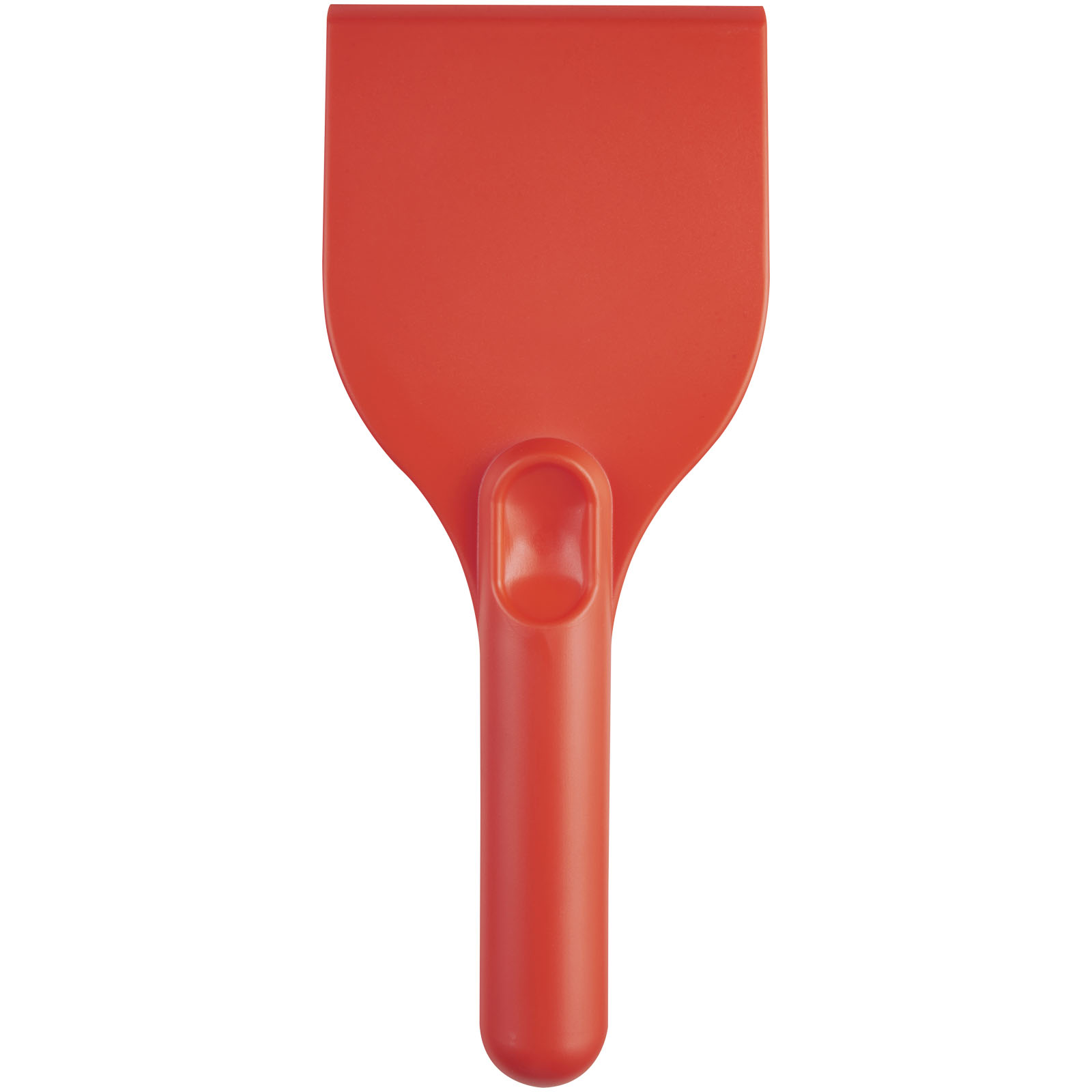Prosta ręczna skrobaczka do szyb samochodowych z dużą powierzchnią do dekoracji. Wykonana w Wielkiej Brytanii z tworzywa sztucznego pochodzącego z recyklingu polistyrenu.