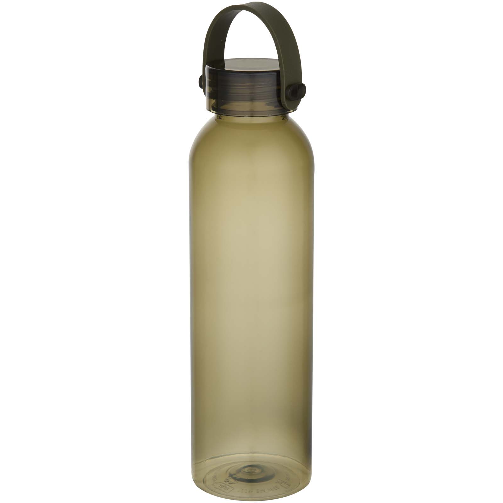 Butelka na wodę wykonana z certyfikowanego przez RCS tworzywa RPET, wyposażona w wygodny silikonowy uchwyt do przenoszenia. Wyprodukowana zgodnie z zatwierdzonym przez organizację EFSA procesem recyklingu tworzywa PET. Pojemność: 630 ml.