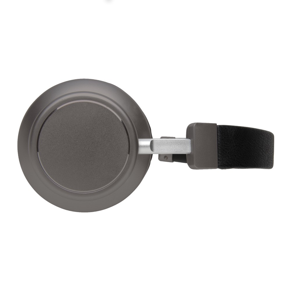 Słuchawki bezprzewodowe, funkcja odbierania połączeń, wbudowany mikrofon, wykonane z aluminium i PU, akumulator o pojemności 300 mAh umożliwia odtwarzanie muzyki do 11 godzin, ponowne ładowanie w 1,5 godziny, składane na płasko, pokrowiec w komplecie, kabel AUX w komplecie, ślad węglowy produktu: 2,19 kg CO2