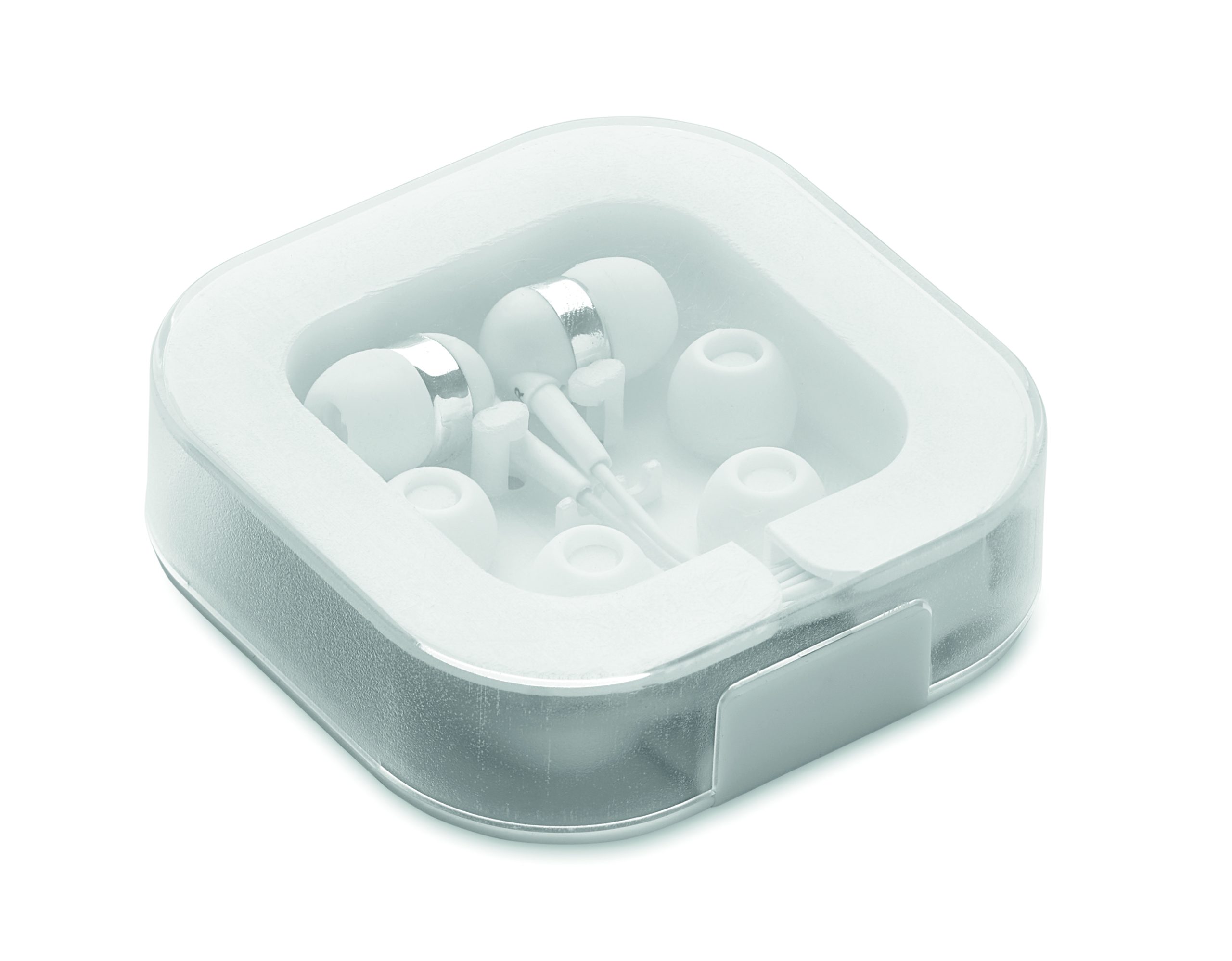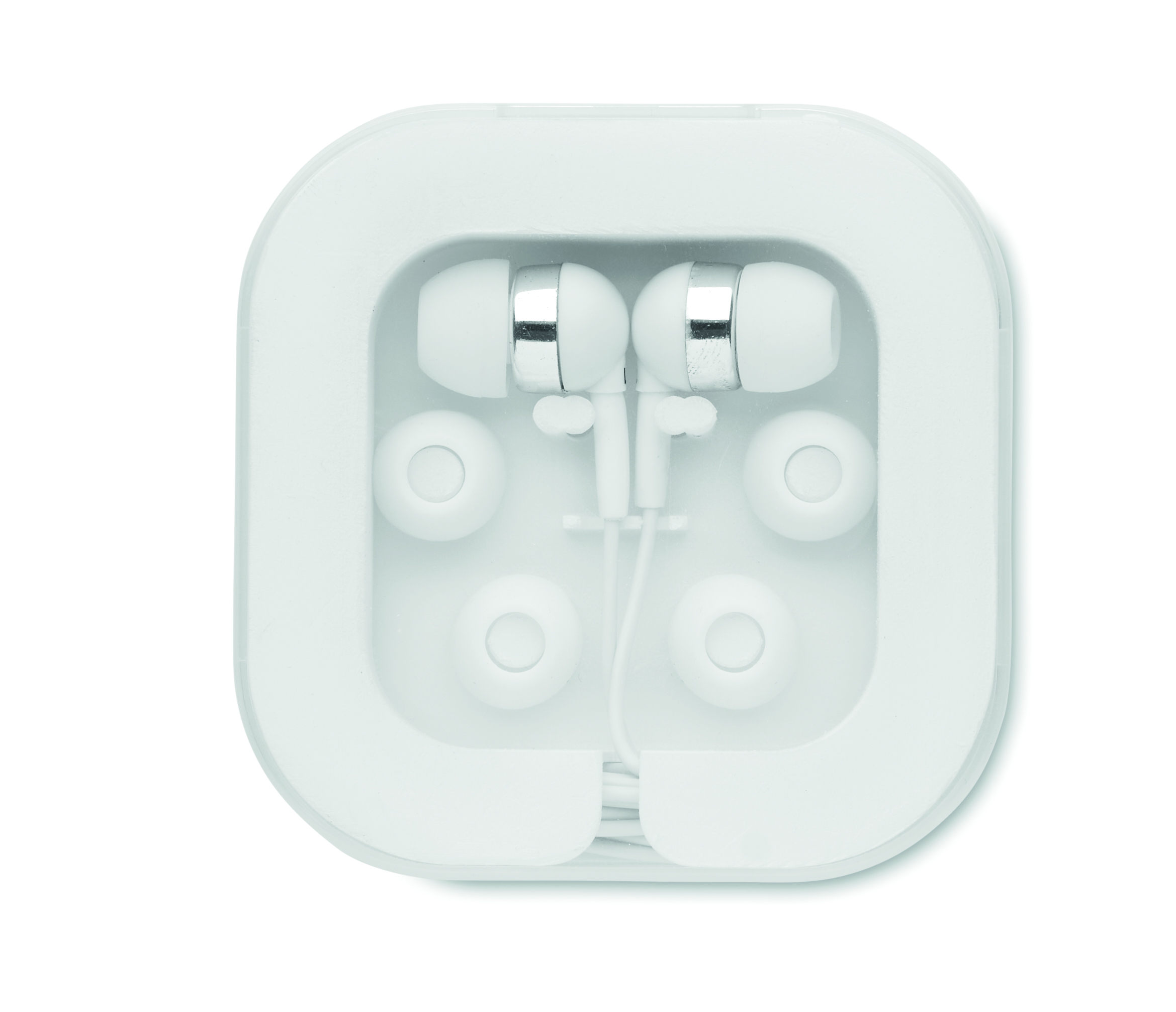 Silikonowe słuchawki douszne, które pomagają wygłuszyć hałas zewnętrznym, zapewniając lepszą jakość dźwięku. Zapakowane w plastikowe pudełko, w którym można prawidłowo przechowywać kabel o długości 120 cm. W zestawie 3 zapasowe silikonowe nakładki w różnych rozmiarach. Złącze: Typ-C.