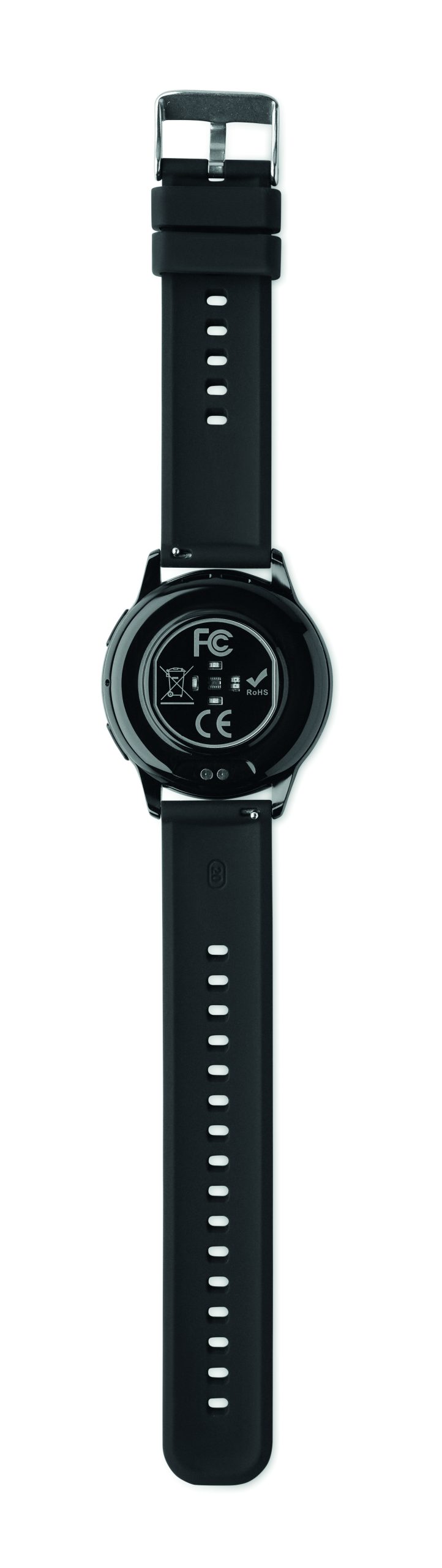 Wodoodporny bezprzewodowy smartwatch IP67 ze stopu cynku z silikonowym paskiem. 1.32-calowy ekran dotykowy AMOLED. Akumulator Li-Pol 300 mAh. Wymaga bezpłatnej aplikacji (FitCloudPro dostępnej w systemach iOS i Android).