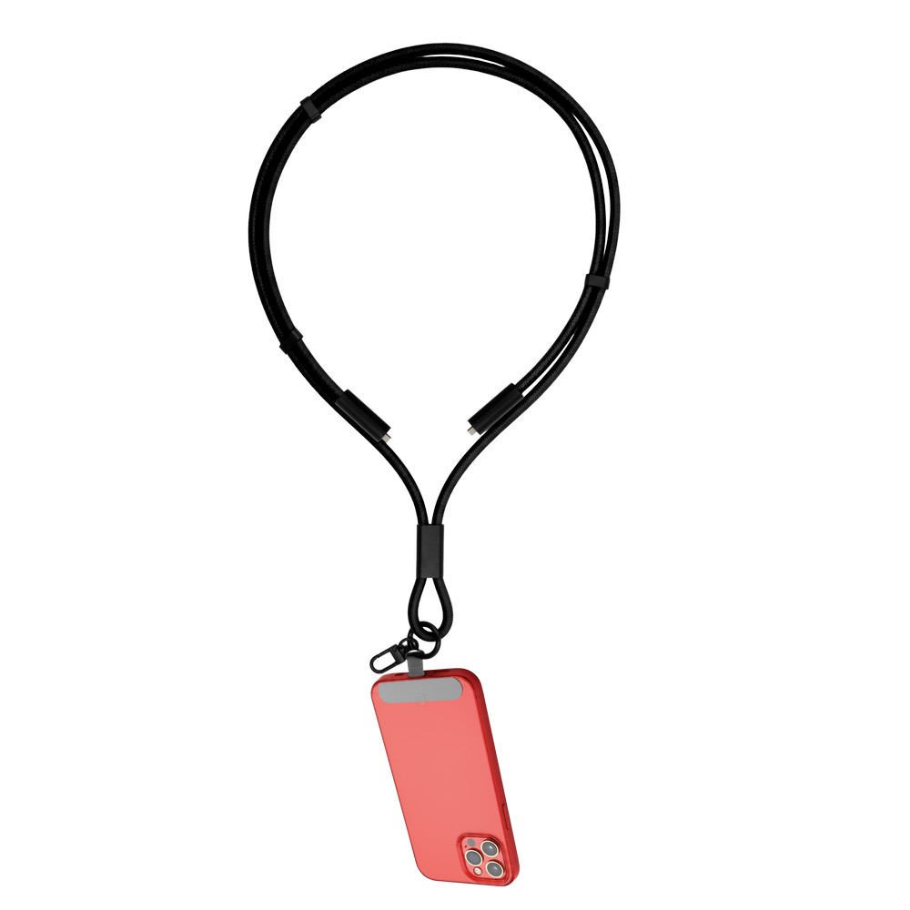 Smycz do noszenia telefonu z kablem do transmisji danych i ładowania, końcówki typu C, moc maksymalna ładowania USB C do USB C 60W