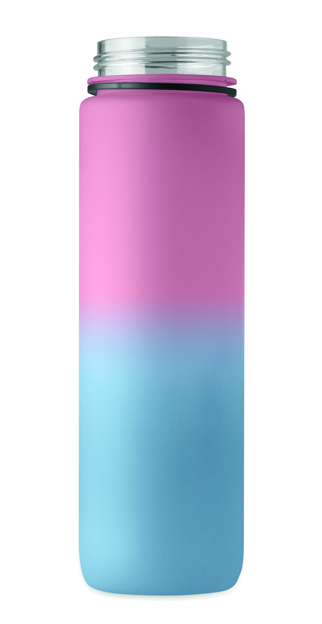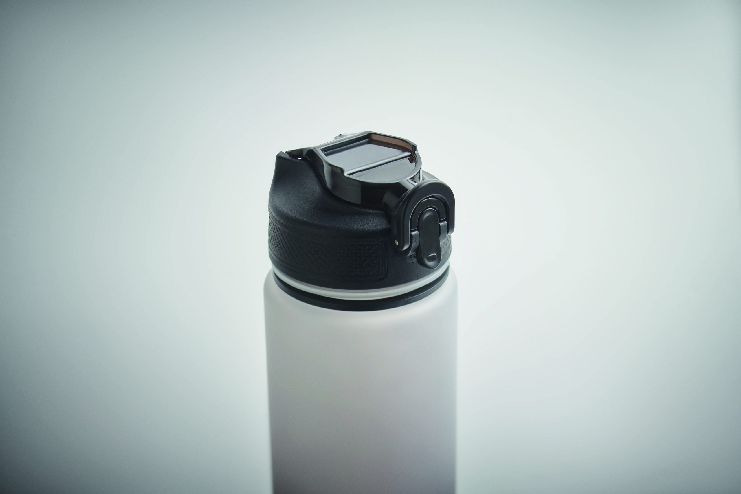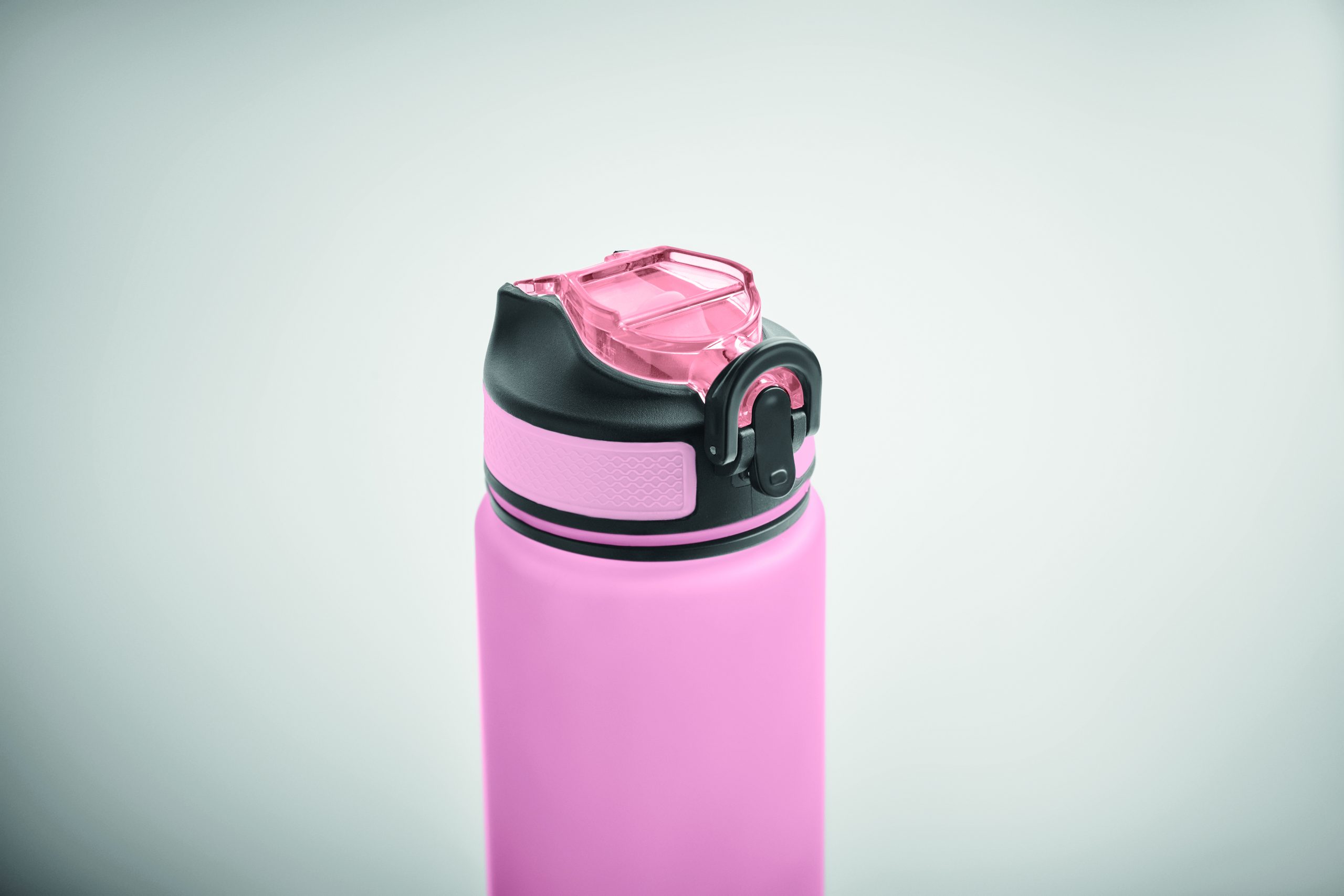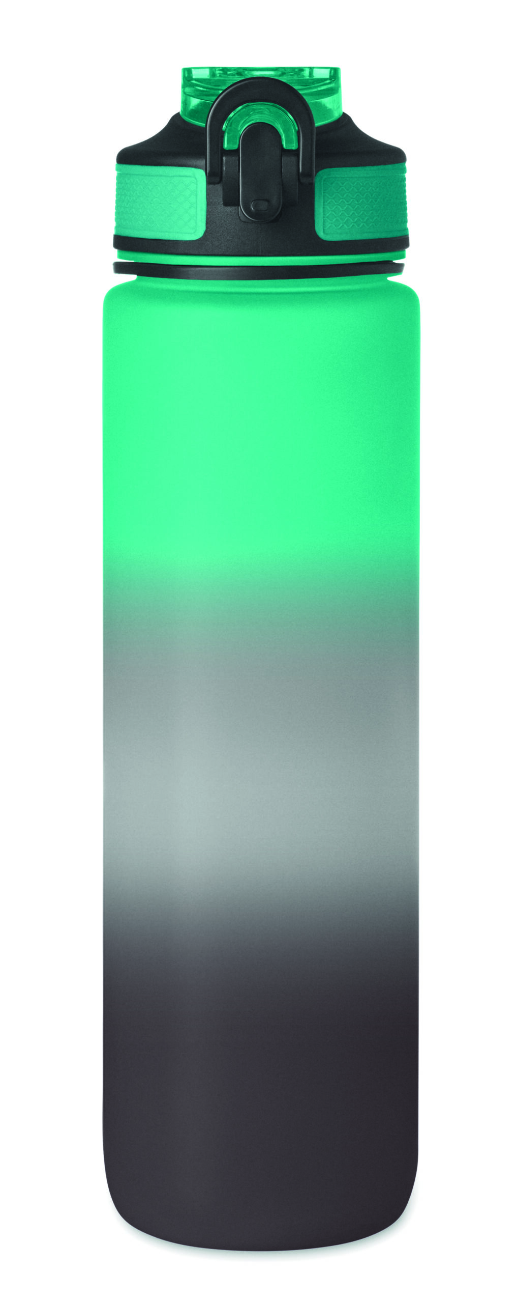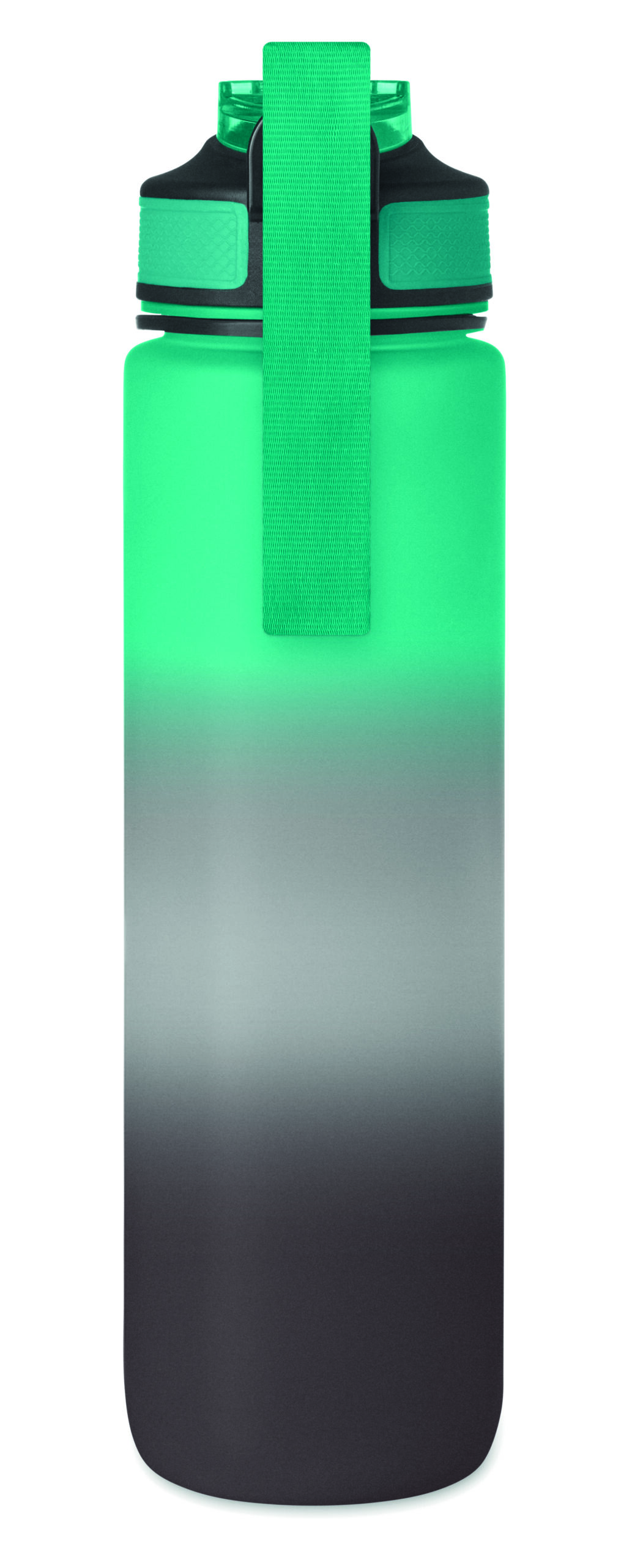 Sportowa butelka na wodę z RPET ze zintegrowaną słomką, miękkim silikonowym ustnikiem, motywacyjnym oznaczeniem czasu, otwieraną jedną ręką klapką, blokadą bezpieczeństwa i paskiem do przenoszenia. Pojemność 1 l. Szczelna.