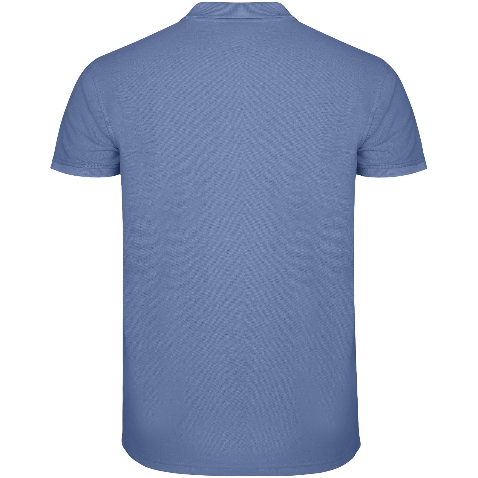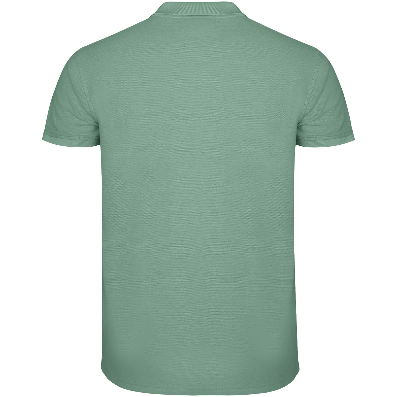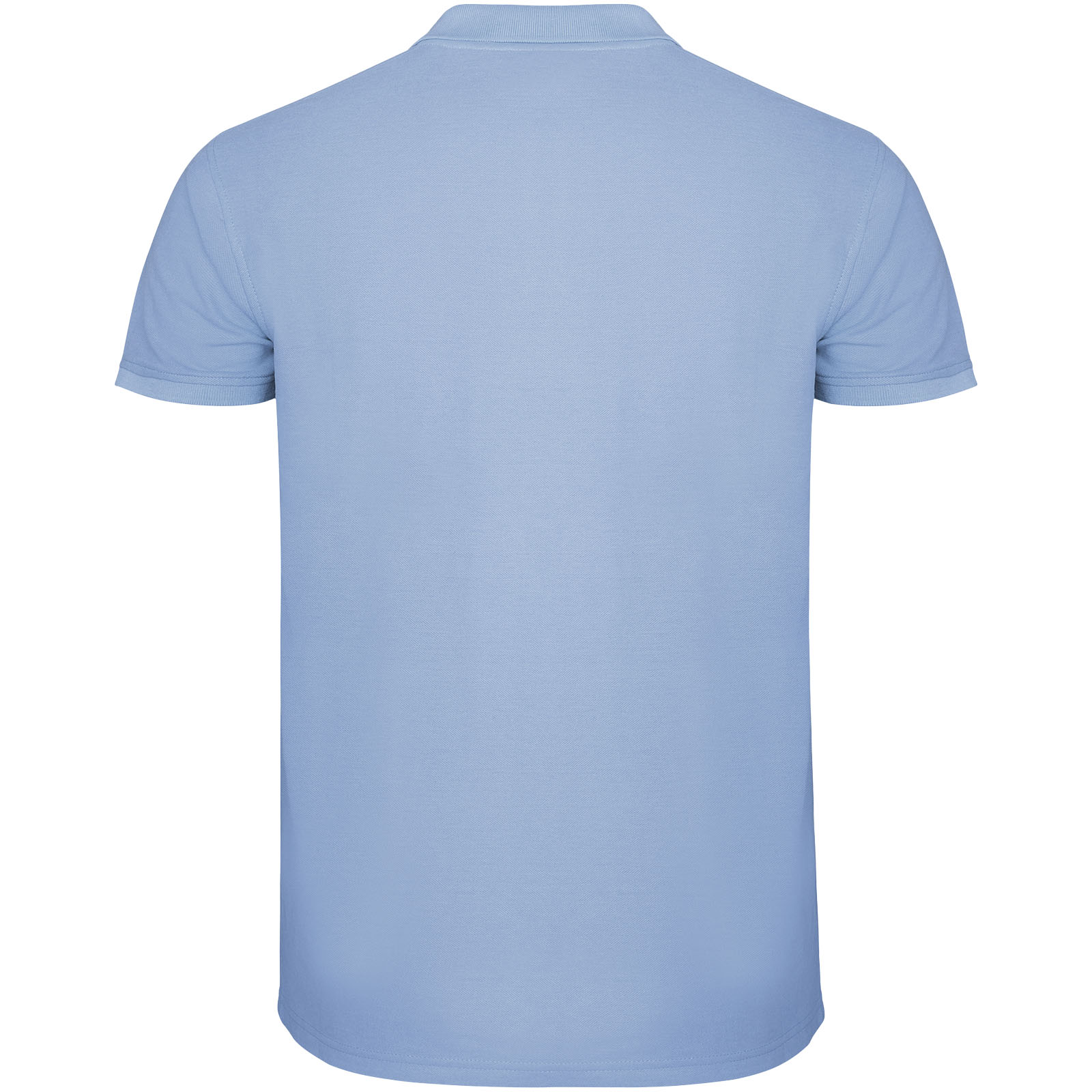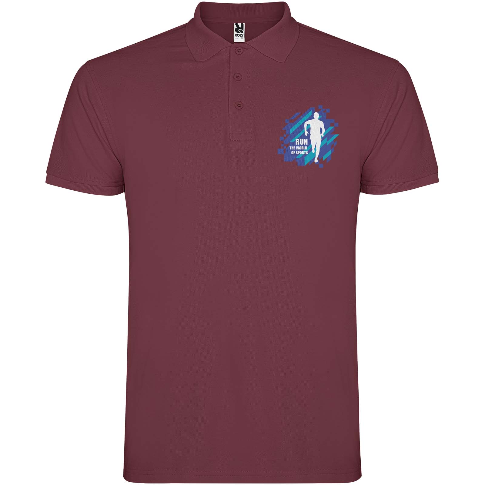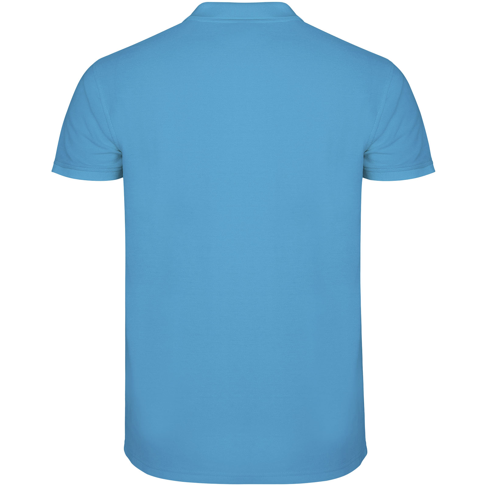 Męska koszulka polo z krótkim rękawem. Wzmocnione kryte szwy w wewnętrznym kołnierzyku. Prążkowane mankiety i kołnierzyk 1×1. Szwy boczne. Zapięcie na 3 guziki i boczne rozcięcia. Opcjonalna kieszeń. Usuwalna metka.