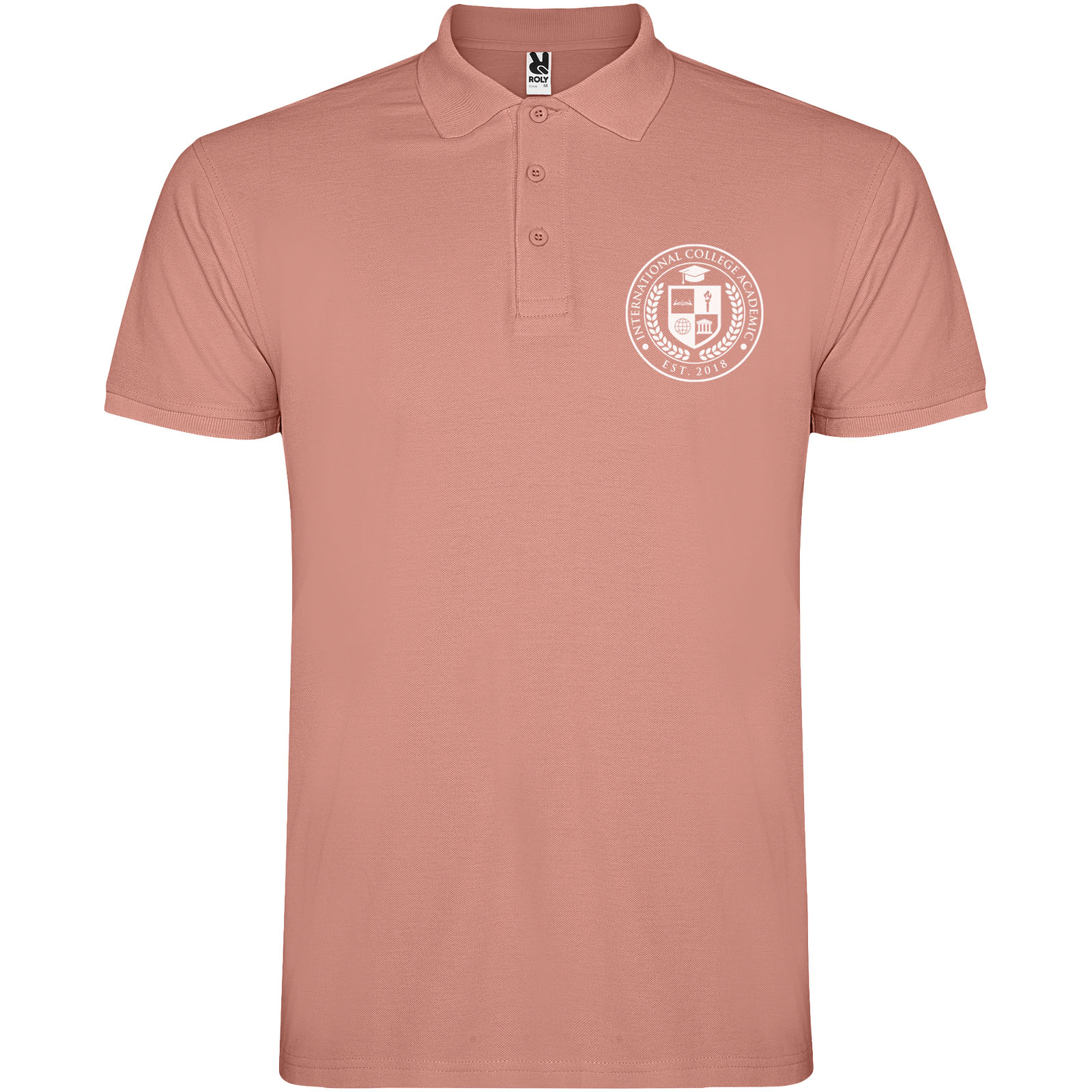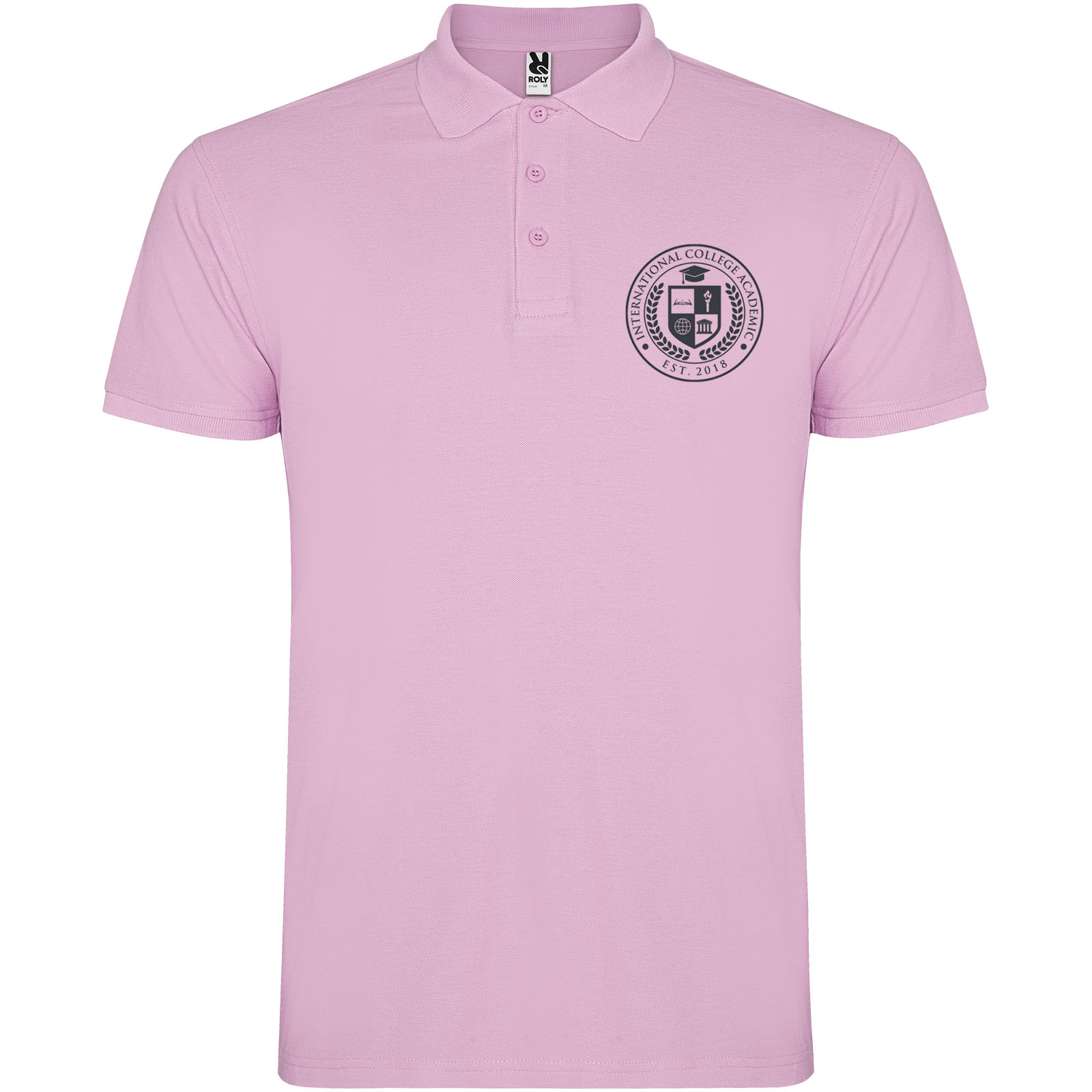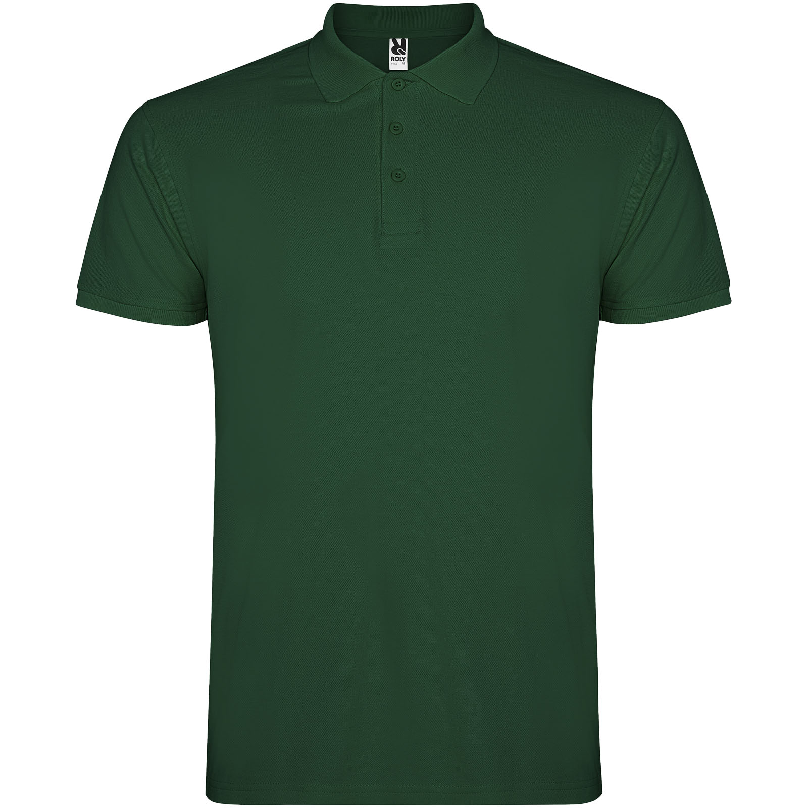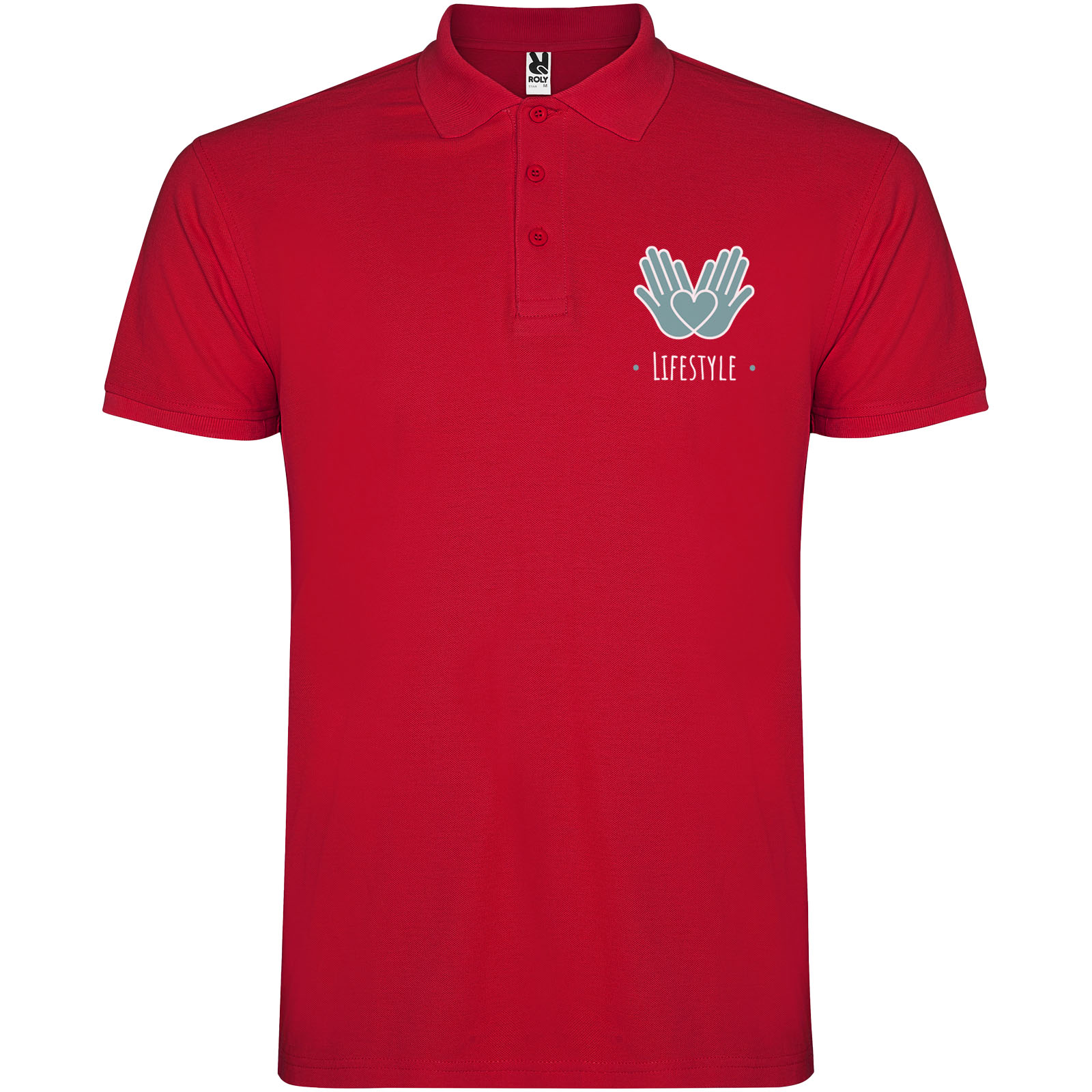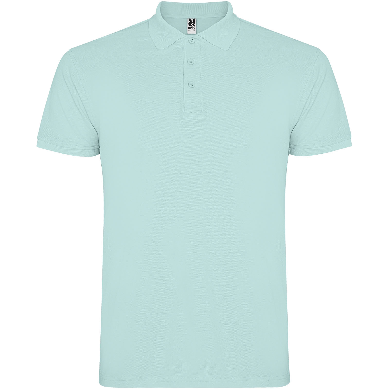 Męska koszulka polo z krótkim rękawem. Wzmocnione kryte szwy w wewnętrznym kołnierzyku. Prążkowane mankiety i kołnierzyk 1×1. Szwy boczne. Zapięcie na 3 guziki i boczne rozcięcia. Opcjonalna kieszeń. Usuwalna metka.