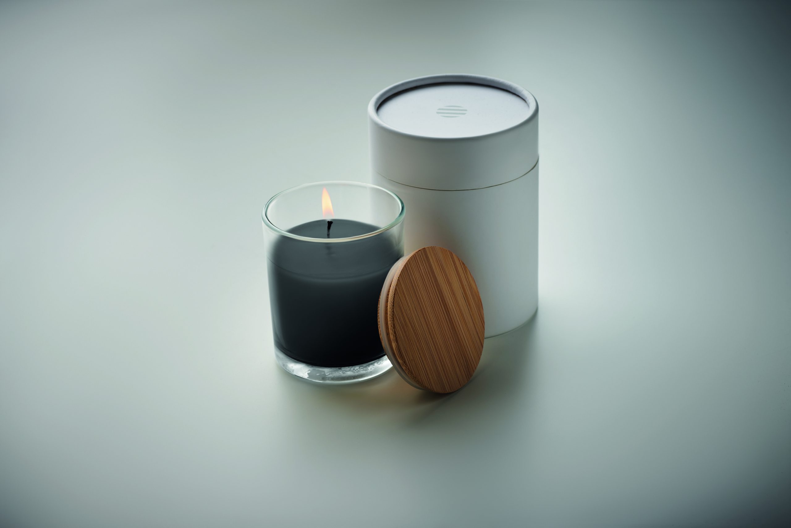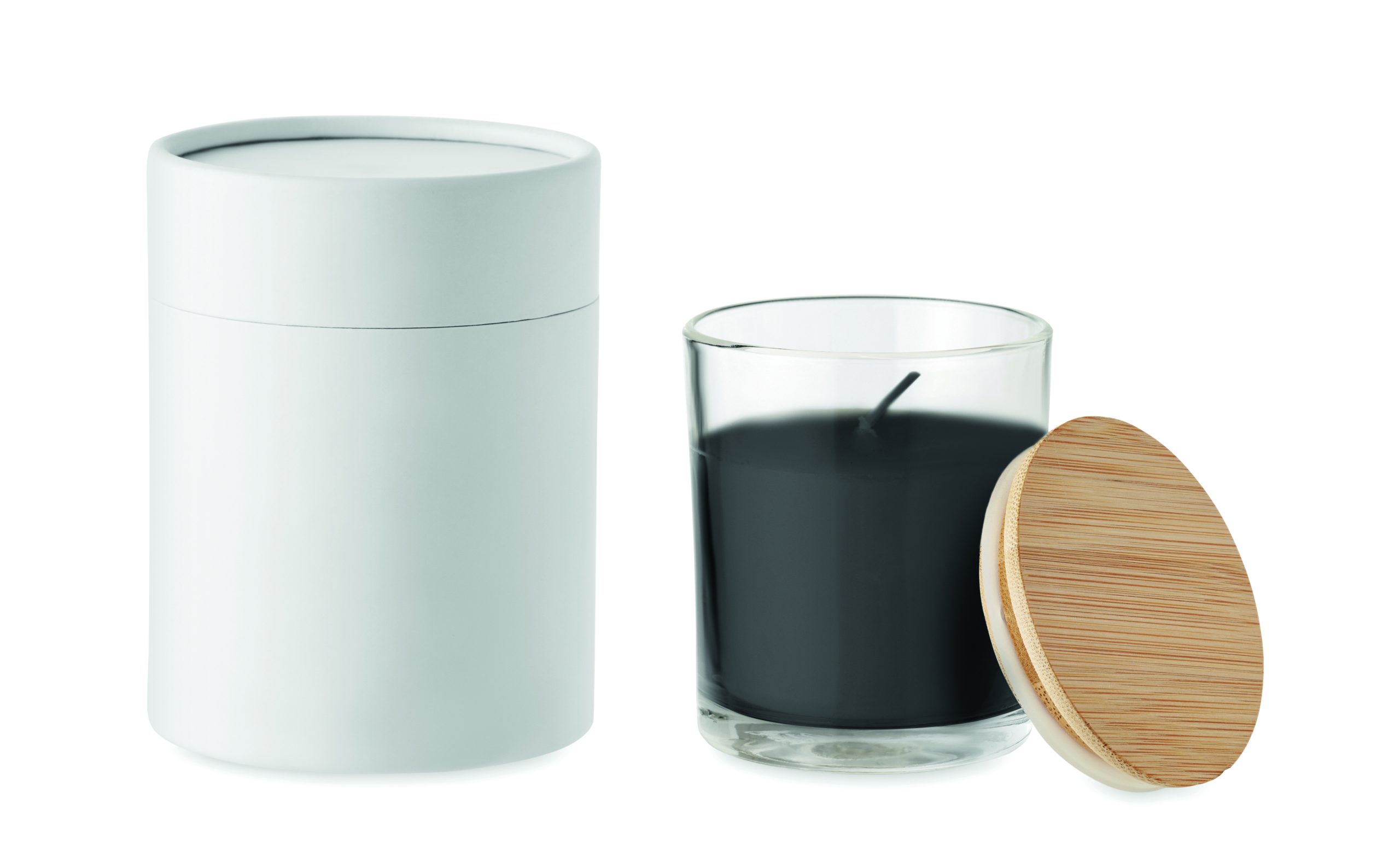 120gr roślinna woskowa świeca o zapachu wanilii w szkle z bambusowym wieczkiem, prezentowana w papierowym pudełku prezentowym w kształcie tuby. Spraw, aby Twój dom otulił przyjemny zapach zapach wanilii. Gdy nie używasz świecy, zamknij ją bambusową pokrywką, aby nadać jej bardziej naturalny wygląd. Czas palenia: 20 godzin. Bambus jest produktem naturalnym, mogą występować niewielkie różnice w kolorze i rozmiarze poszczególnych elementów, co może mieć wpływ na końcowy efekt dekoracji.