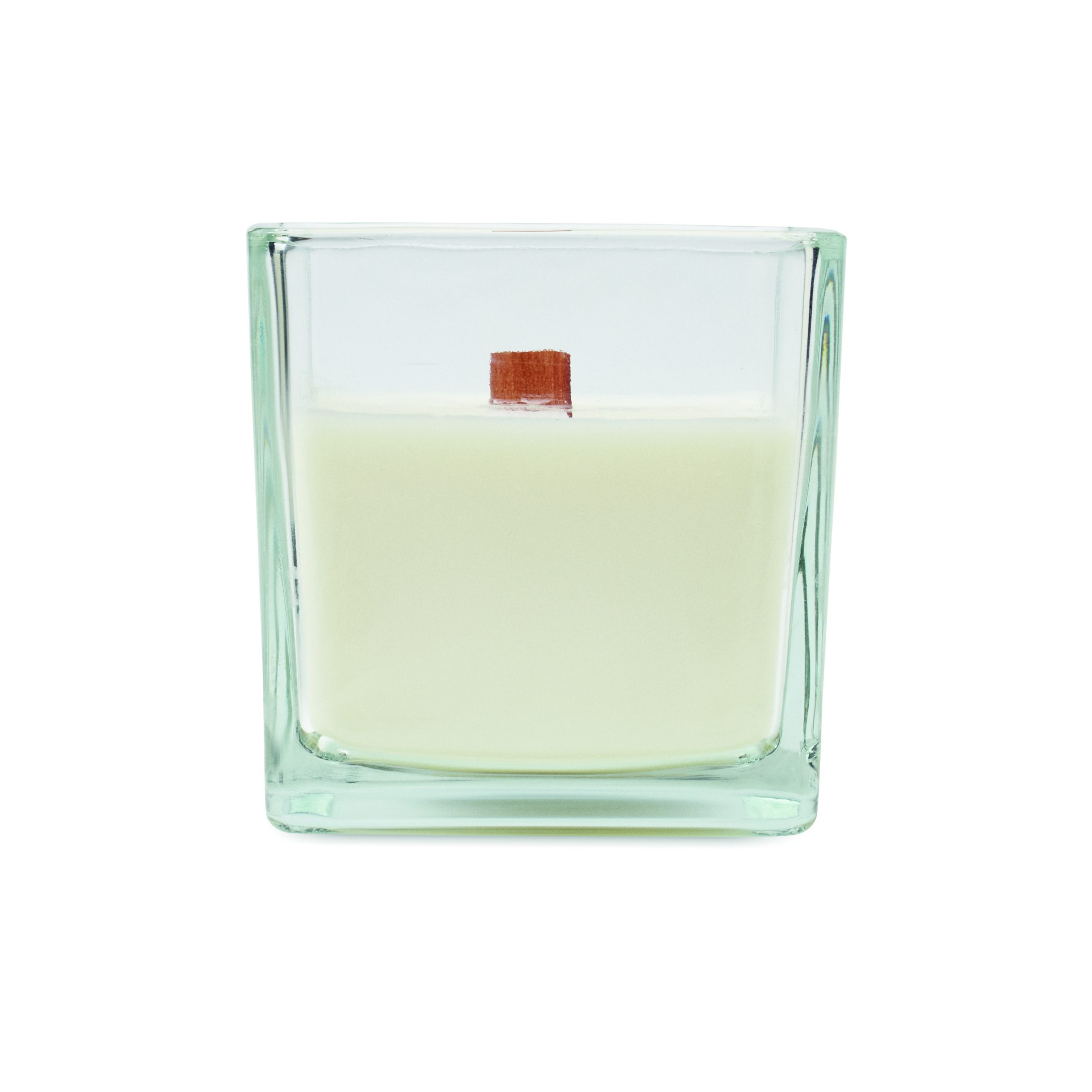 Duża świeca woskowa o zapachu wanilii na bazie roślinnej o wadze 600 g w szkle z drewnianym knotem. Czas palenia 65 godzin