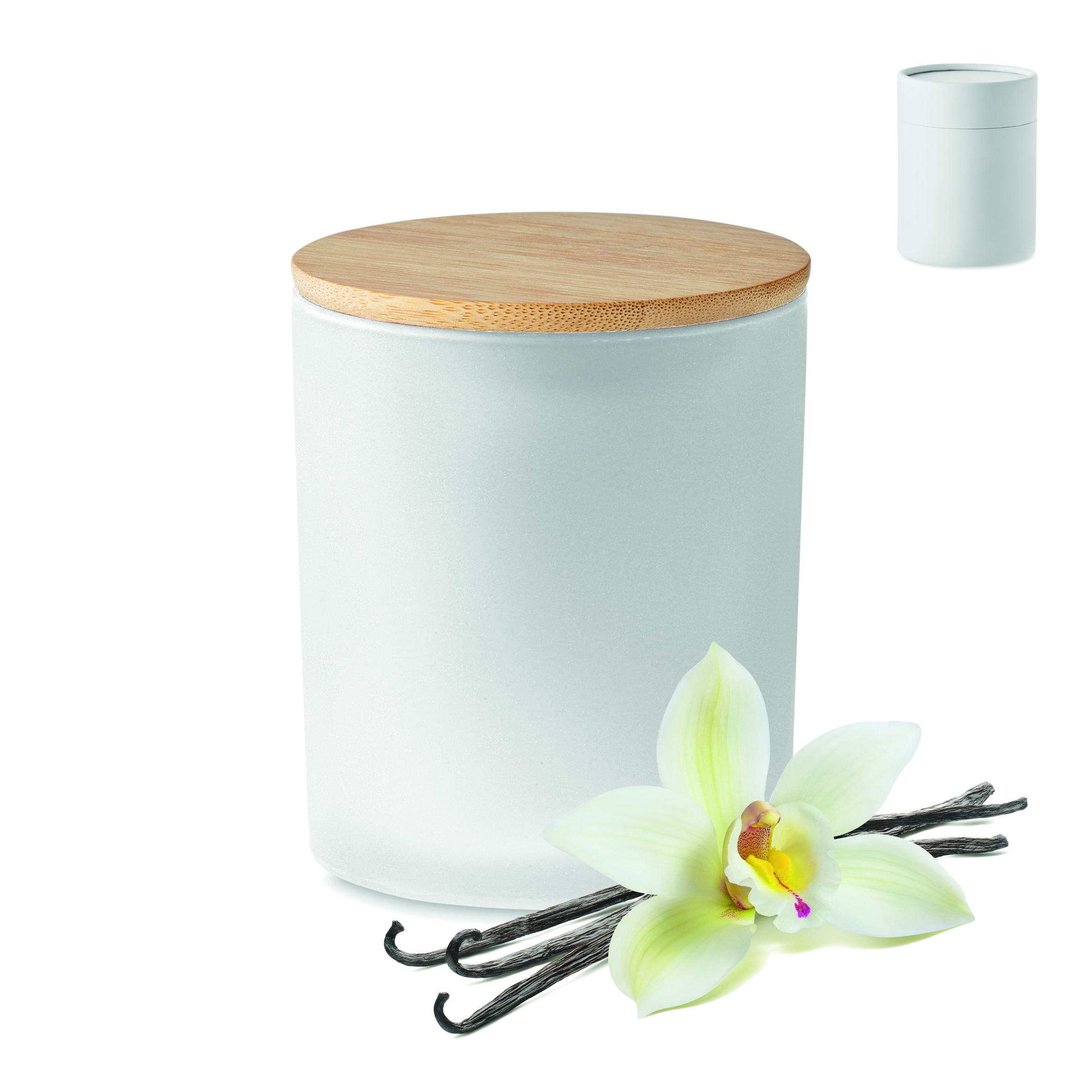 Wosk roślinny, świeca roślinna o zapachu cynamonu, wanilii, drzewa sandałowego lub jaśminu w szklanym, matowym słoiku z bambusową pokrywką. 280 gr. Czas palenia: 46 godzin. Zapakowane w papierowe pudełko prezentowe w kształcie tuby. Bambus jest produktem naturalnym, dlatego mogą wystąpić nieznaczne różnice w kolorze, wzorze i rozmiarze.