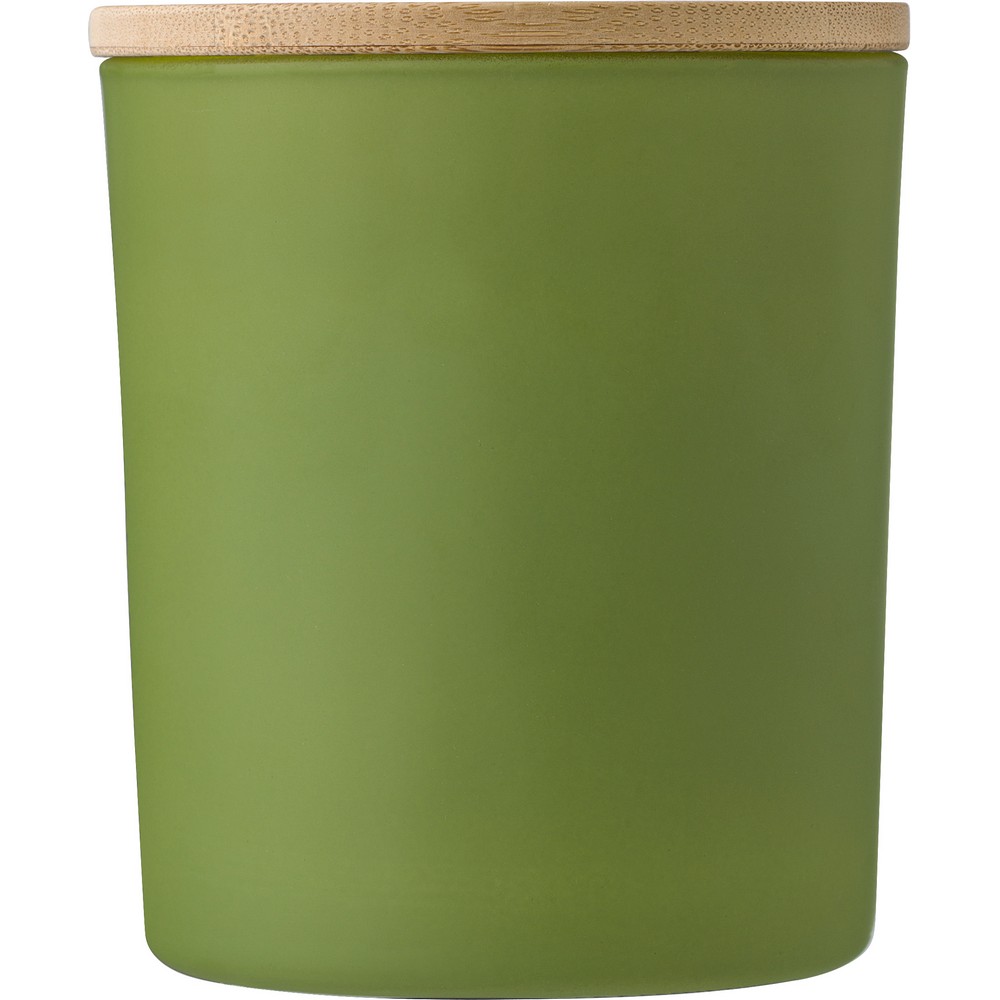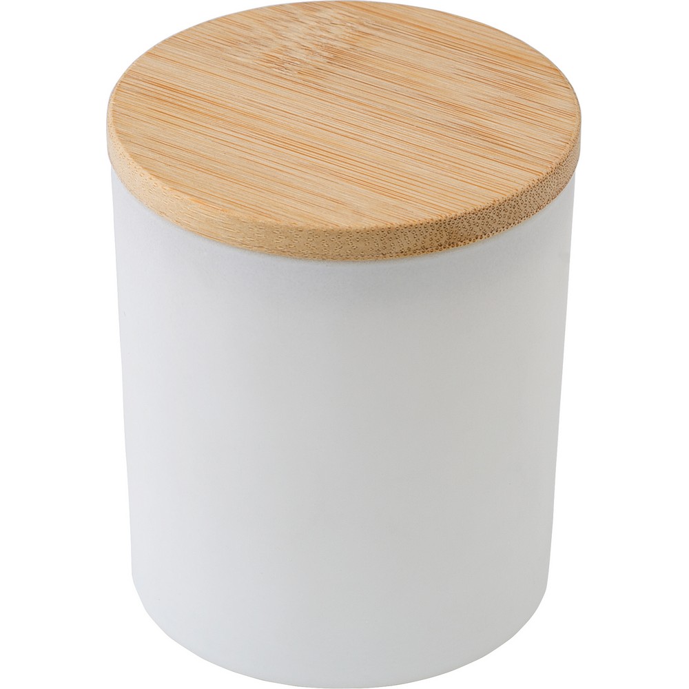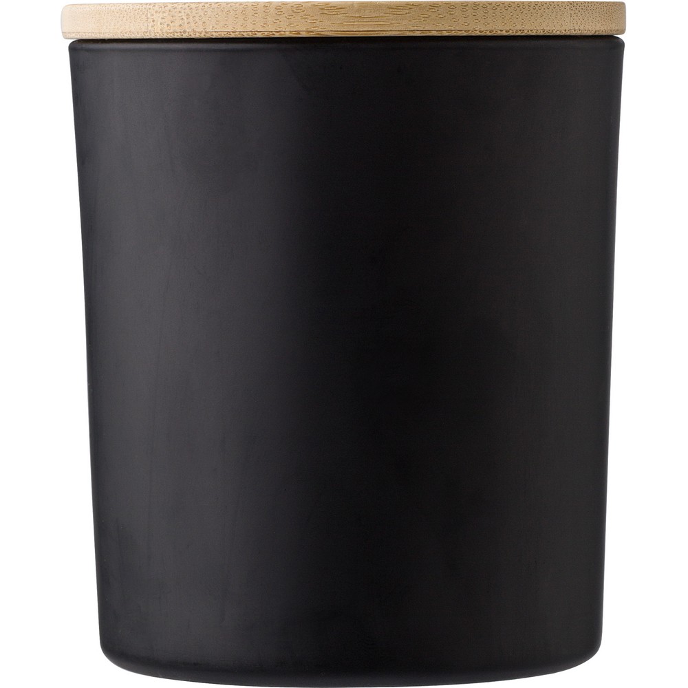 Świeczka zapachowa w szklanym słoiczku (02-wanilia, 05-cynamon, 03-olejek sandałowy, 06-jaśmin) z bambusowym wieczkiem, zawiera głównie wosk roślinny (wosk carbauba), czas palenia około 20h
