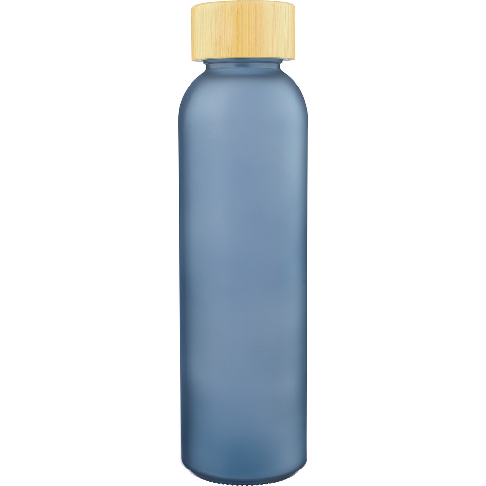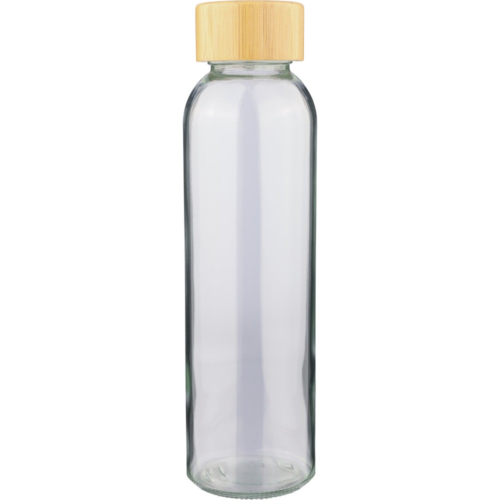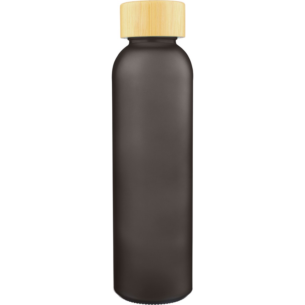 Szklana butelka 500 ml z bambusową nakrętką, matowe wykończenie powierzchni, zapakowana pojedynczo w brązowe kartonowe pudełko