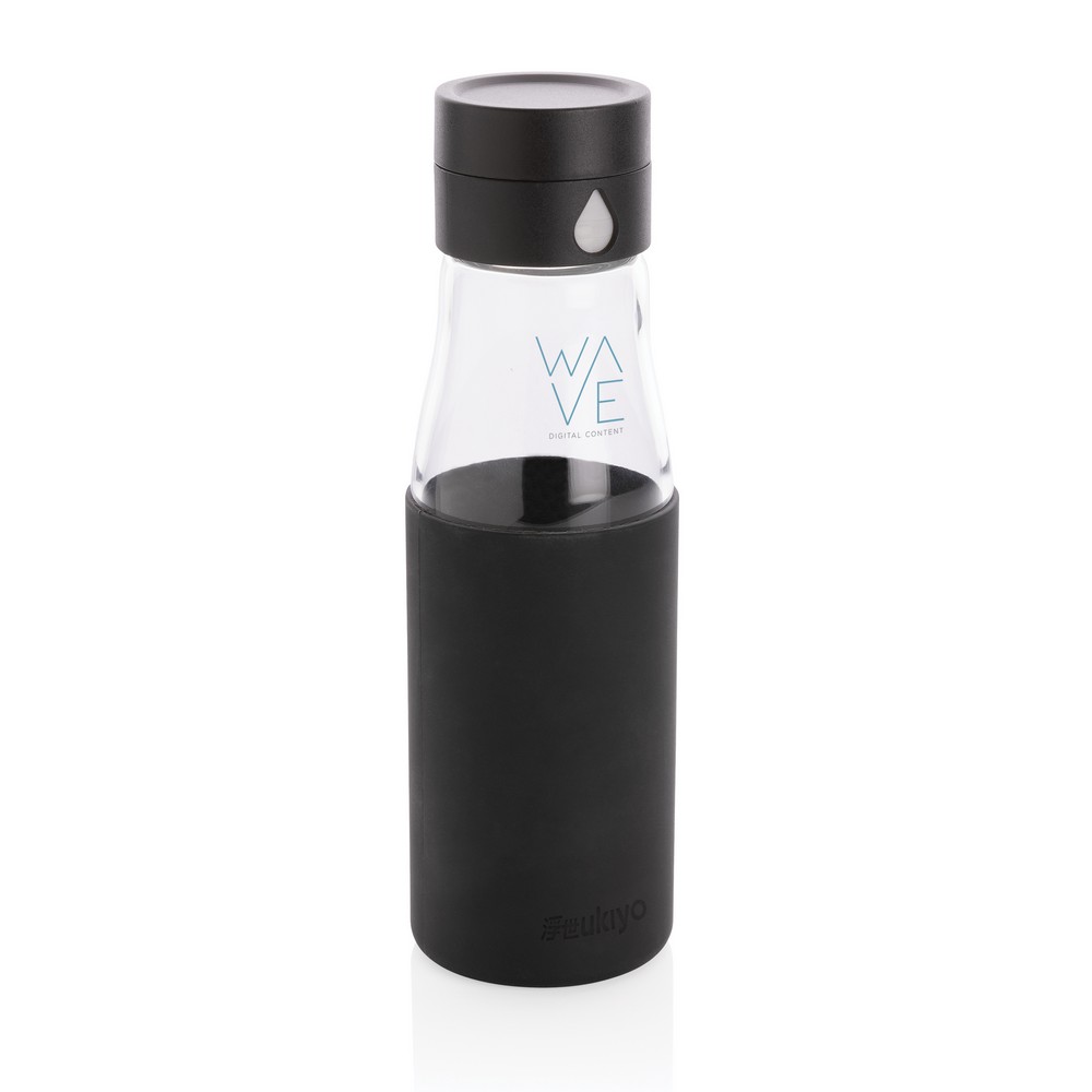 Szklana butelka 650 ml, wykonana ze szkła borokrzemowego, po napełnieniu butelki i przekręceniu pierścienia na zakrętce pojawia się duża kropla, dzięki której łatwo można policzyć ilość wypitych butelek wody, szczelna, wyłącznie mycie ręczne, korpus można myć w zmywarce, wzór zastrzeżony®, ślad węglowy produktu: 1,45 kg CO2