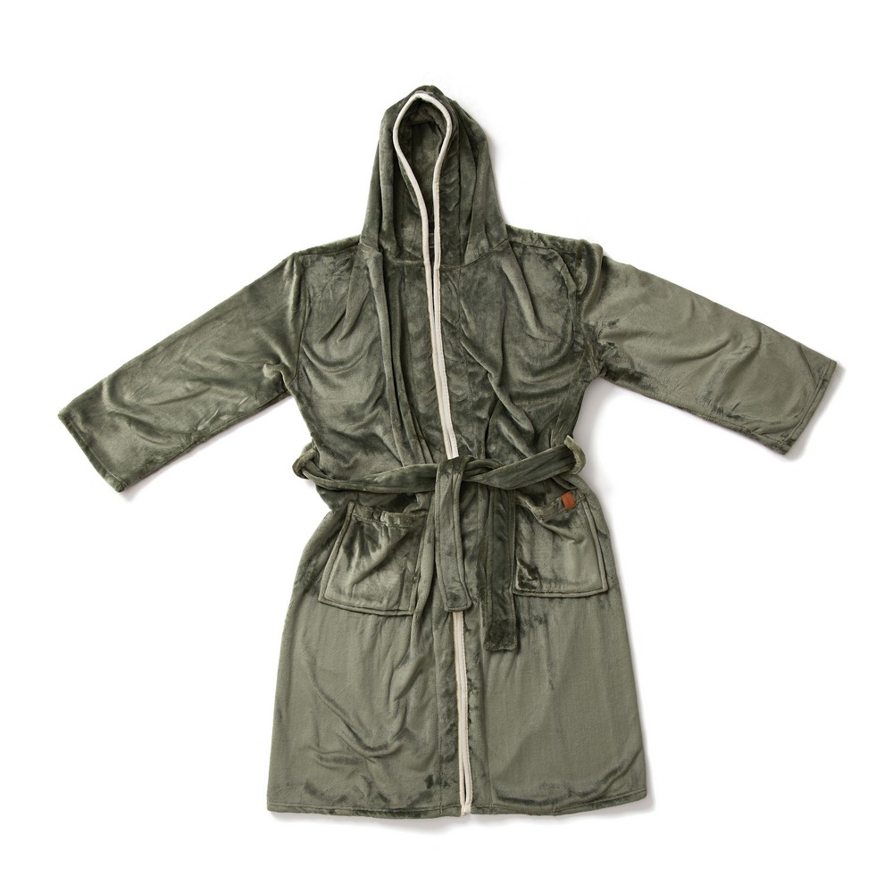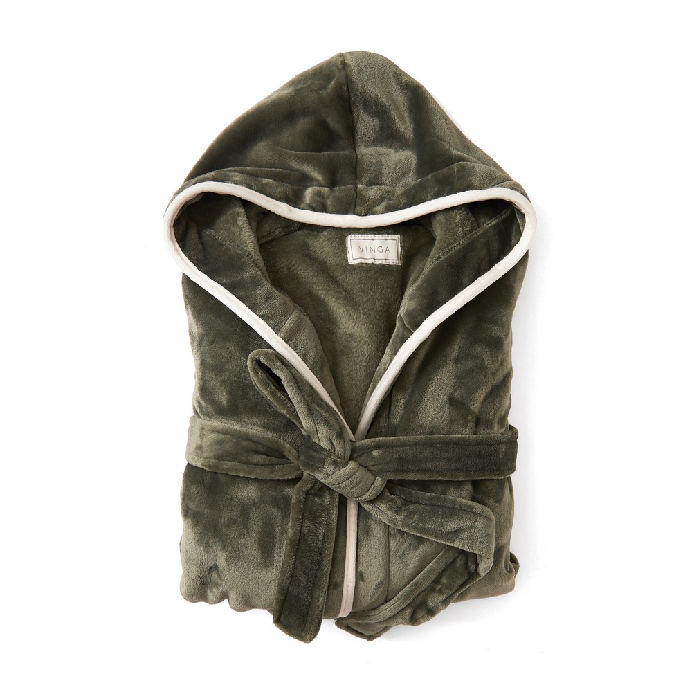 Szlafrok, wykonany w 70% z RPET, 2 kieszenie z przodu, możliwość zawiązania w pasie, szeroki kołnierzyk, spełnia wymagania standardu OEKO-TEX 100