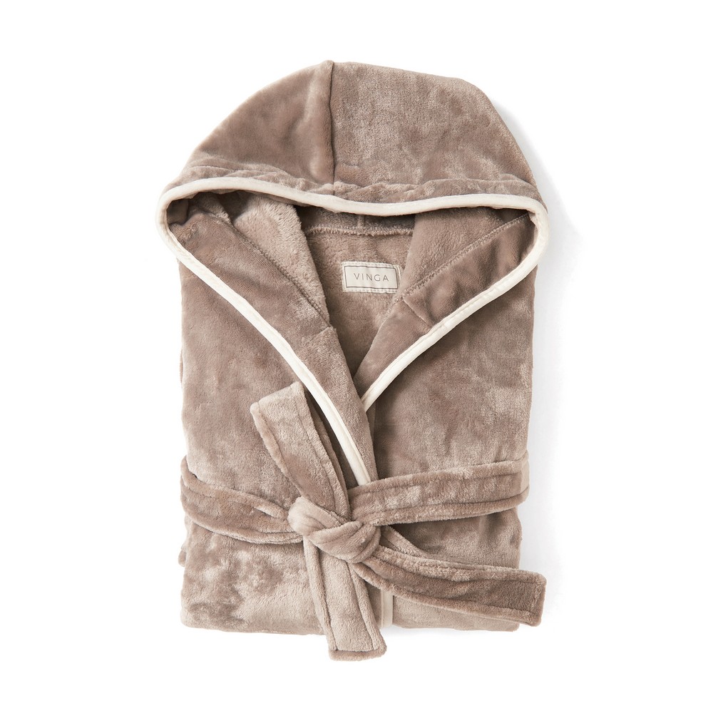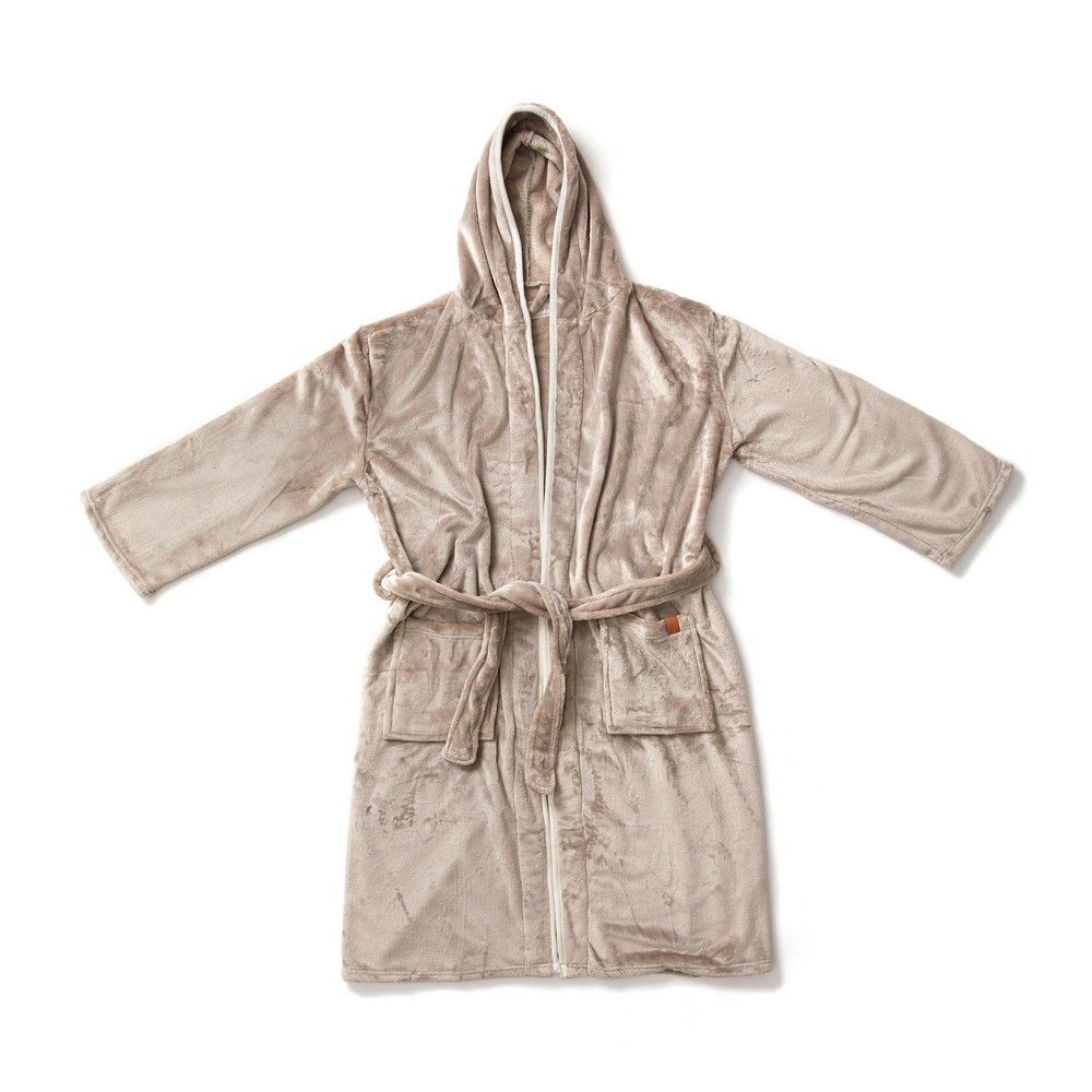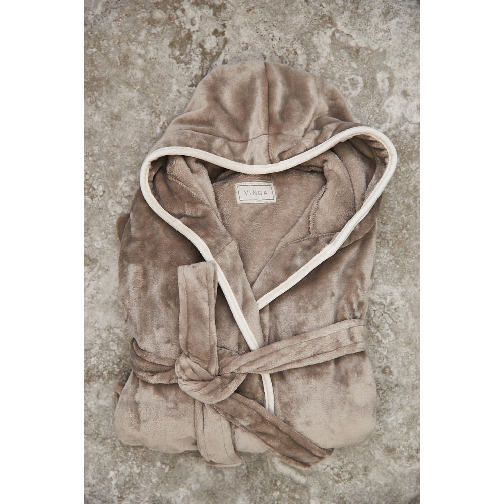 Szlafrok, wykonany w 70% z RPET, 2 kieszenie z przodu, możliwość zawiązania w pasie, szeroki kołnierzyk, spełnia wymagania standardu OEKO-TEX 100