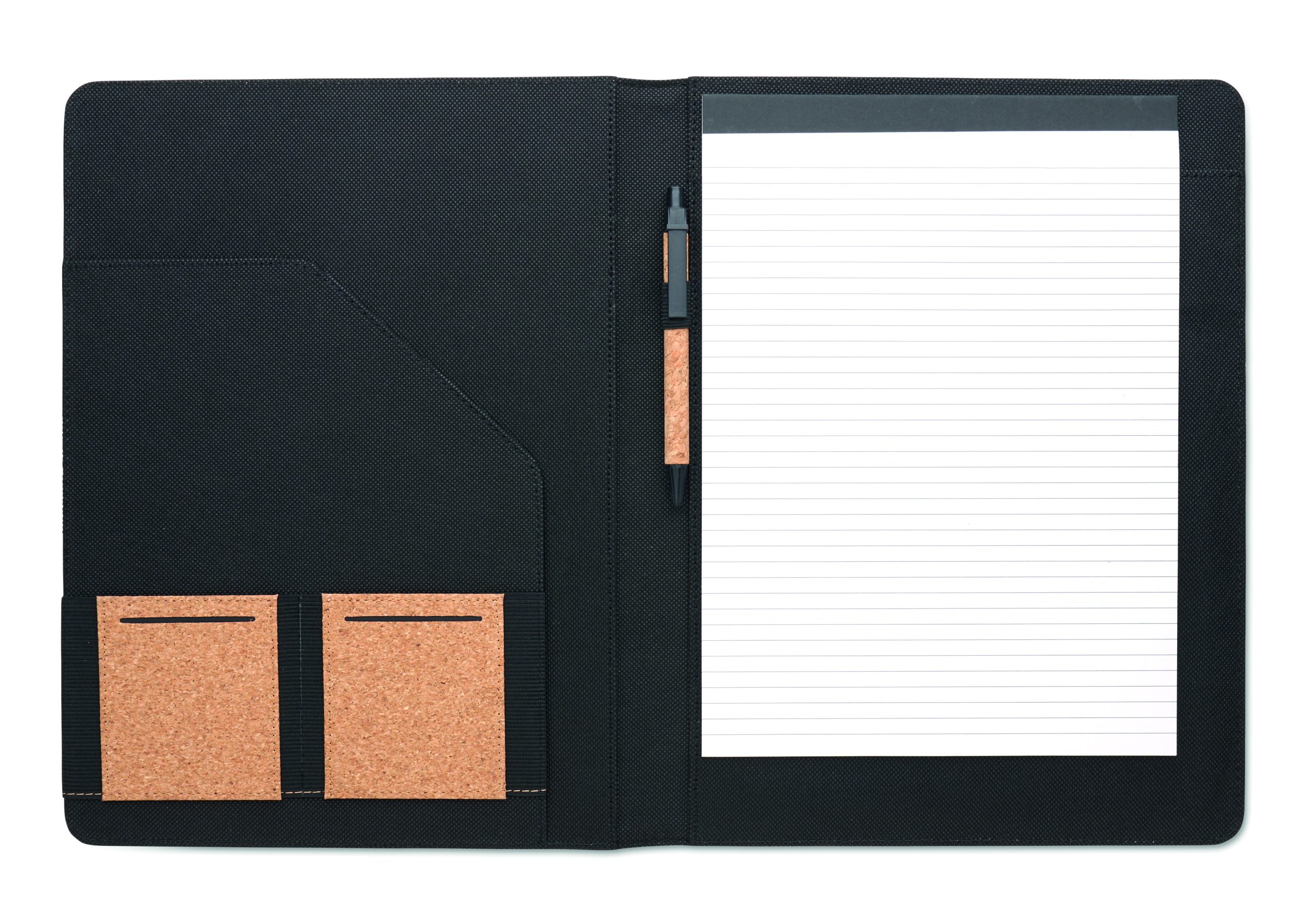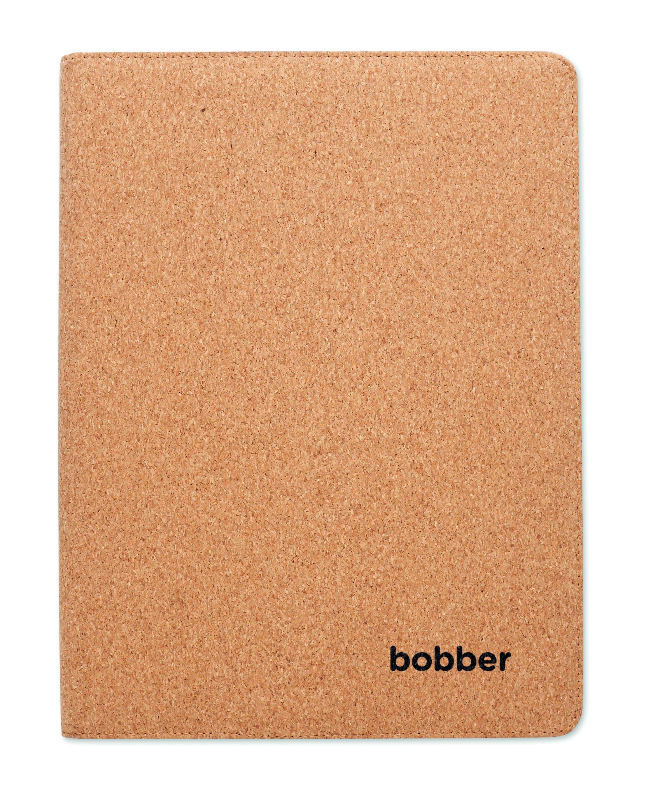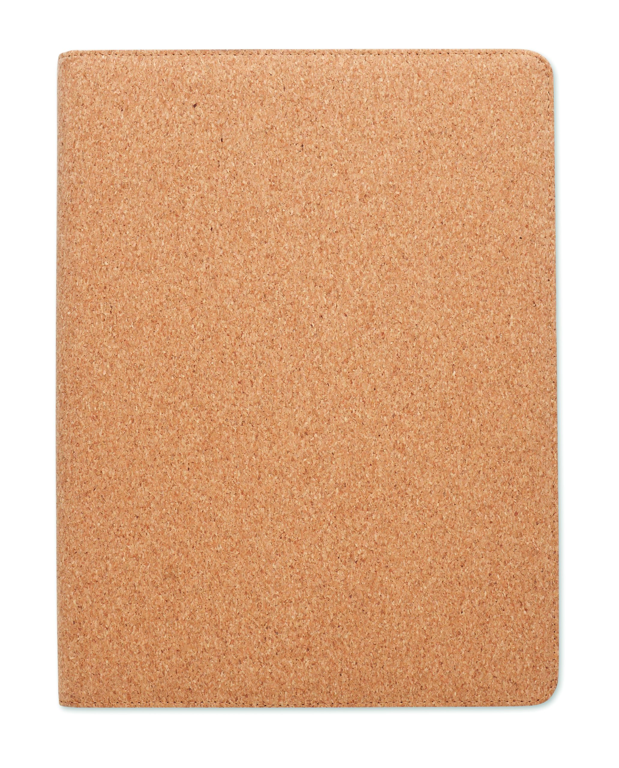 Teczka konferencyjna A4 z korka. Notatnik A4 wielokrotnego użytku. 30 arkuszy papieru z recyklingu. Dopasowany uchwyt na długopis i pióro. 2 kieszonki na karty i jedna duża przegroda.