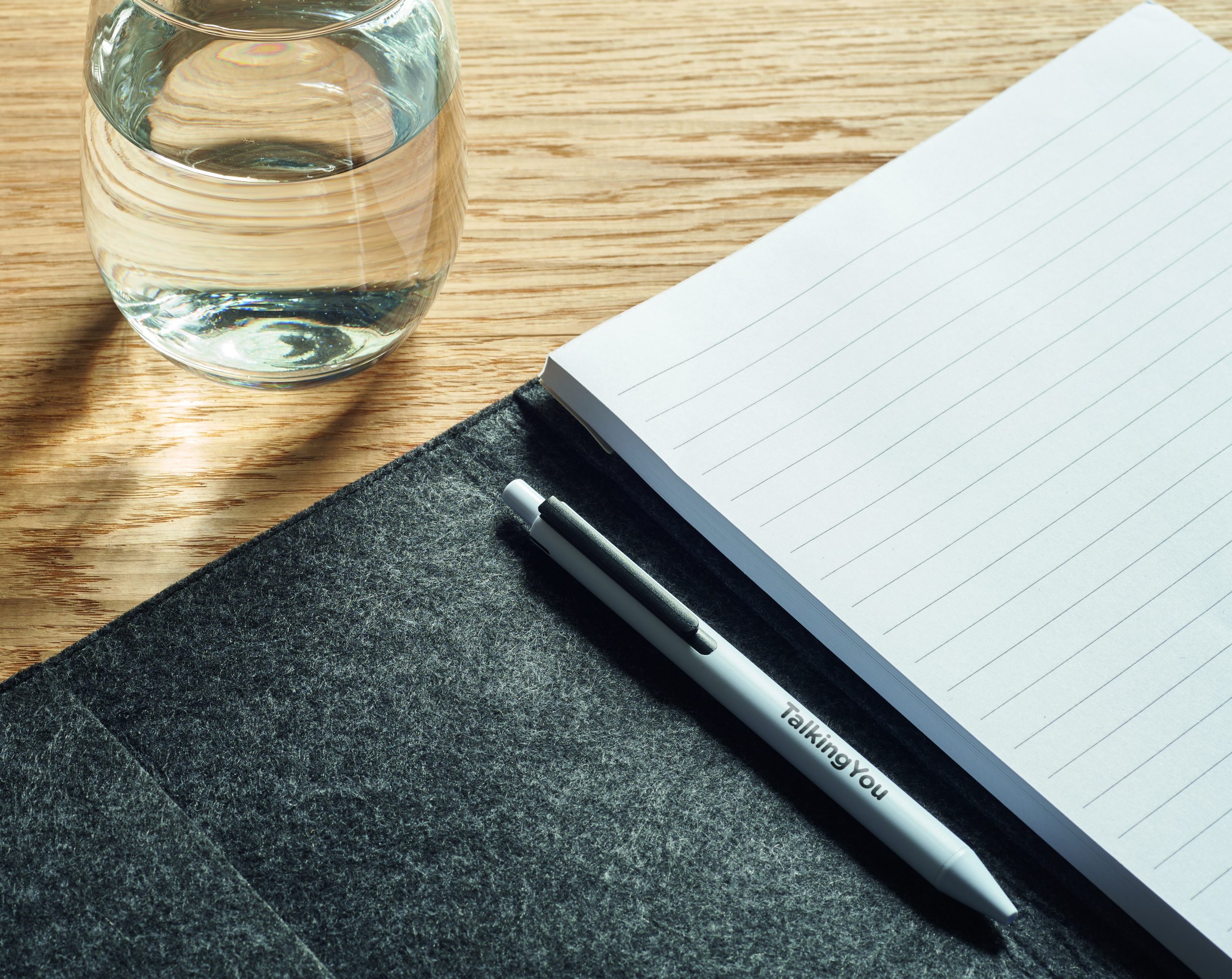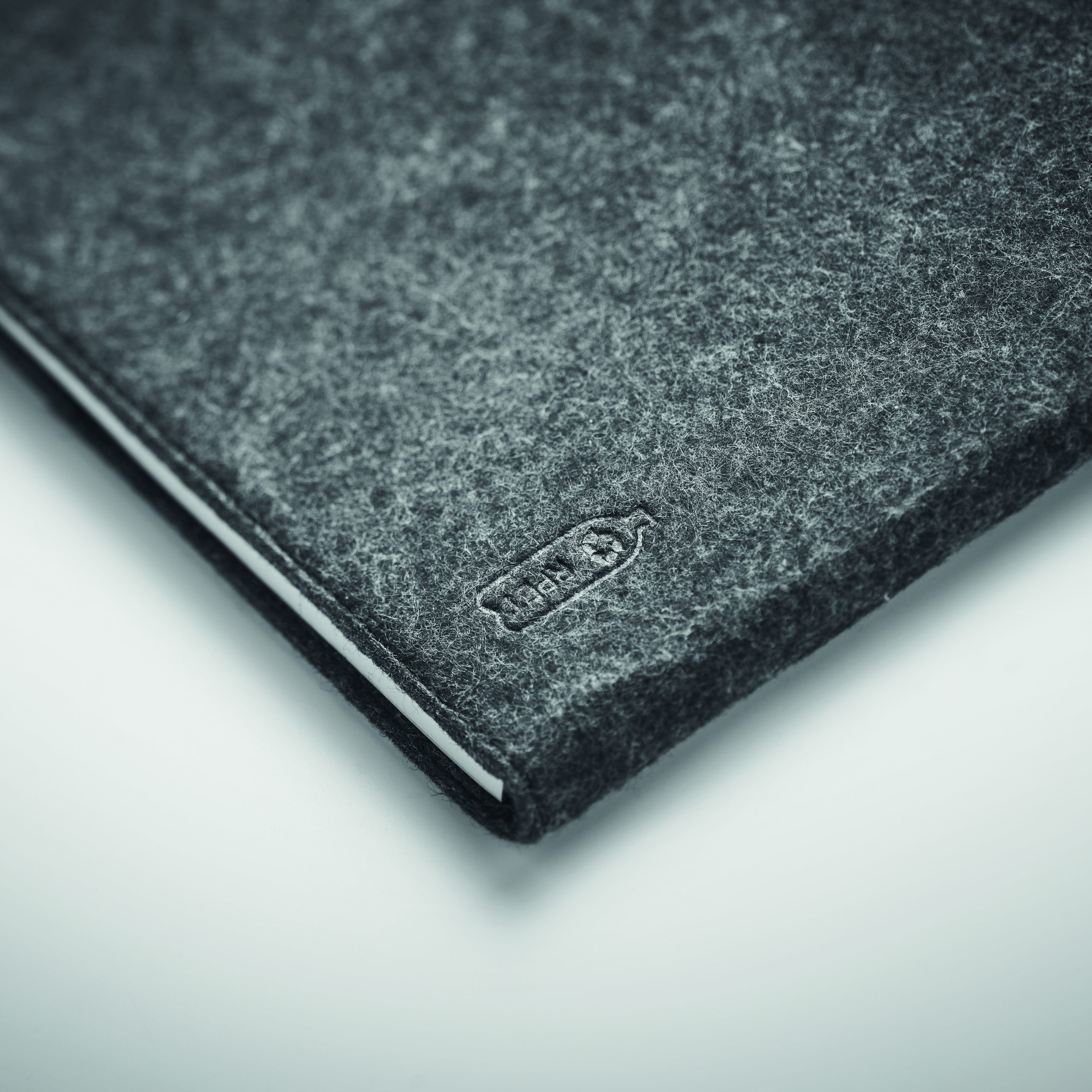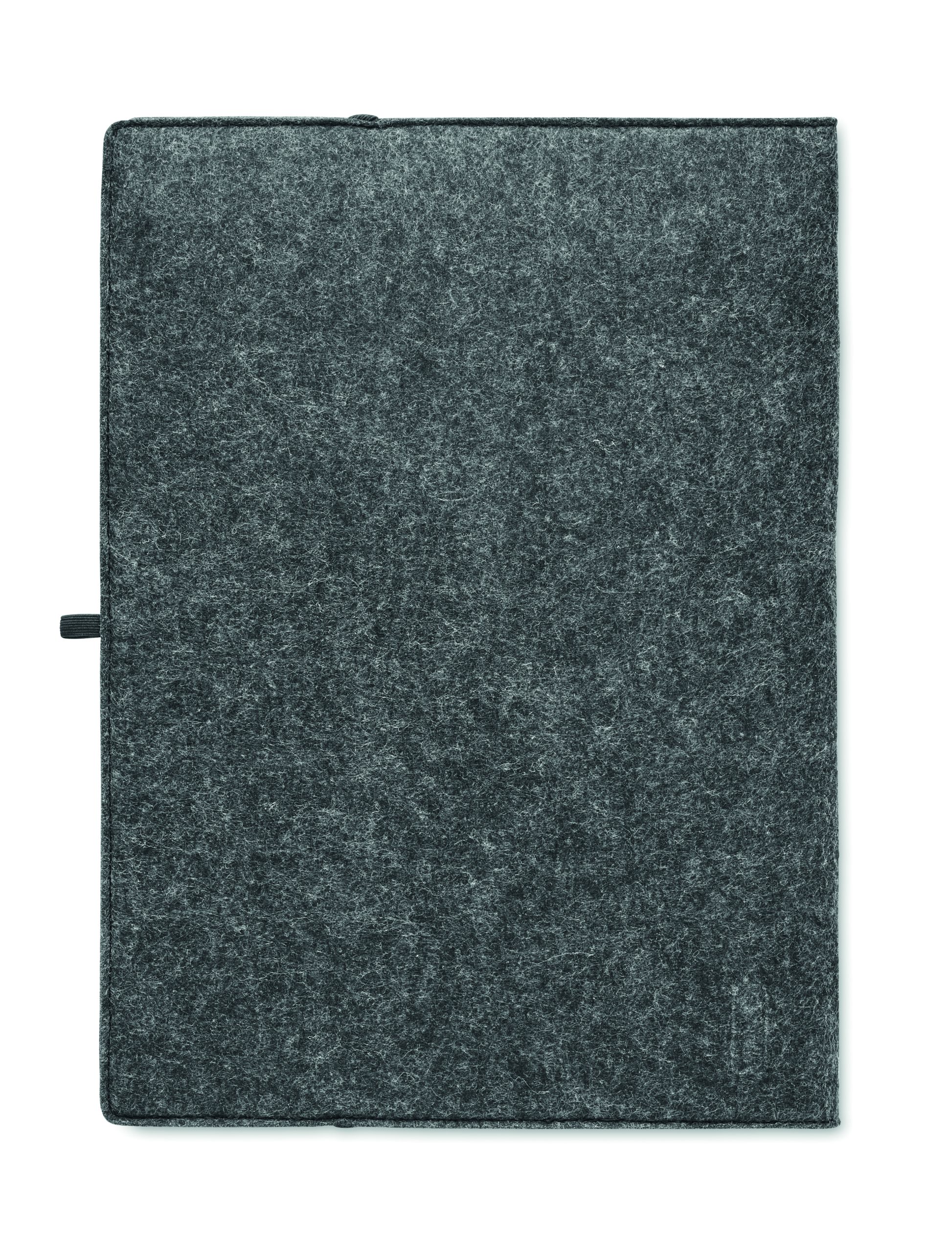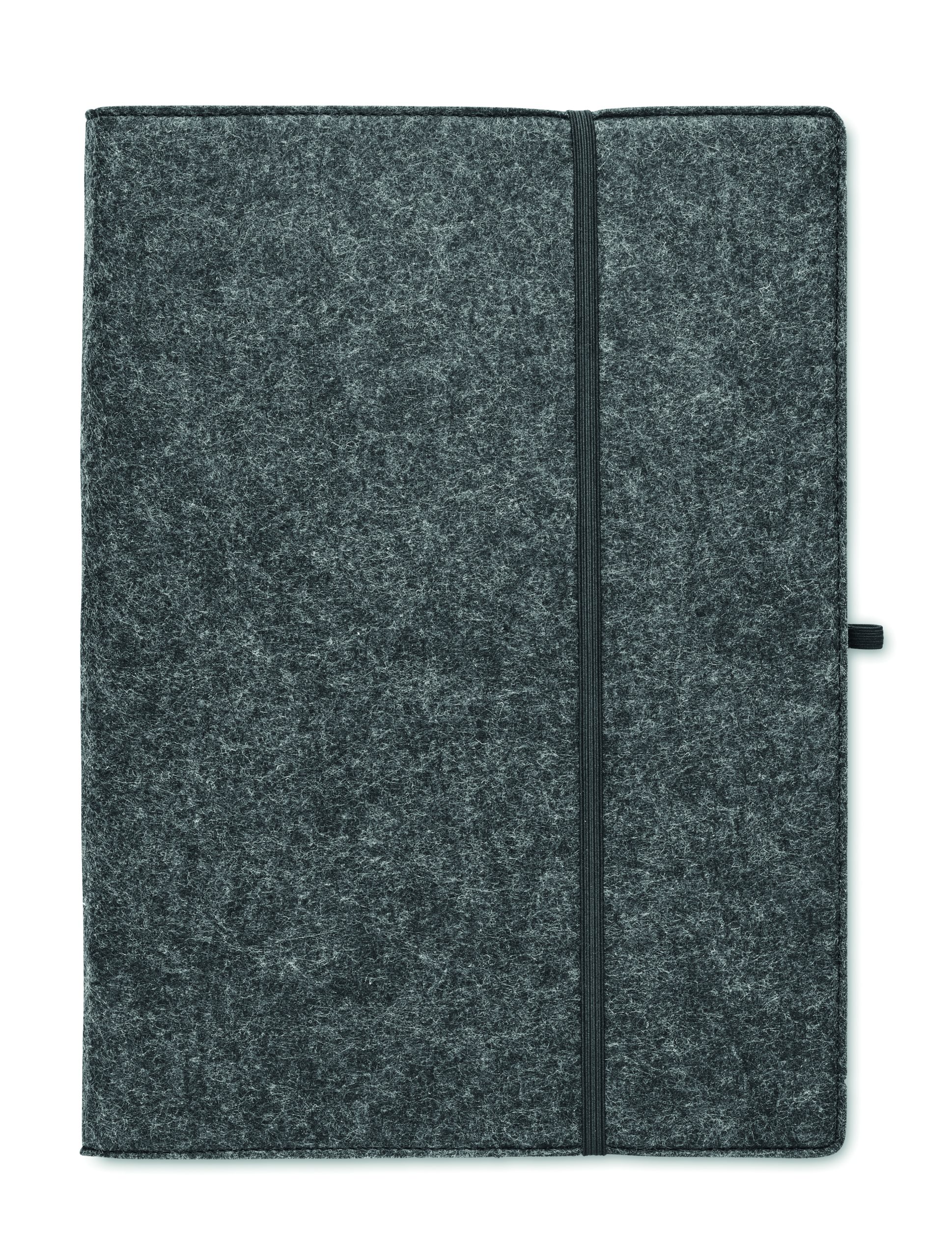 Teczka konferencyjna A4 z filcu RPET. Notatnik na 100 kartek w linie z papieru z recyklingu z elastycznym uchwytem na długopis.