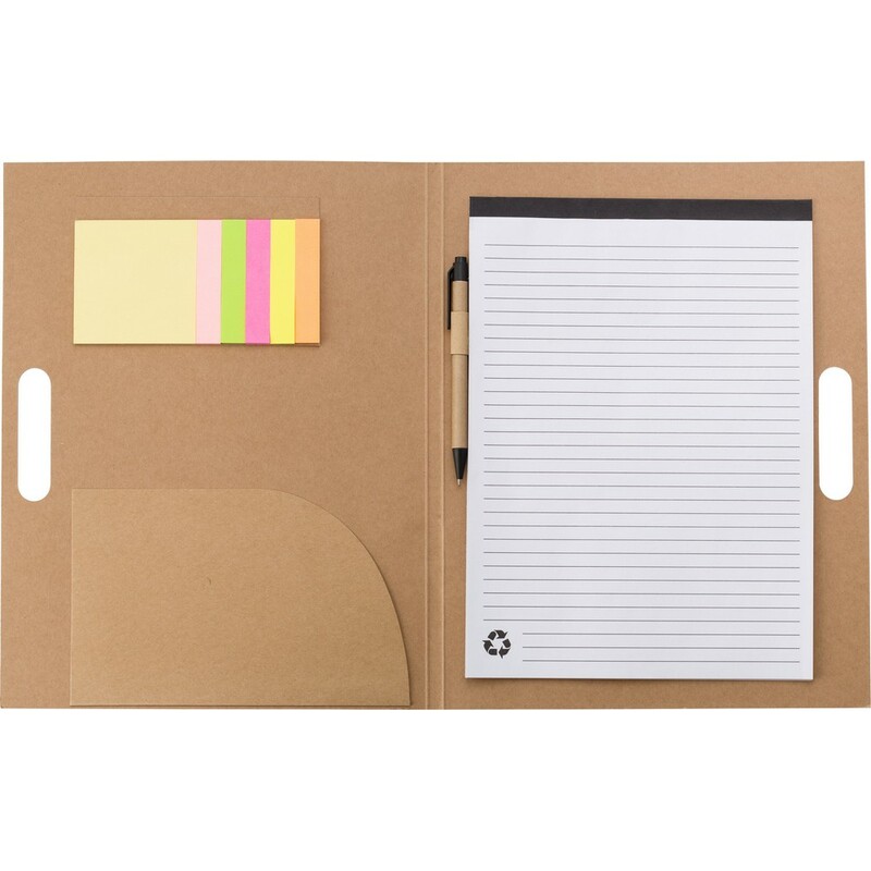 Teczka konferencyjna (ok. A4) z uchwytem, 150 karteczek samoprzylepnych, notatnik (25 kartek w linie, jednostronnie) i długopis