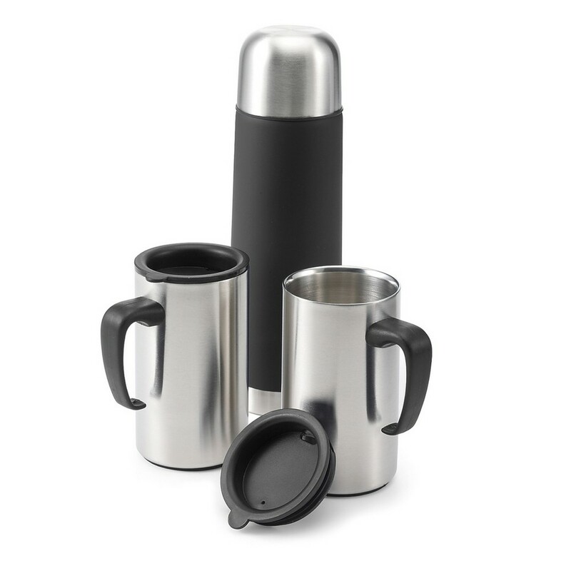 Zestaw podróżny, termos z podwójnymi ściankami 500 ml i 2 kubki 300 ml, w pudełku, utrzymuje temperaturę napojów gorących do 20 godzin +leakproof