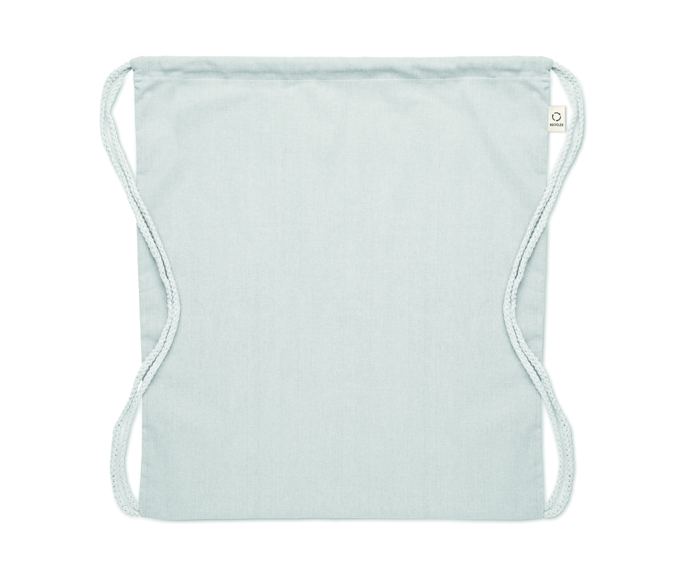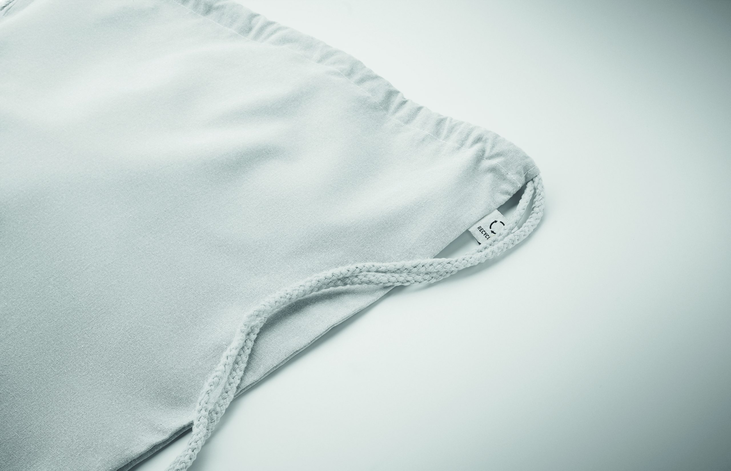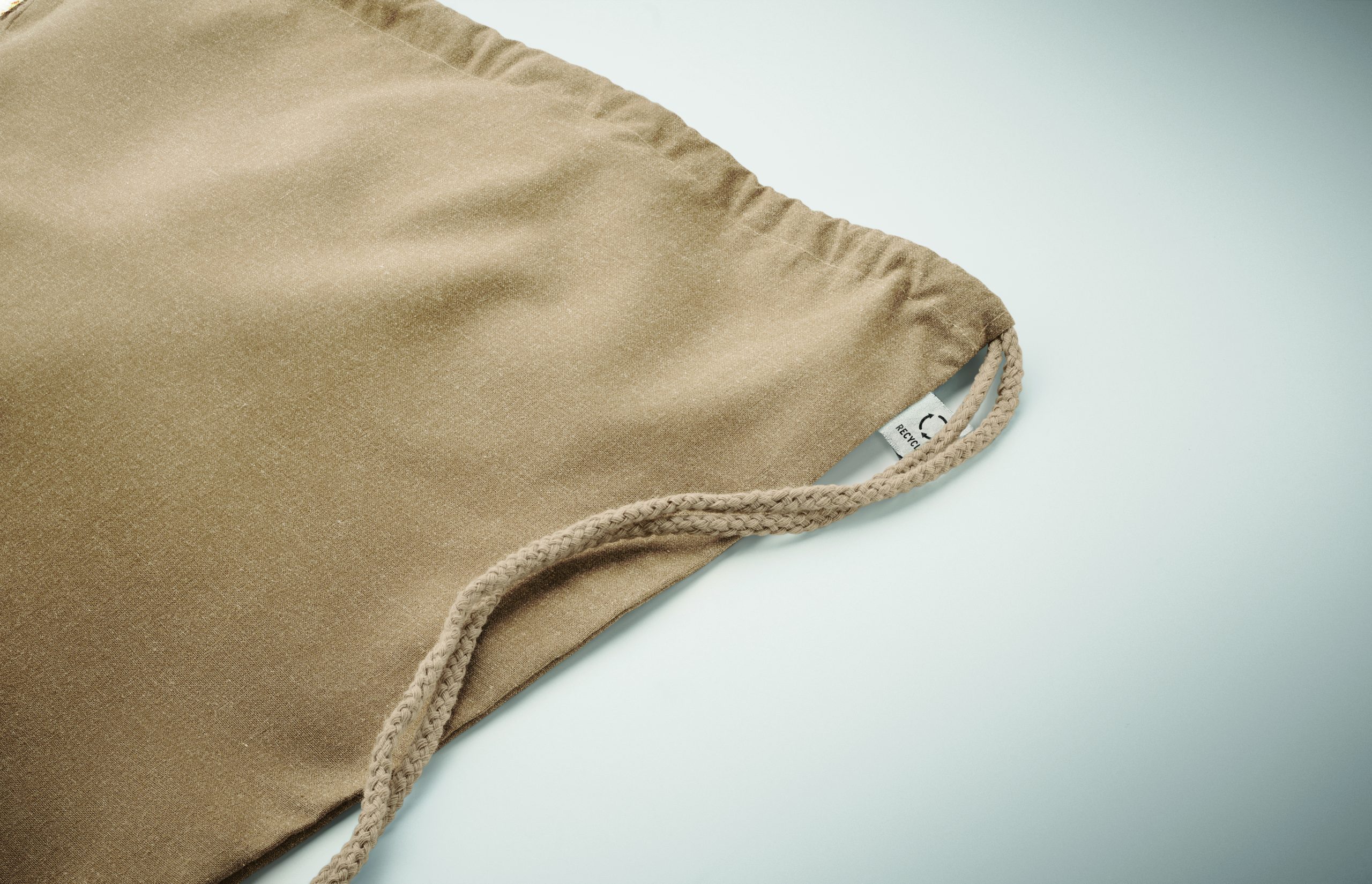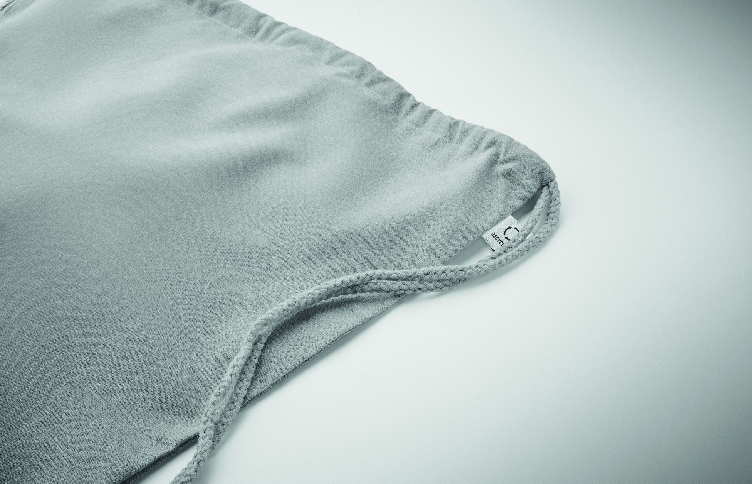 Worek ze sznurkiem wykonany z przetworzonej bawełny (70%) i RPET (30%). 140 gr/m². Ten produkt może się kurczyć po zadrukowaniu.