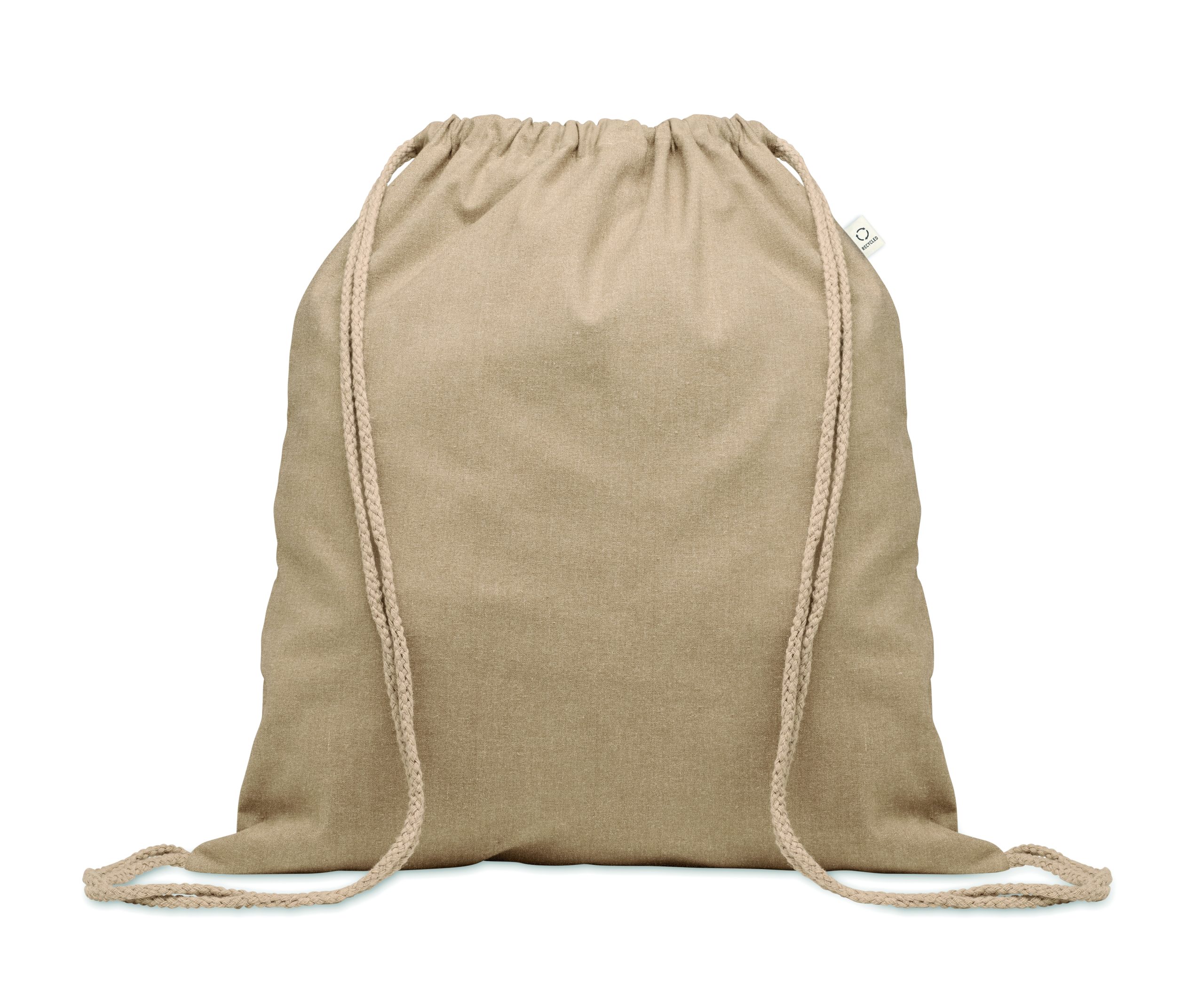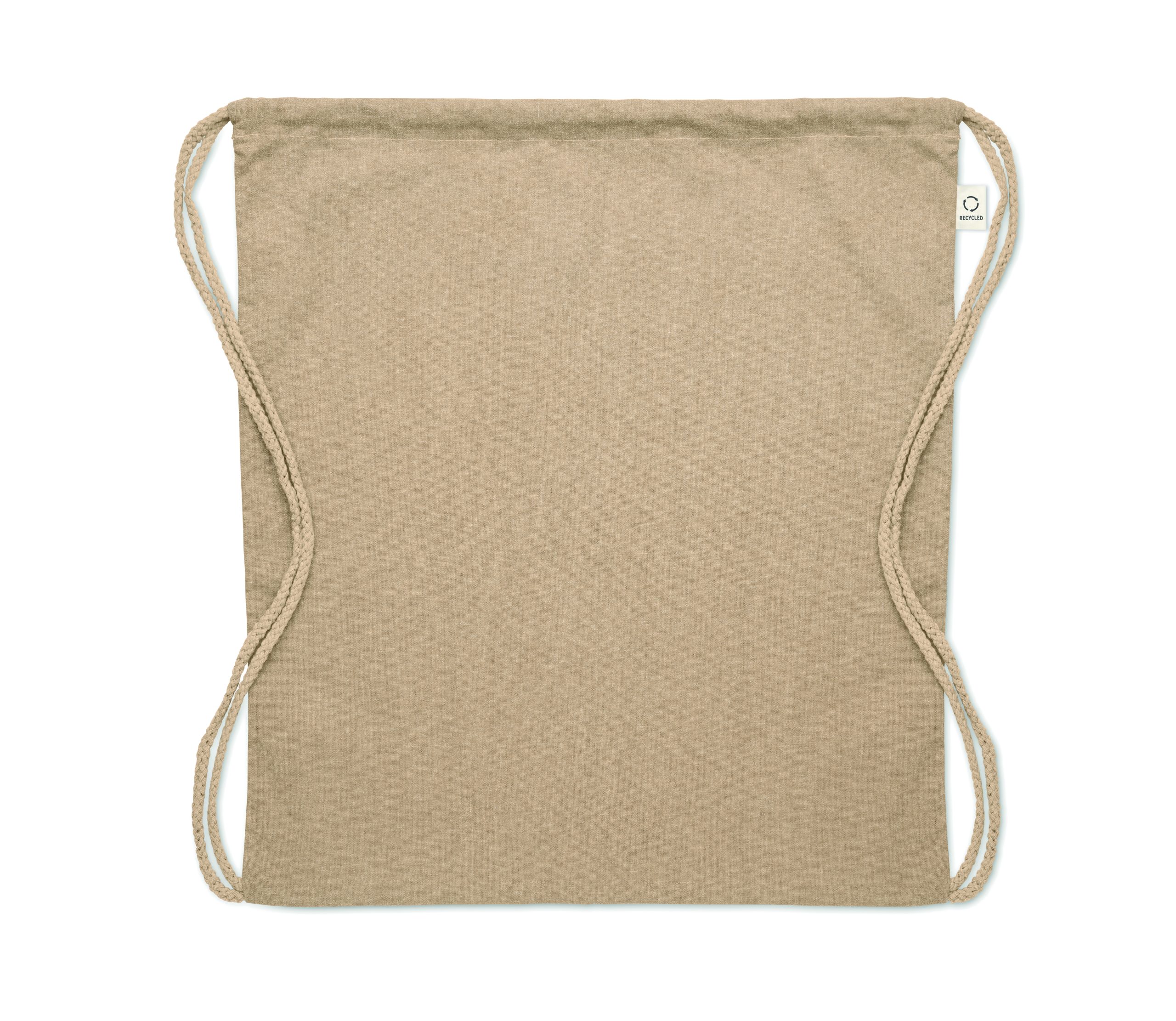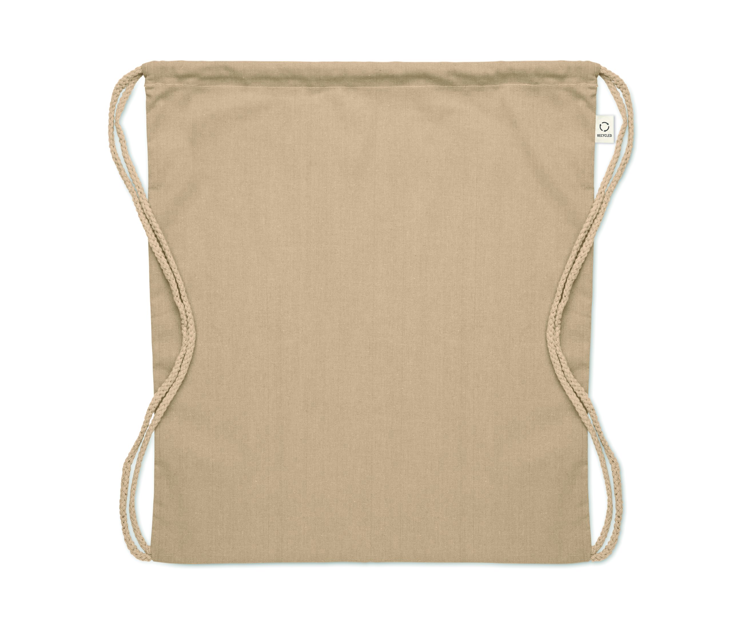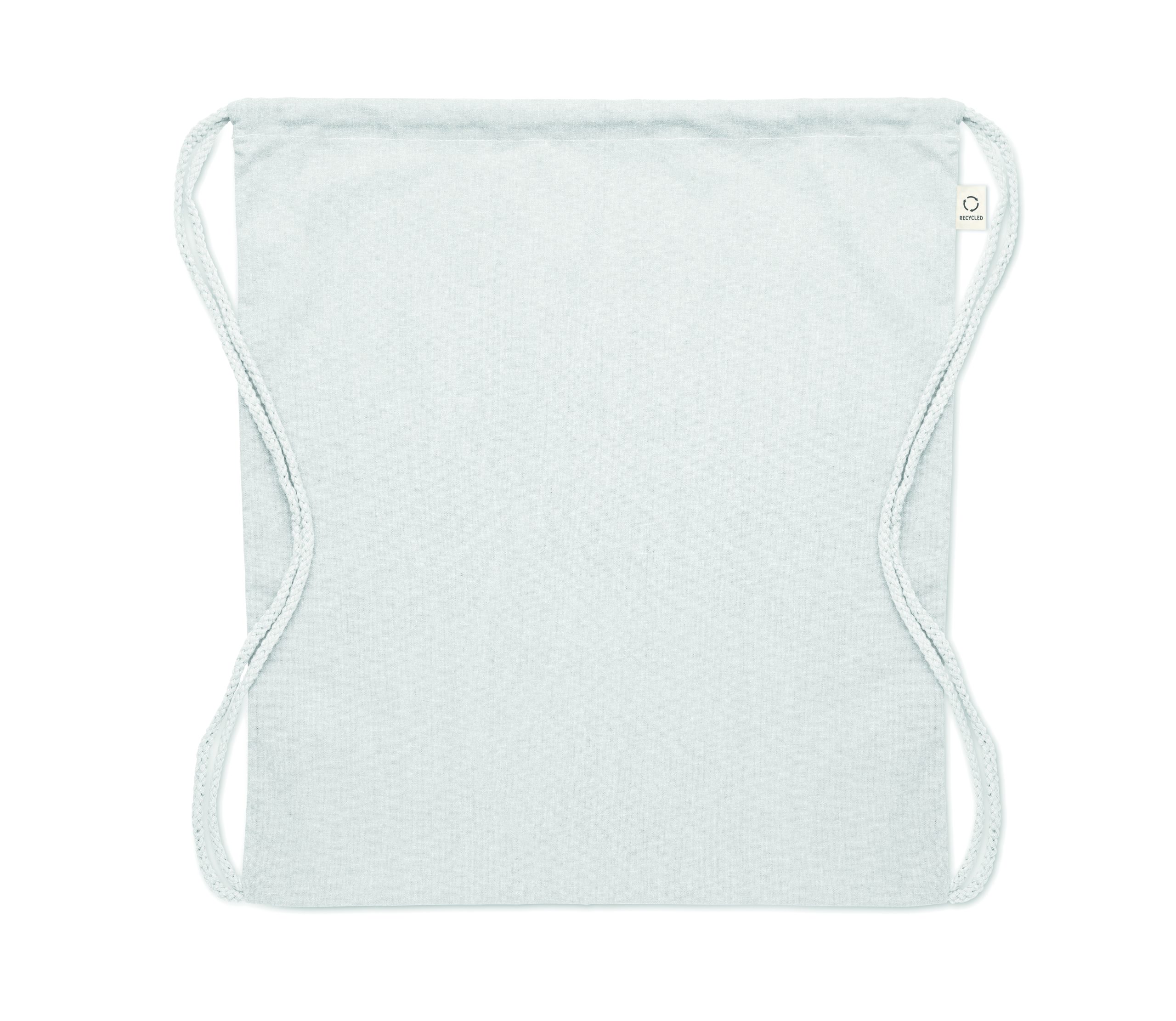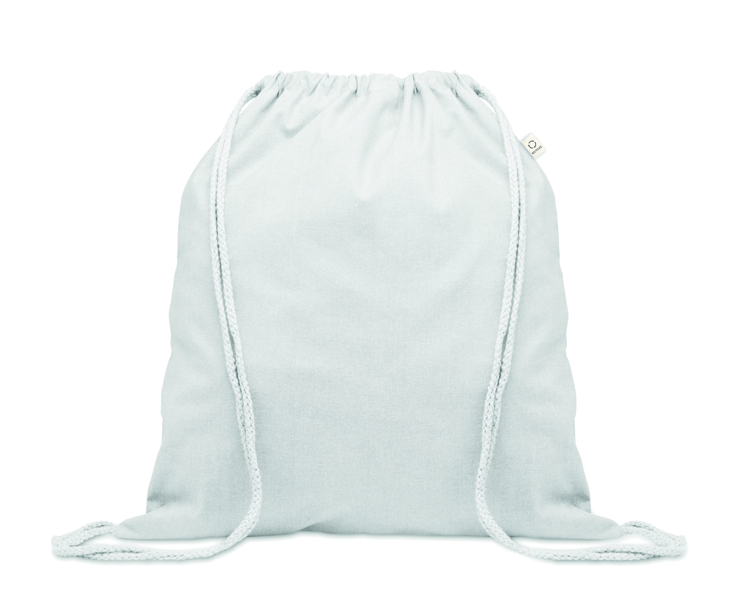 Worek ze sznurkiem wykonany z przetworzonej bawełny (70%) i RPET (30%). 140 gr/m². Ten produkt może się kurczyć po zadrukowaniu.