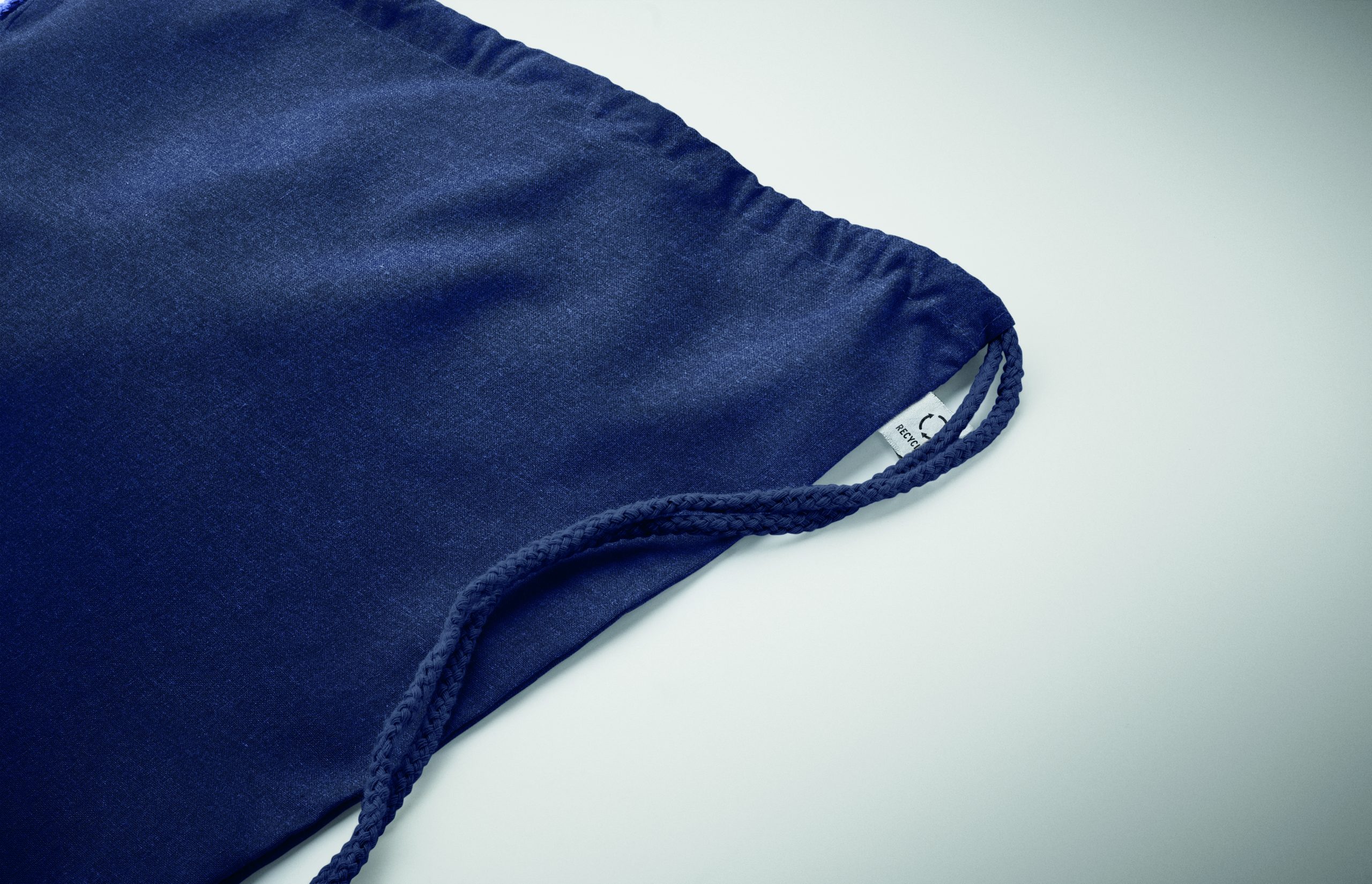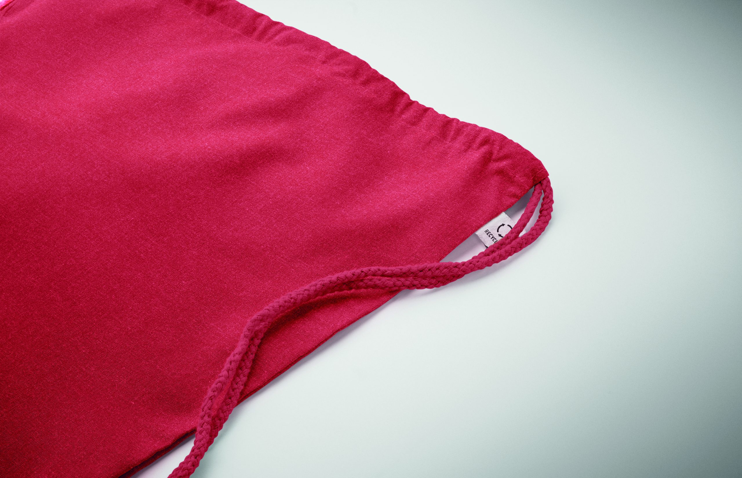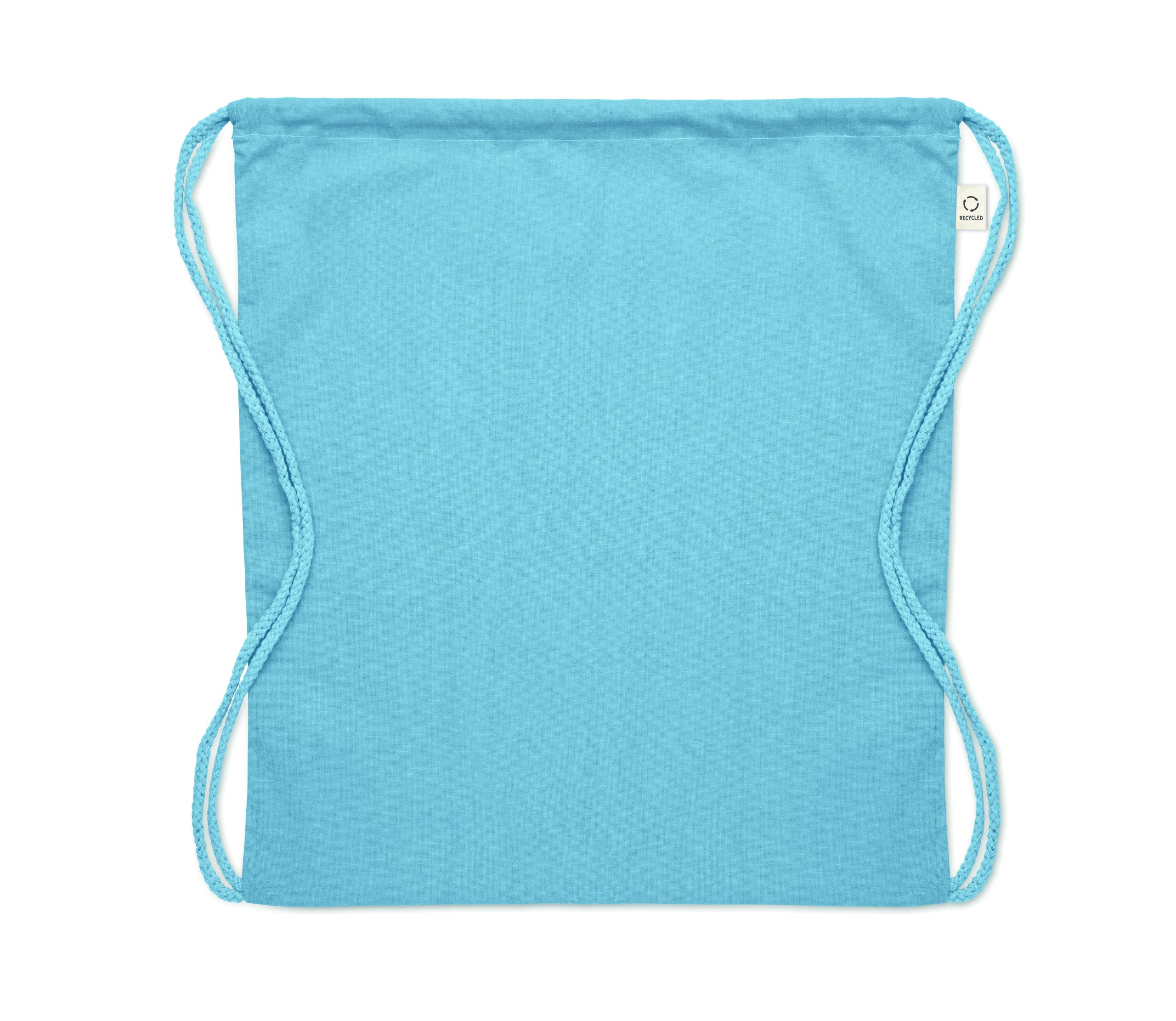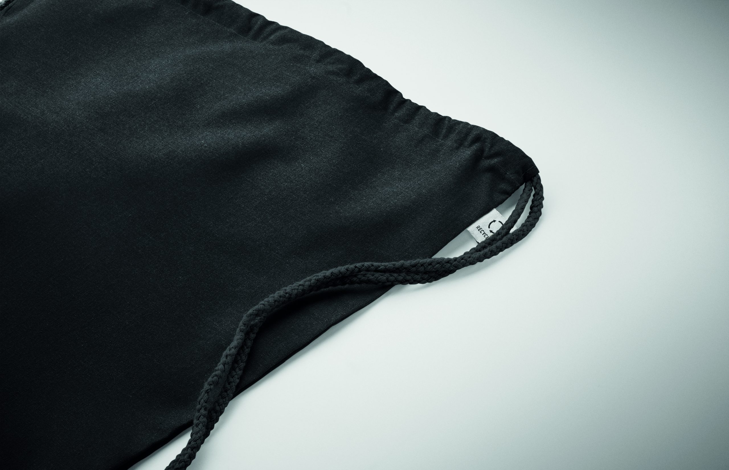 Worek ze sznurkiem wykonany z przetworzonej bawełny (70%) i RPET (30%). 140 gr/m². Ten produkt może się kurczyć po zadrukowaniu.