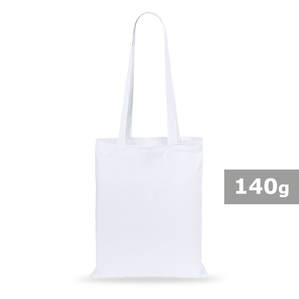 Torba na zakupy, posiada długie uchwyty umożliwiające noszenie na ramieniu, produkt wykonany z bawełny o gramaturze 140g/m²