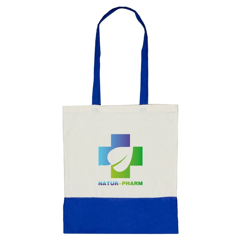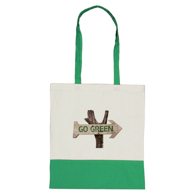 Torba na zakupy, posiada długie uchwyty umożliwiające noszenie na ramieniu, produkt wykonany z bawełny o gramaturze 140 g/m2