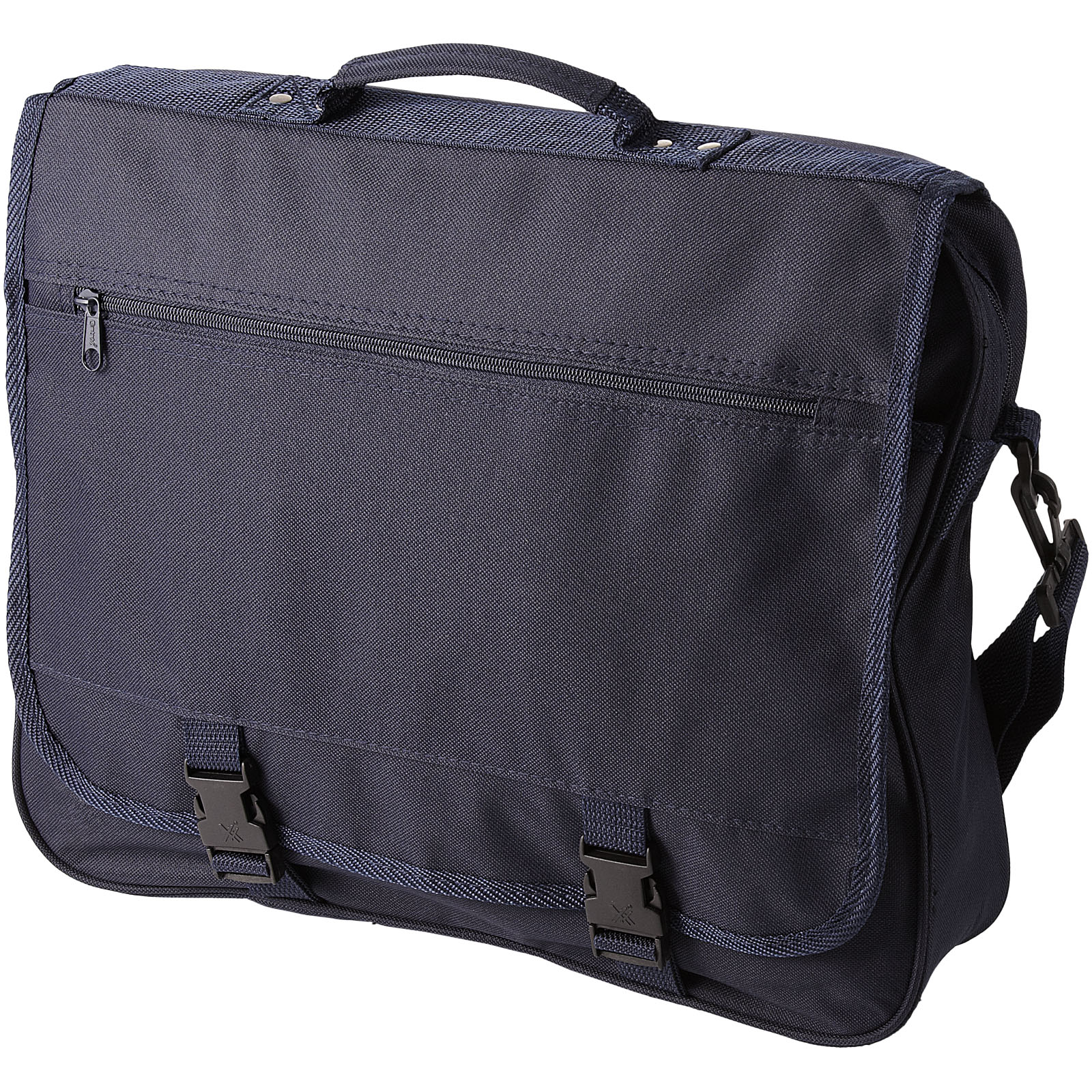 Torba wystawowa z regulowanym pasem na ramię oraz klapą zapinaną na sprzączki. Posiada przegrodę główną na zamek błyskawiczny oraz kilka otwartych kieszonek pod klapką.