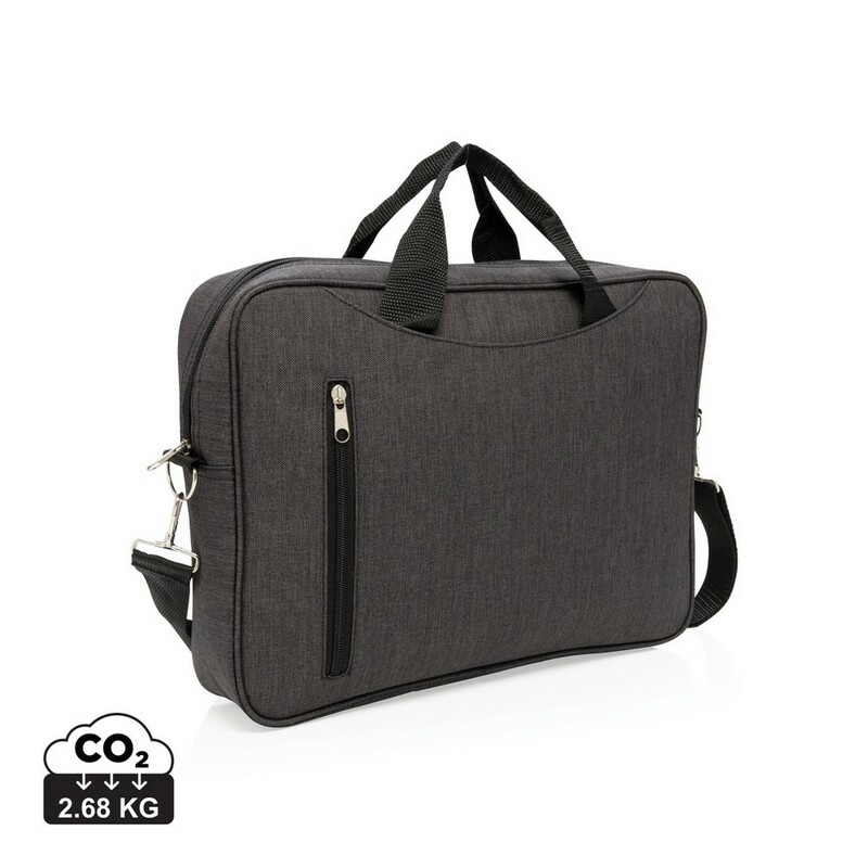 Torba na laptopa 15″, wykonana z poliestru 600D, nie zawiera PVC, ślad węglowy produktu: 2,68 kg CO2