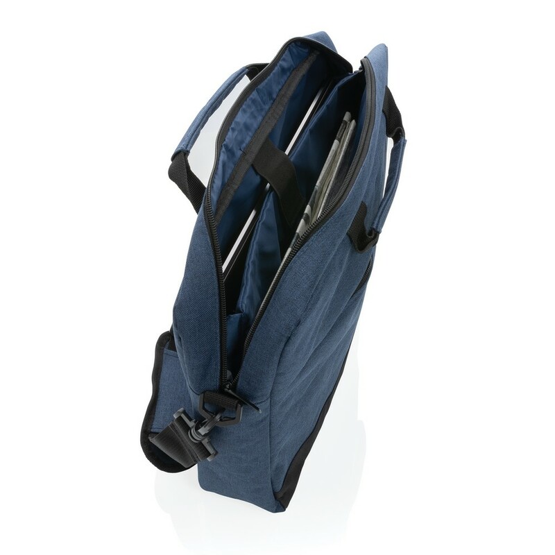 Torba na laptopa 15,6″, wykonana z poliestru 600D, główna przegroda podzielona na dwie strony, przednia kieszeń na zamek błyskawiczny, nie zawiera PVC, ślad węglowy produktu: 4,05 kg CO2