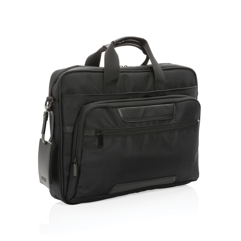 Torba na laptopa 15,6″, wyściełana przegroda główna, z przodu kieszeń zamykana na zamek, wykonana z poliestrów pochodzących z recyklingu do produkcji których zostało ponownie wykorzystanych 36,66 butelek PET o pojemności 0,5 l, dzięki zastosowaniu technologii śledzącej AWARE™ wykorzystane włókna są identyfikowalne z pochodzenia, 2% wpływów z każdego sprzedanego produktu jest przekazywane na rzecz Water.org