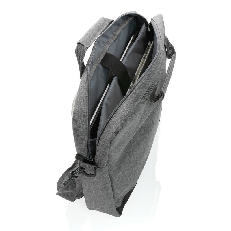 Torba na laptopa 15,6″, wykonana z poliestru 600D, główna przegroda podzielona na dwie strony, przednia kieszeń na zamek błyskawiczny, nie zawiera PVC, ślad węglowy produktu: 4,05 kg CO2