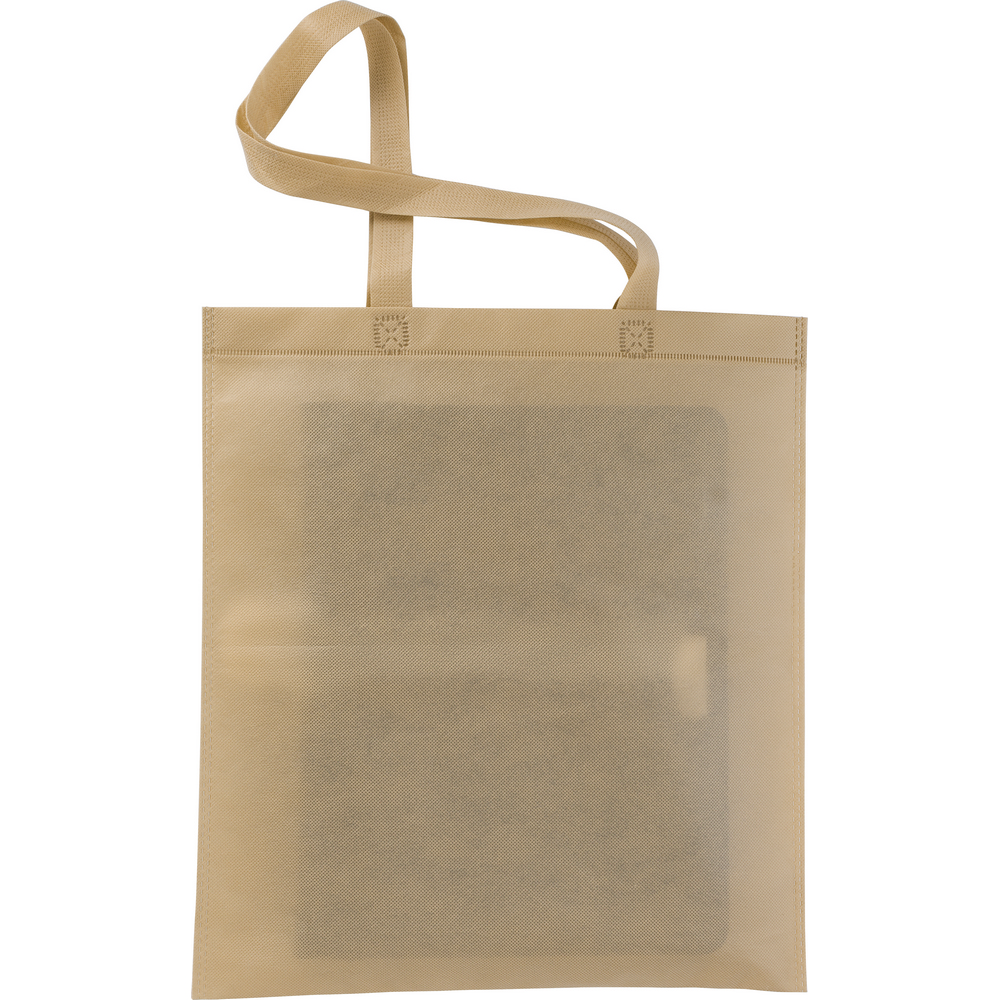 Torba na zakupy, posiada długie uchwyty umożliwiające noszenie na ramieniu, możliwość nadrukowania dużego i widocznego z daleka logotypu, z materiału non-woven o gramaturze 80 g/m2