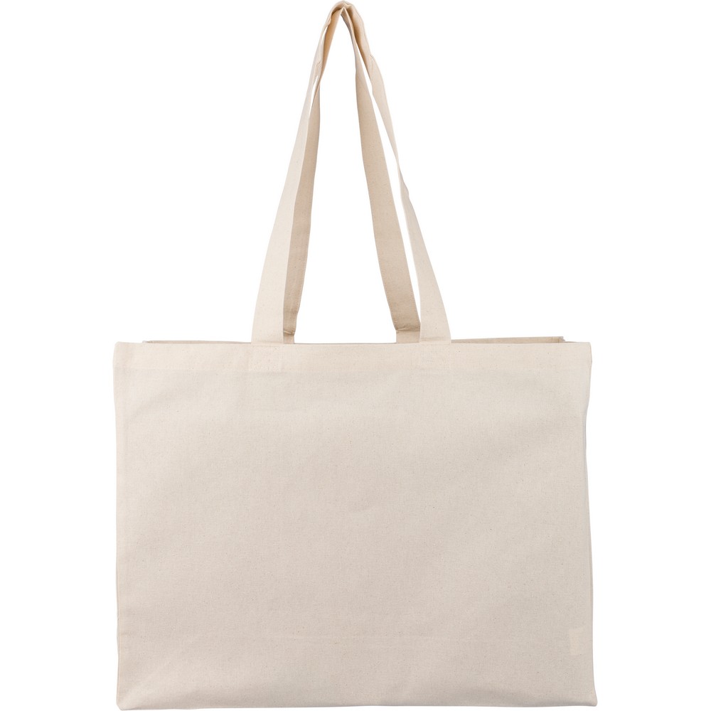 Torba na zakupy 180 g/m² o pojemności 21 litrów, posiada długie uchwyty umożliwiające noszenie na ramieniu (3 x 67 cm), ikona OEKO-TEX na metce, produkt wykonany z bawełny naturalnej