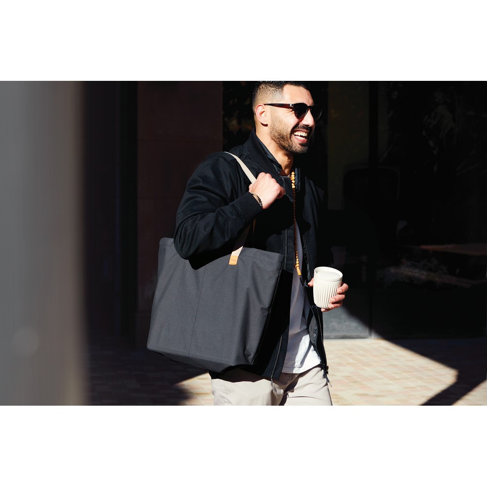 Torba na zakupy, dwie wewnętrzne kieszonki na napoje, wewnętrzna kieszeń, długie uchwyty pozwalają nosić worek na ramieniu, stabilna konstrukcja ułatwia położenie torby w pionie