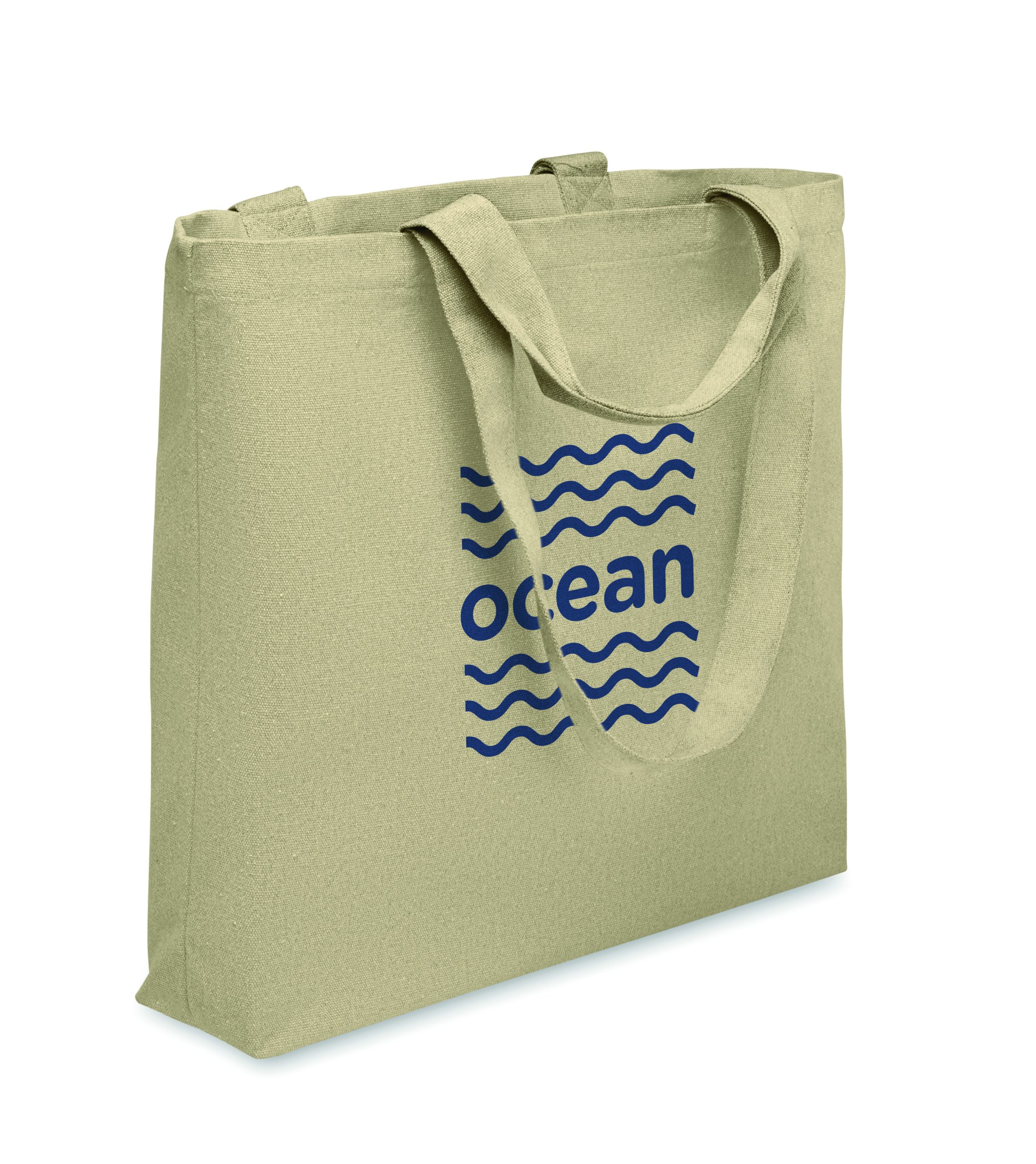 Torba na zakupy i na plażę wykonana z materiałów pochodzących z recyklingu (60% bawełna z recyklingu, 40% poliester z recyklingu) z krótkimi i długimi uchwytami. 320 gr/m².