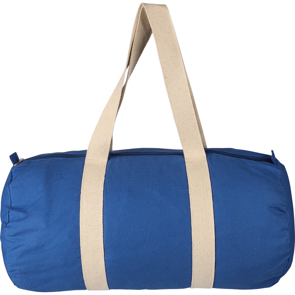 Torba podróżna 180 g/m², posiada długie uchwyty umożliwiające noszenie na ramieniu (5 x 60 cm), ikona OEKO-TEX na metce, produkt wykonany z farbowanej bawełny