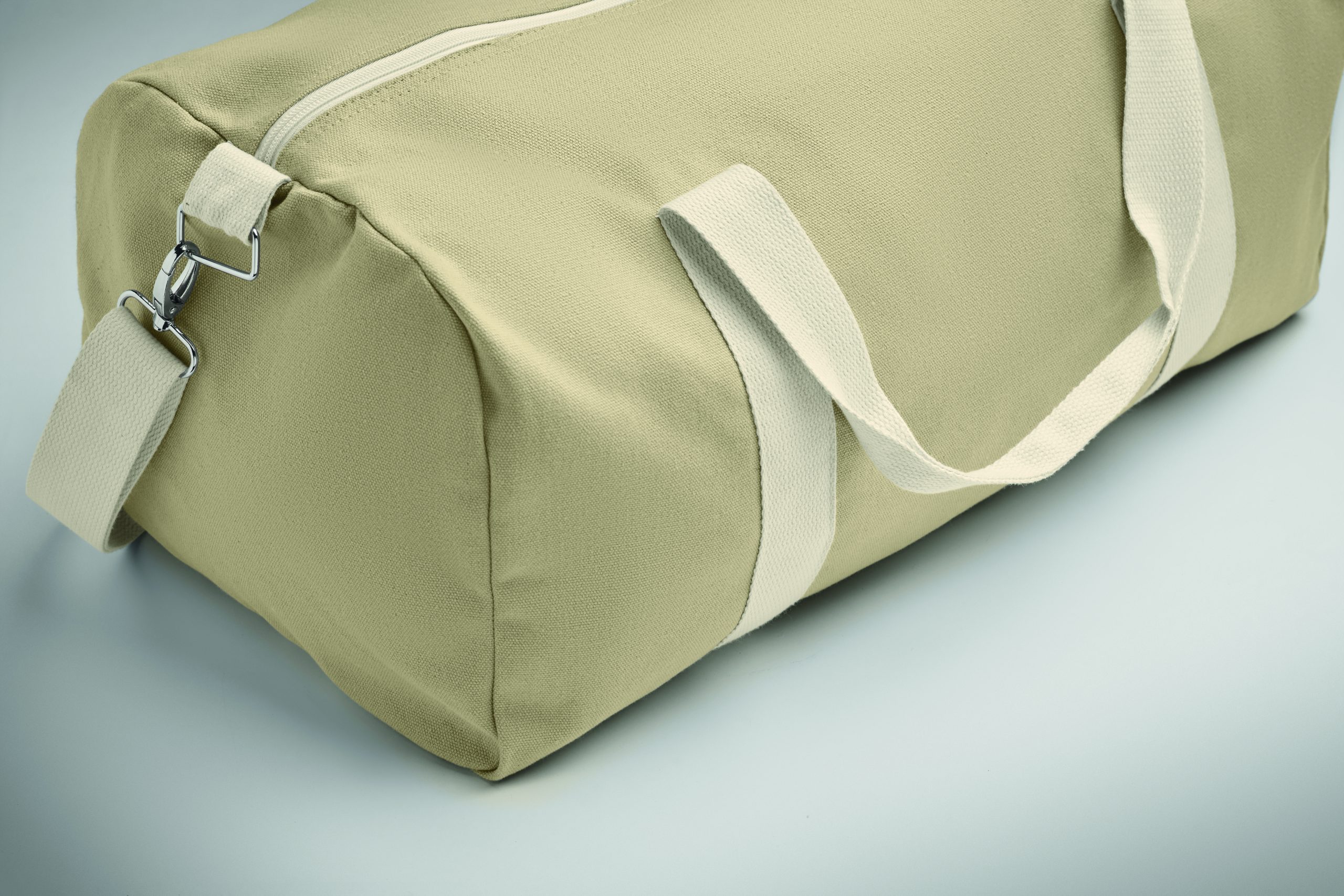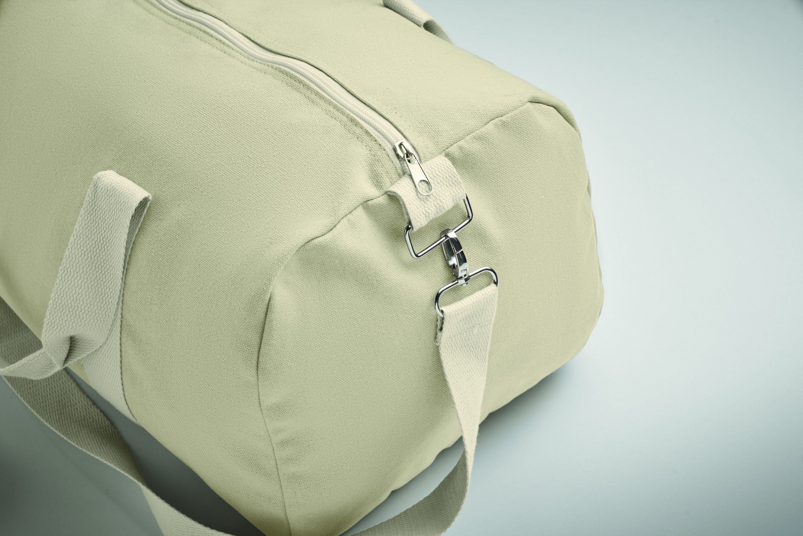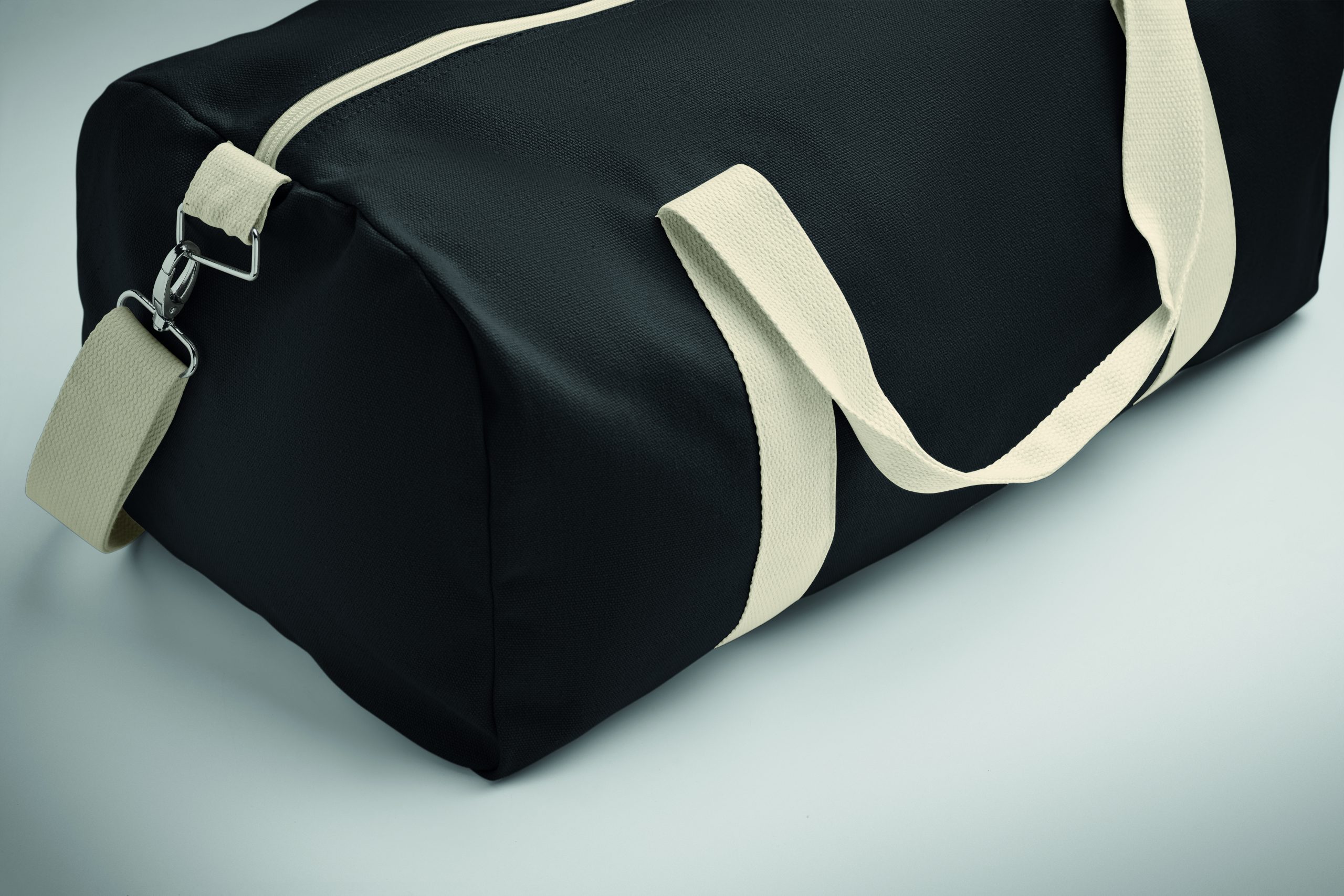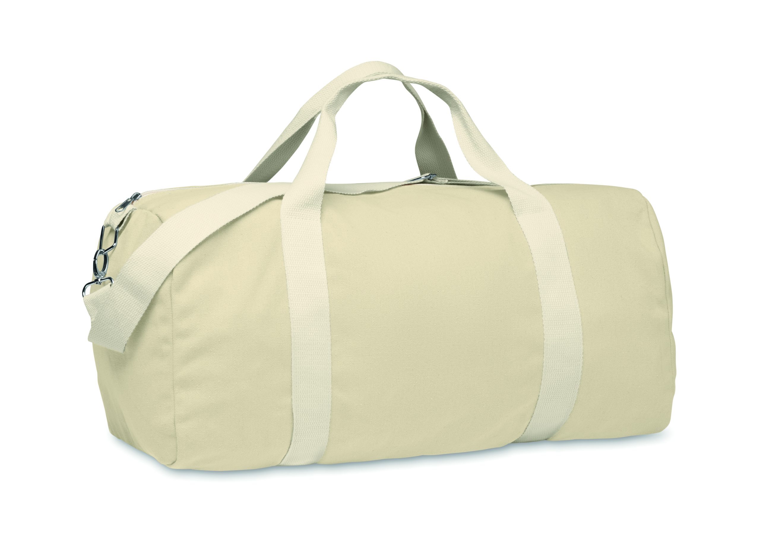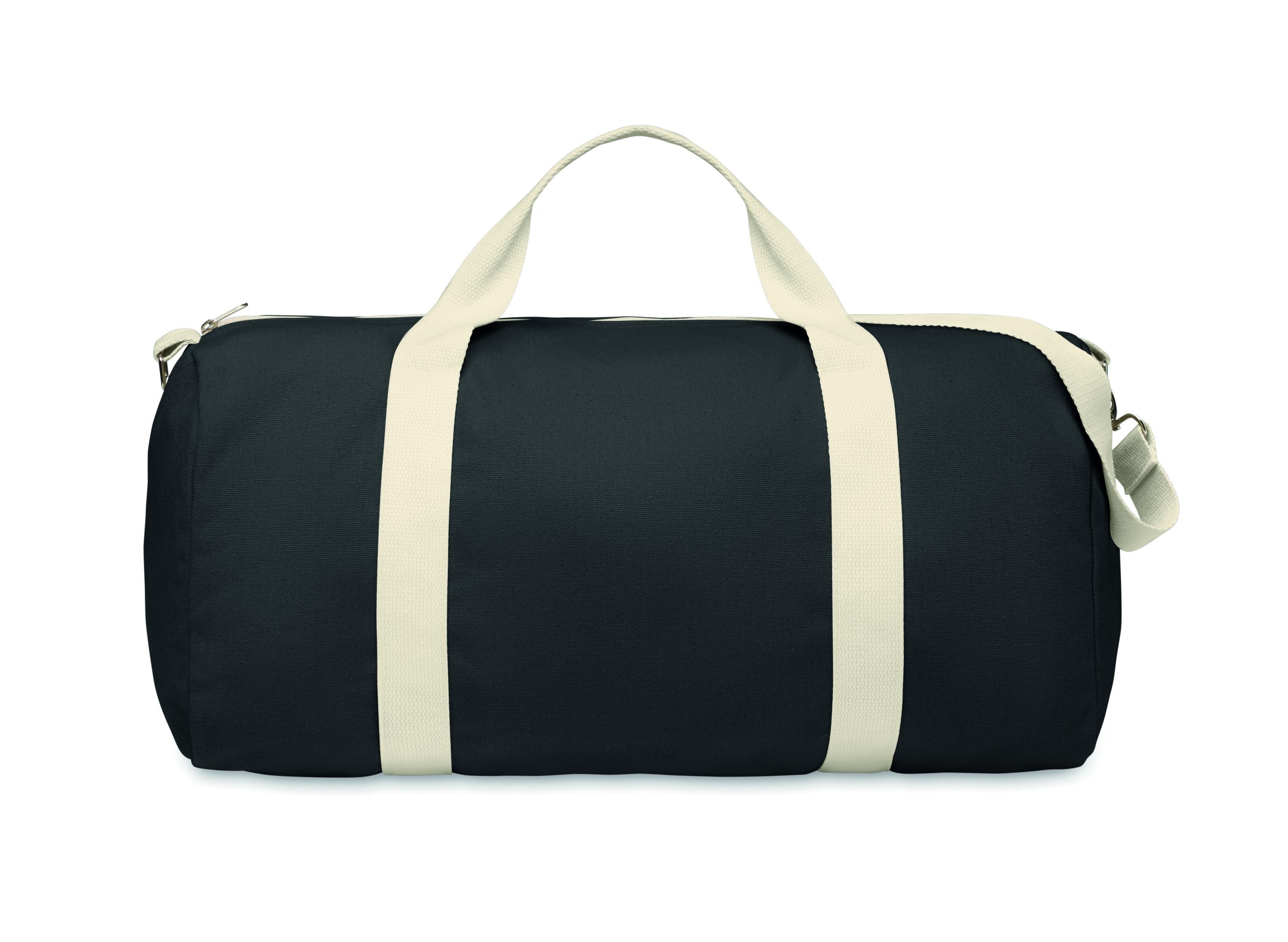 Torba na ramię wykonana z materiałów pochodzących z recyklingu (60% bawełna z recyklingu, 40% poliester z recyklingu) o gramaturze 320 gr/m² z uchwytem z naturalnej bawełny oraz regulowanym i odpinanym paskiem na ramię.