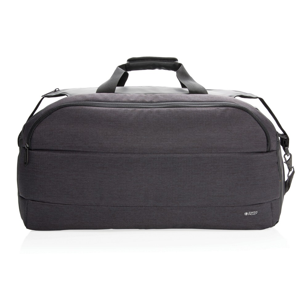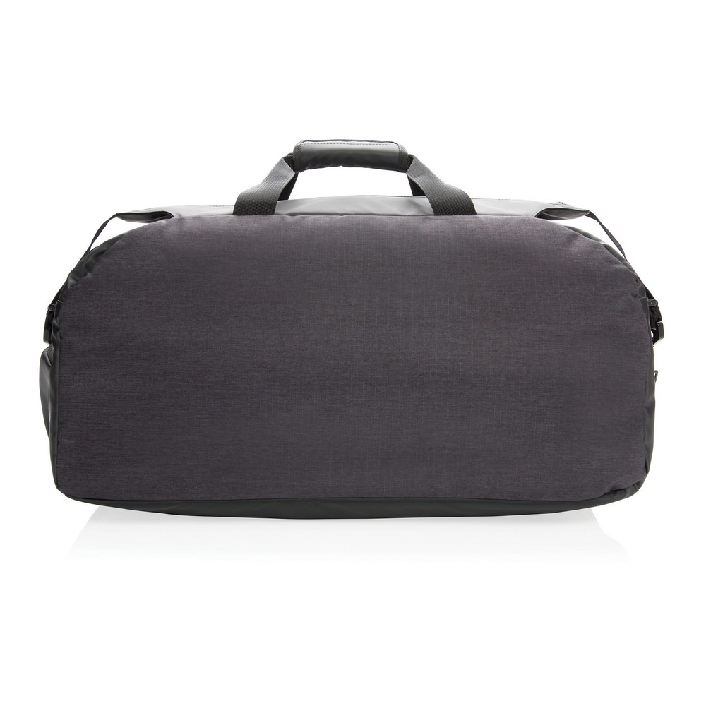 Torba sportowa, podróżna, duża przegroda główna, kieszeń przednia, zintegrowany port USB do ładowania (power-bank nie jest dołączony), dodatkowe kieszenie po bokach, posiada miejsce na karty w pasku na ramię, ślad węglowy produktu: 5,92 kg CO2