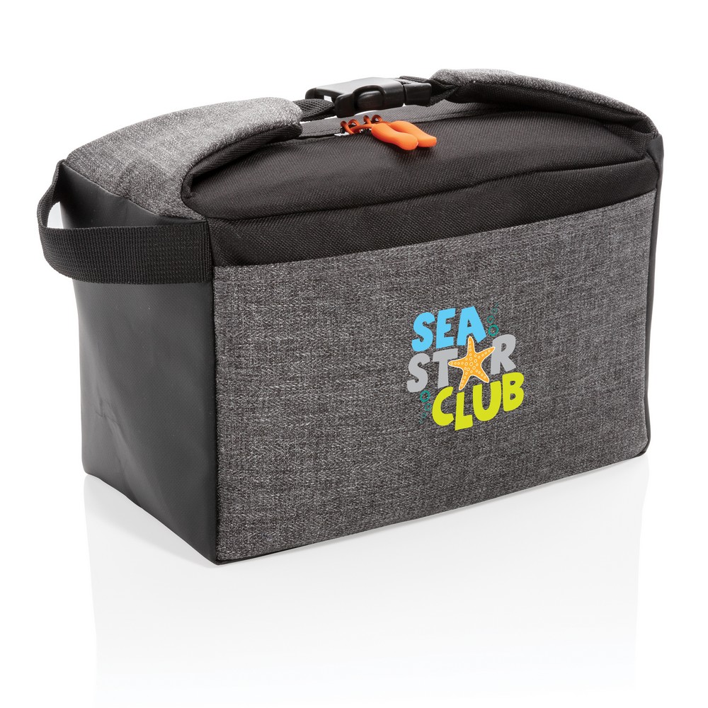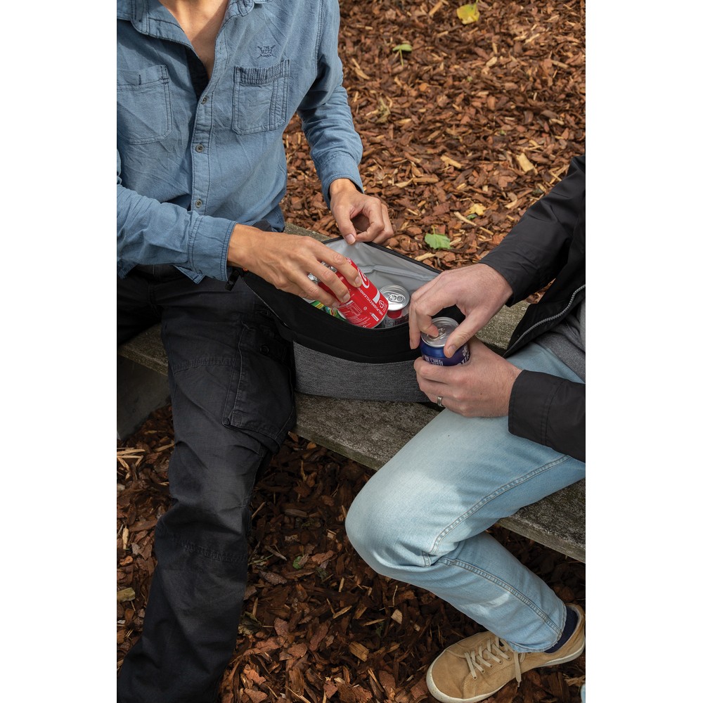 Torba termoizolacyjna z uchwytem, zamykana na klamrę, kieszeń z przodu, pasek na rękę, pojemność torby do 8 puszek 0,33 l, ślad węglowy produktu: 1,85 kg CO2