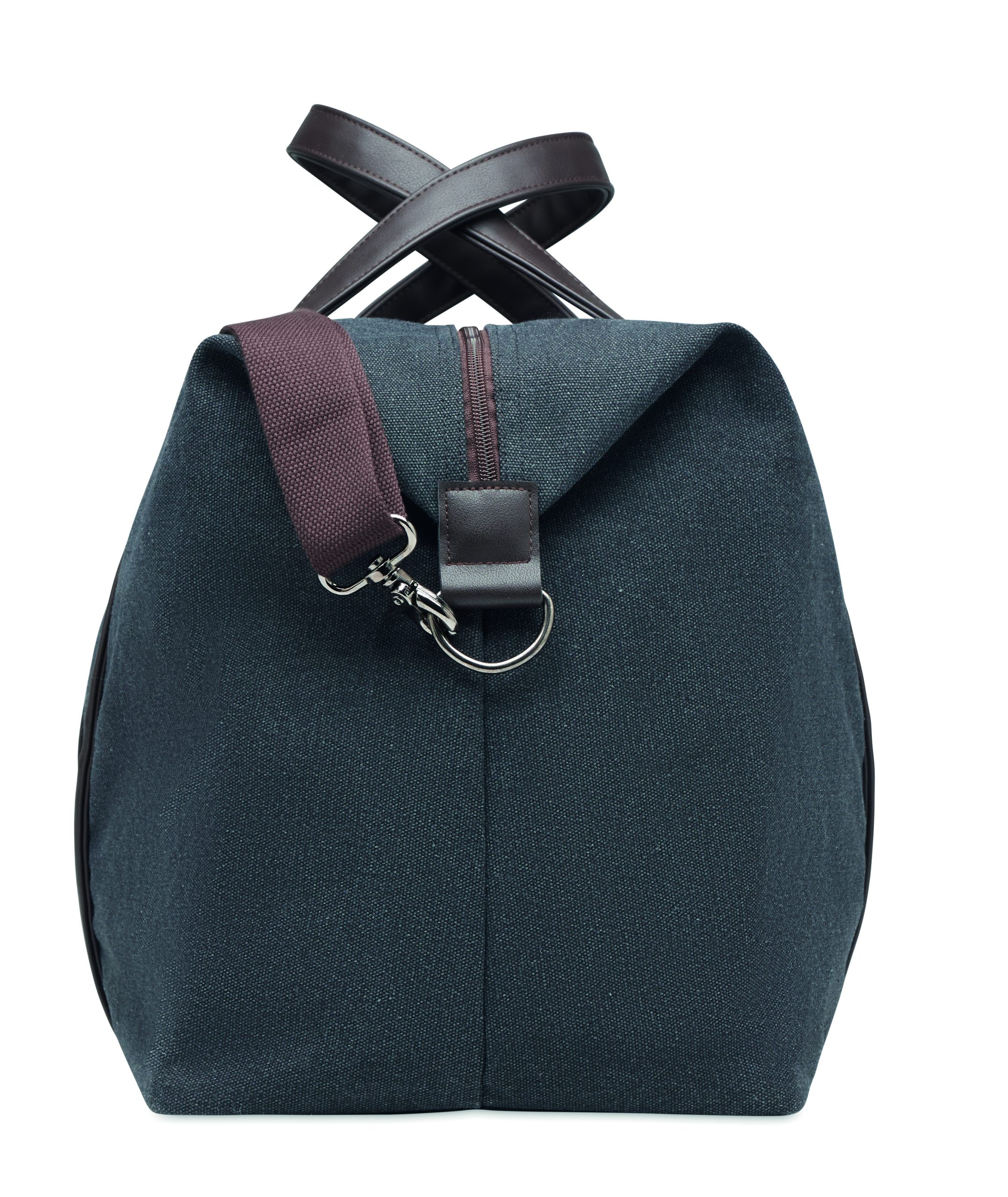 Torba weekendowa z wysokiej jakości przetartego płótna 450 gr/m² z detalami z recyklingowanego PU. Podszewka z RPET 210D. Mocne regulowane i odpinane paski w zestawie. Idealny rozmiar dla bagażu podręcznego.