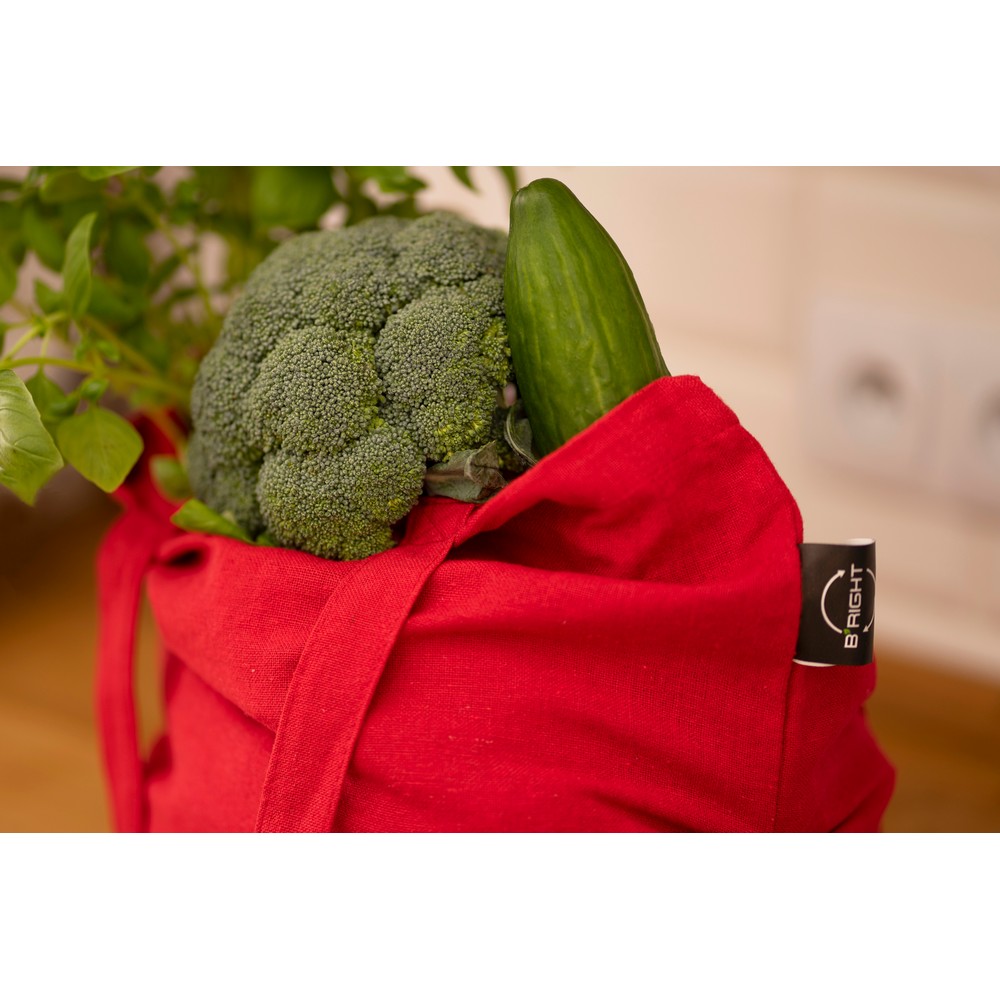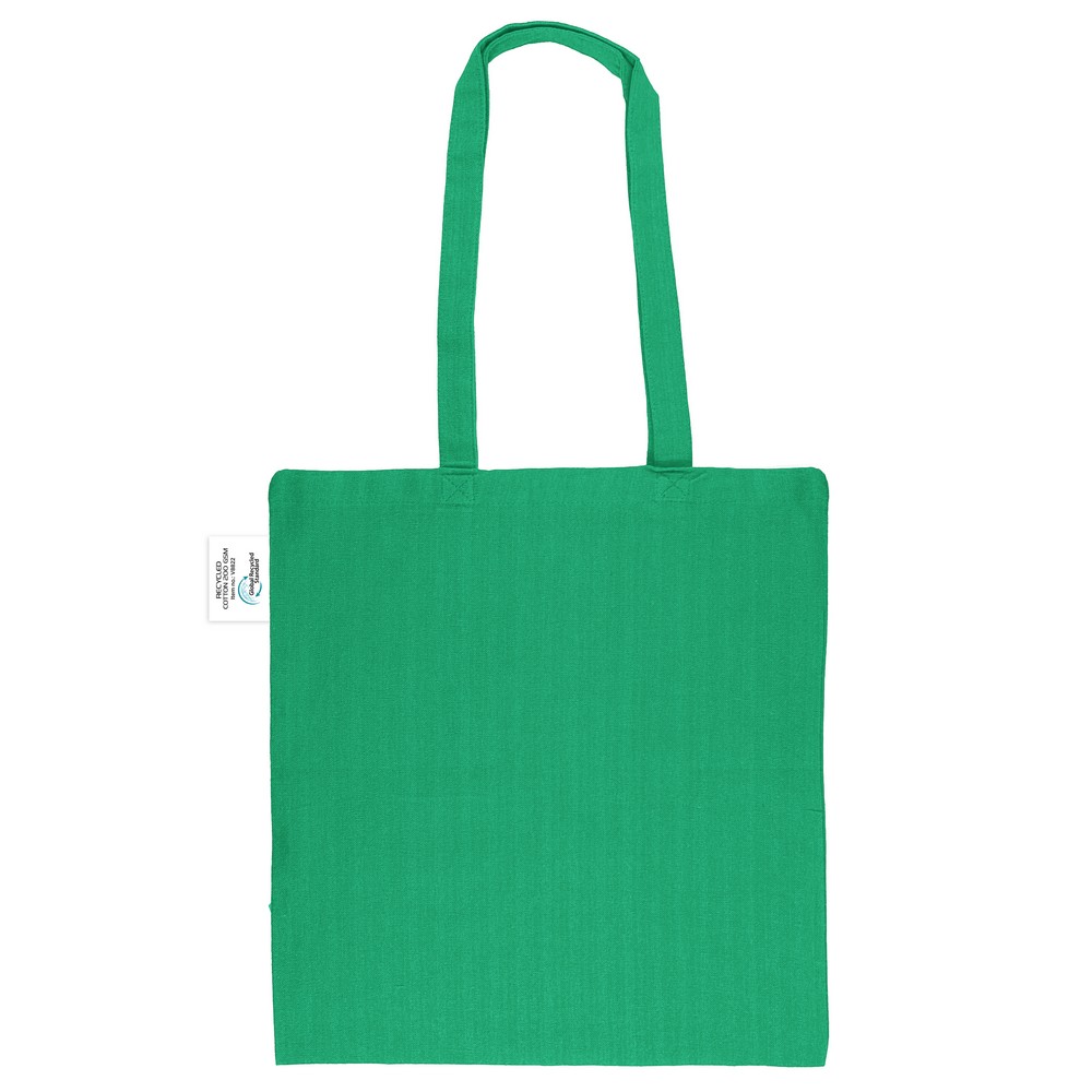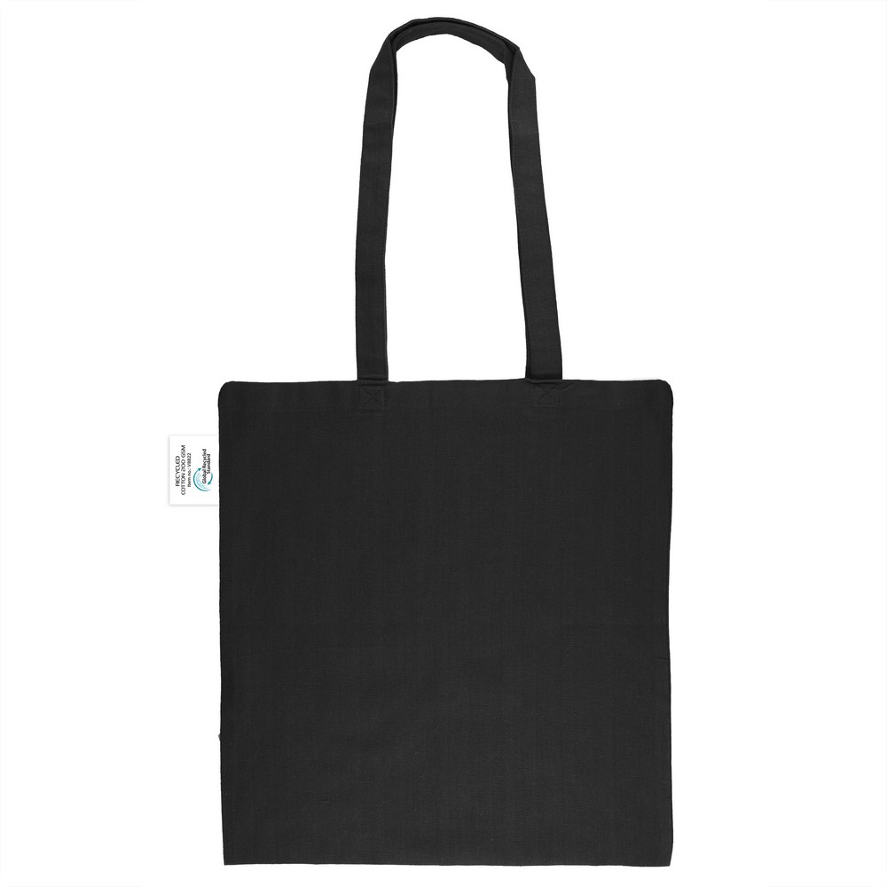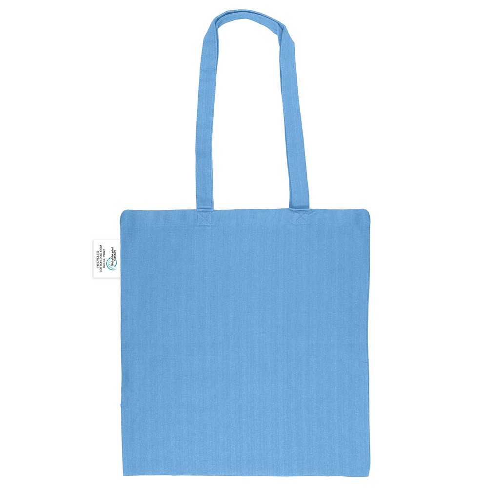 Torba na zakupy B’RIGHT, posiada długie uchwyty umożliwiające noszenie na ramieniu, produkt wykonany z bawełny z recyklingu o gramaturze 200 g/m² i poliestru z recyklingu, zgodna z certyfikatem GRS (Global RecycIed Standard)