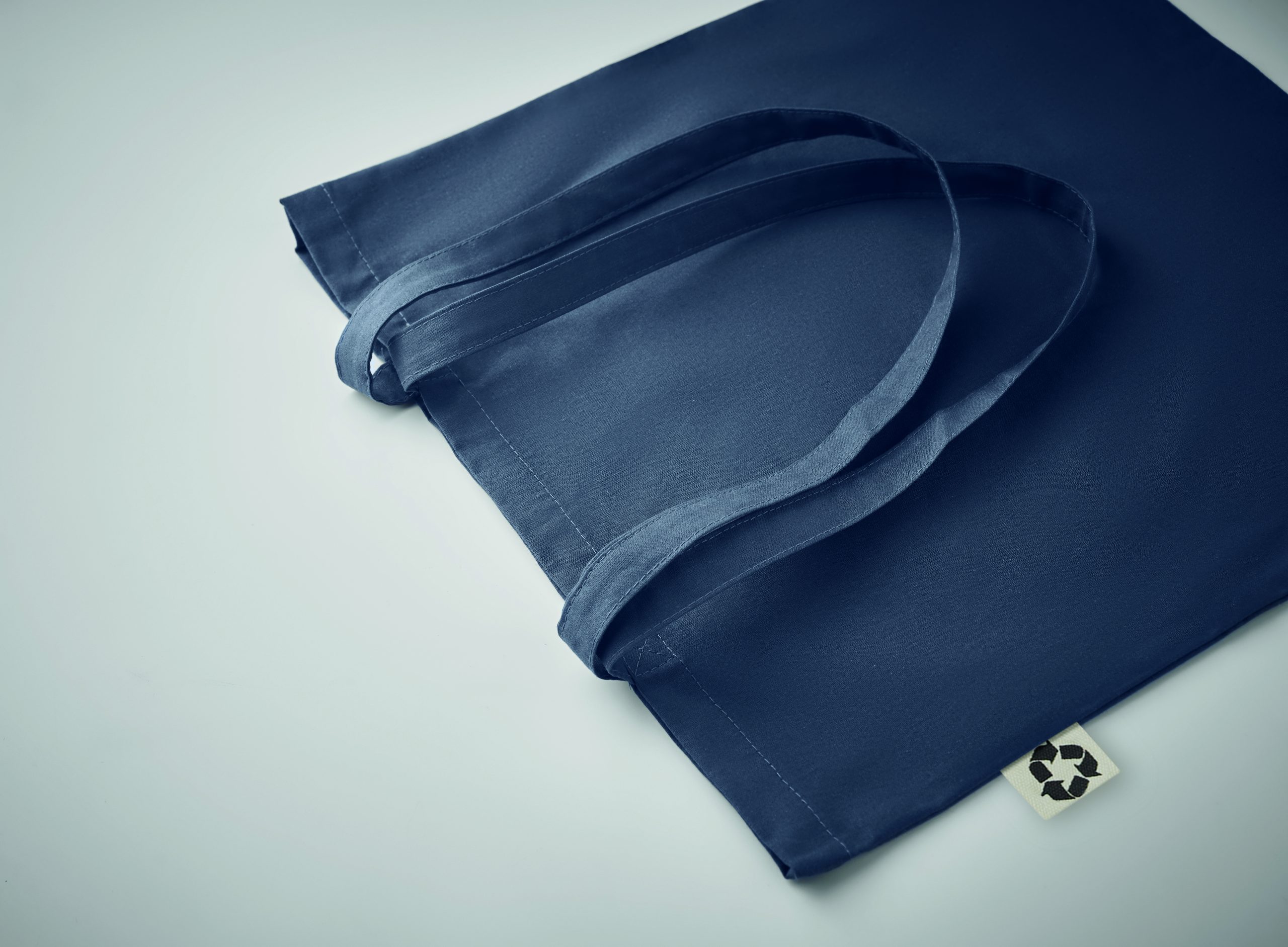 Torba na zakupy z bawełny (65% bawełny pochodzącej z recyklingu, 35% zwykłej bawełny) z długimi uchwytami. 140 gr/m².