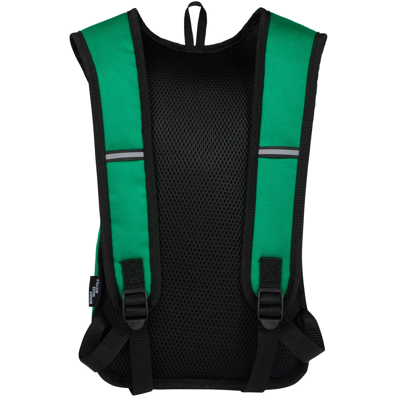 Wykonany w 100% z materiału z certyfikatem GRS pochodzącego z recyklingu i hydrofobowego, plecak Trails ma jedną przednią kieszeń zapinaną na zamek i jedną główną komorę zapinaną na zamek i jest kompatybilny z pęcherzem wodnym przeznaczonym do konsumpcji. Odblaskowe paski zapewniają widoczność, a siatkowy tył zapewnia wygodę, dzięki czemu jest doskonałym wyborem do uprawiania aktywności na świeżym powietrzu.