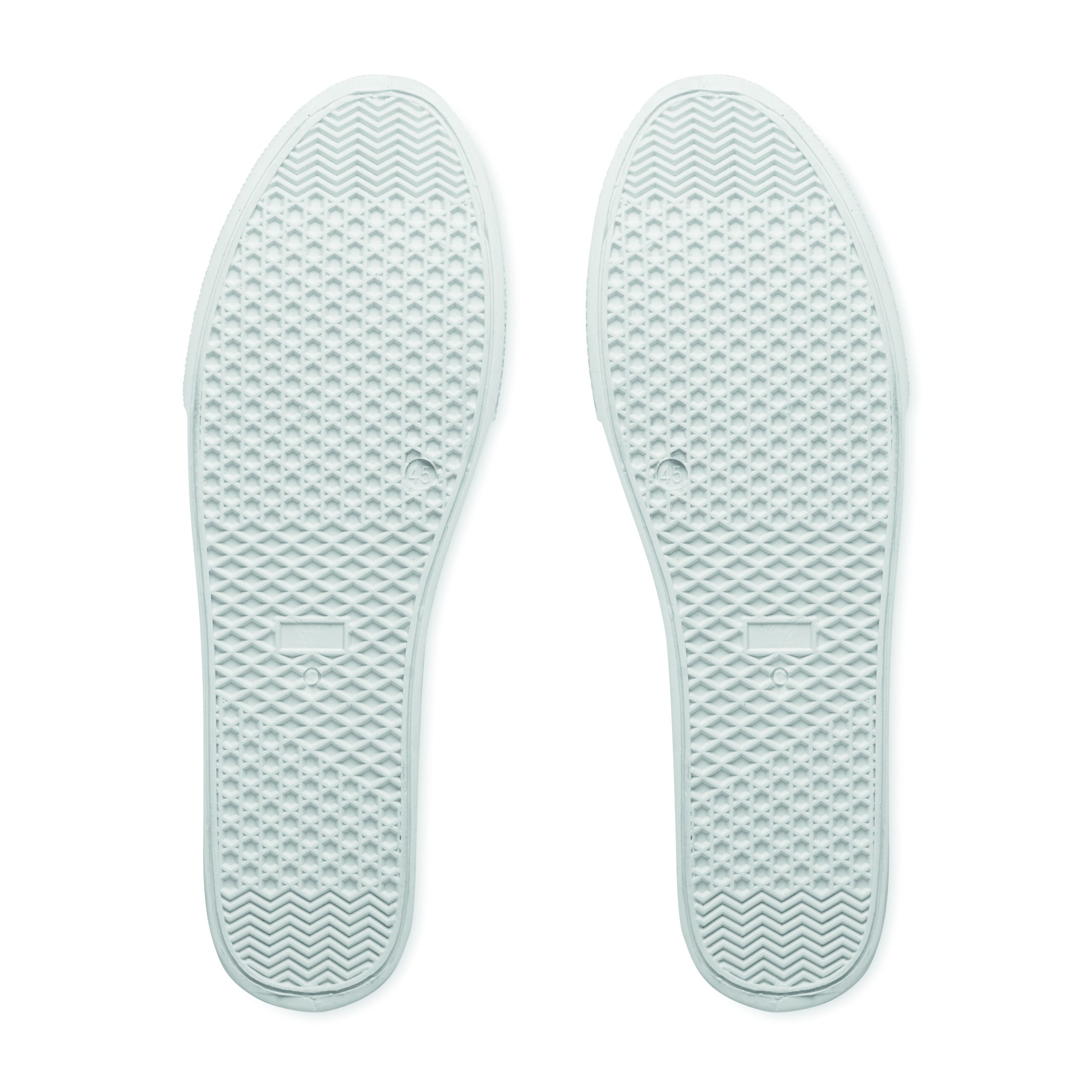 Lekkie trampki z PU z gumową podeszwą zewnętrzną i poliestrowymi sznurowadłami. Rozmiar: 47. Zapakowane w białe pudełku na buty. Trampki są dostarczane ze sznurowadłami nawleczonymi tylko na 2 pierwsze oczka.