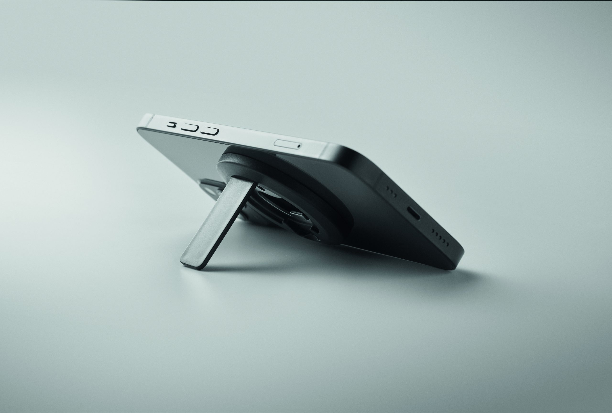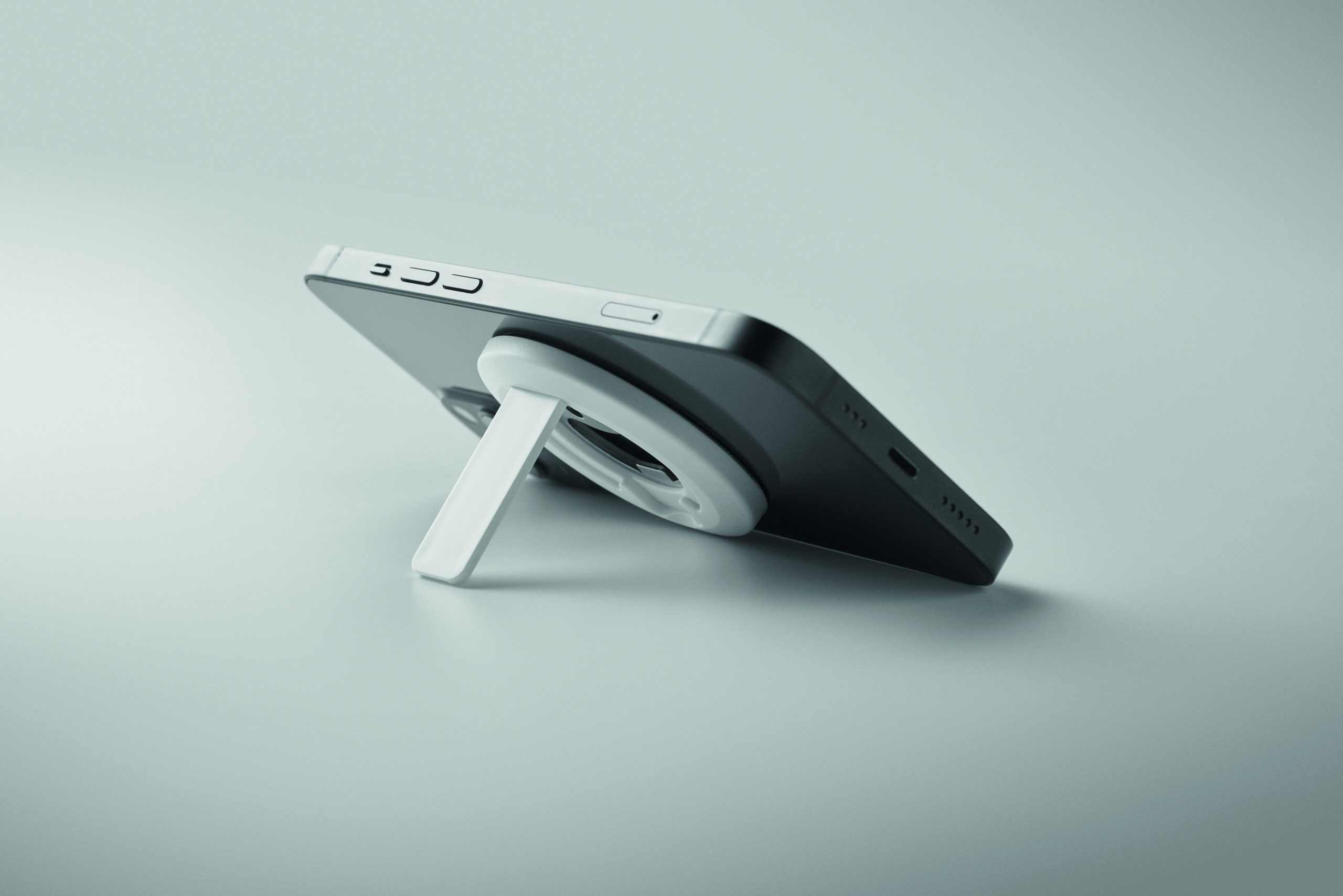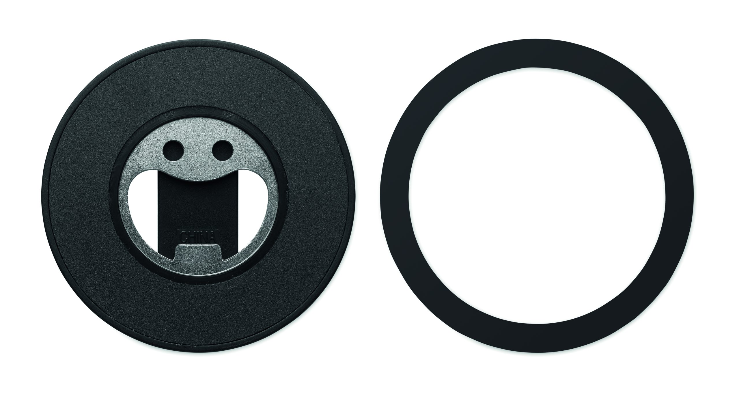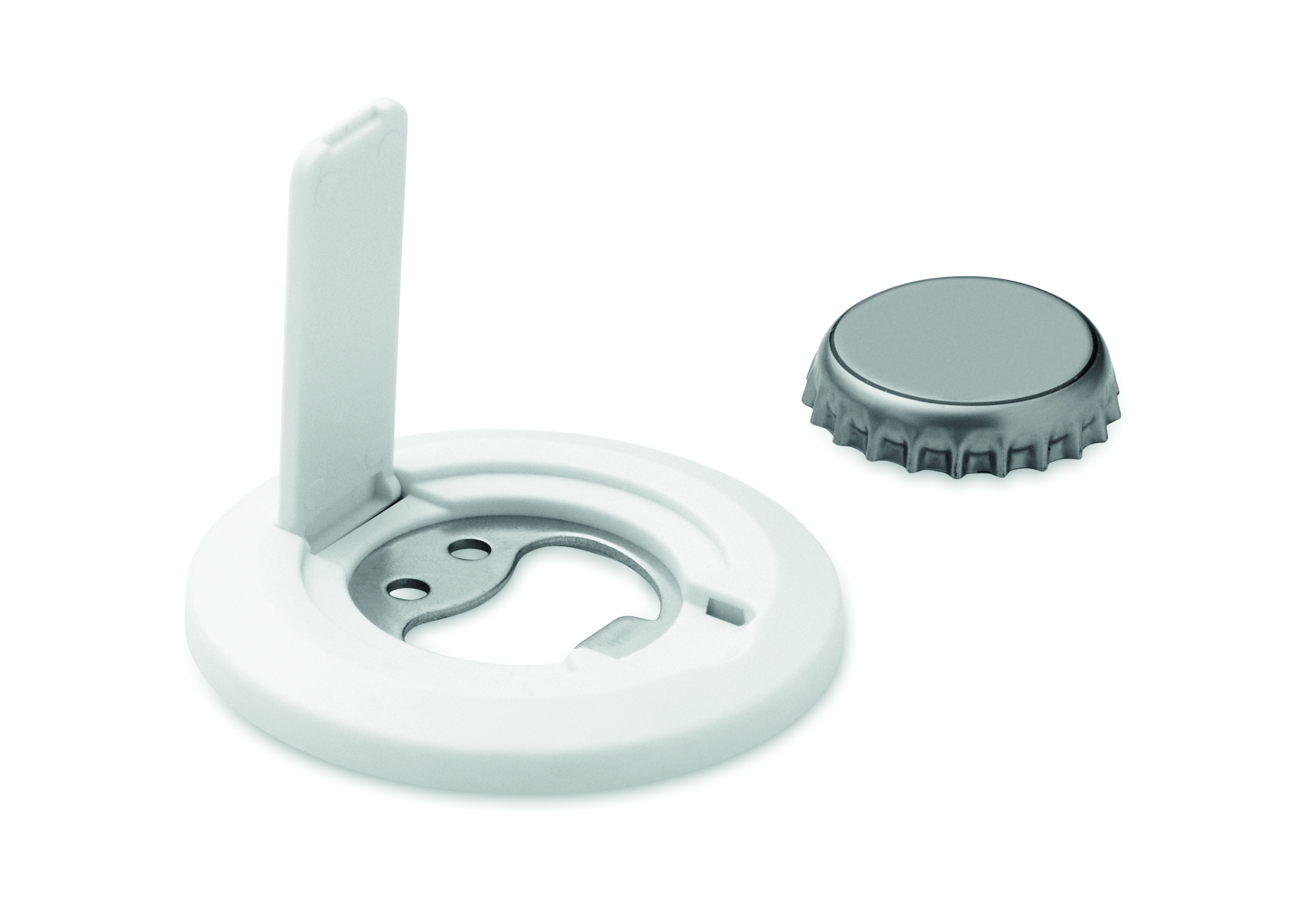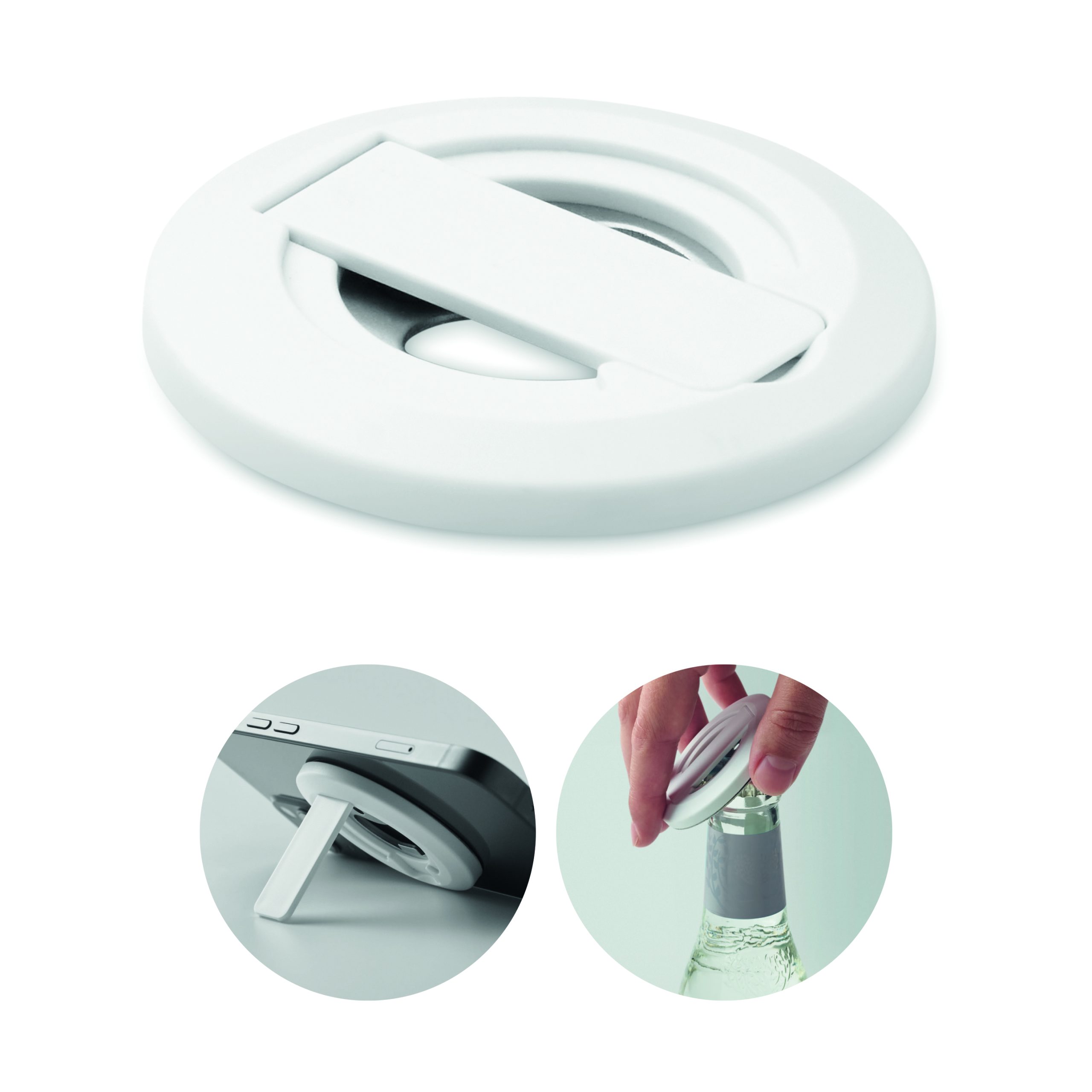 Magnetyczny uchwyt na telefon z otwieraczem do butelek. Kompatybilny z iPhone® 12 i nowszymi. Zawiera dodatkowy magnetyczny metalowy pierścień do obsługi ładowania innych niemagnetycznych telefonów z możliwością ładowania bezprzewodowego.